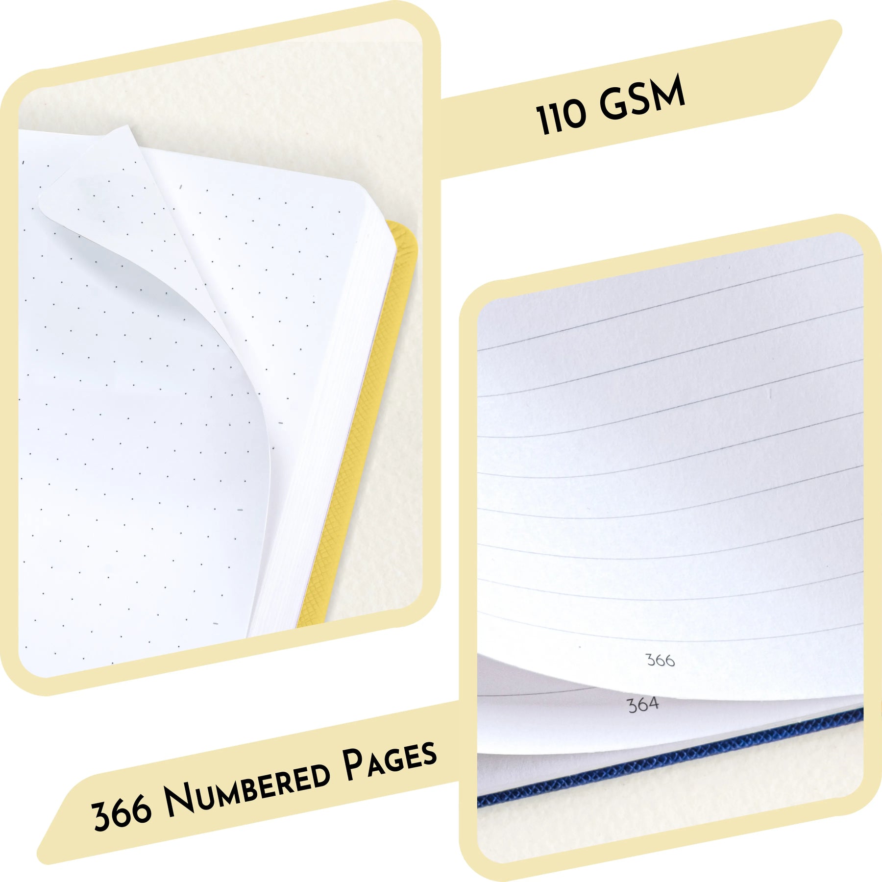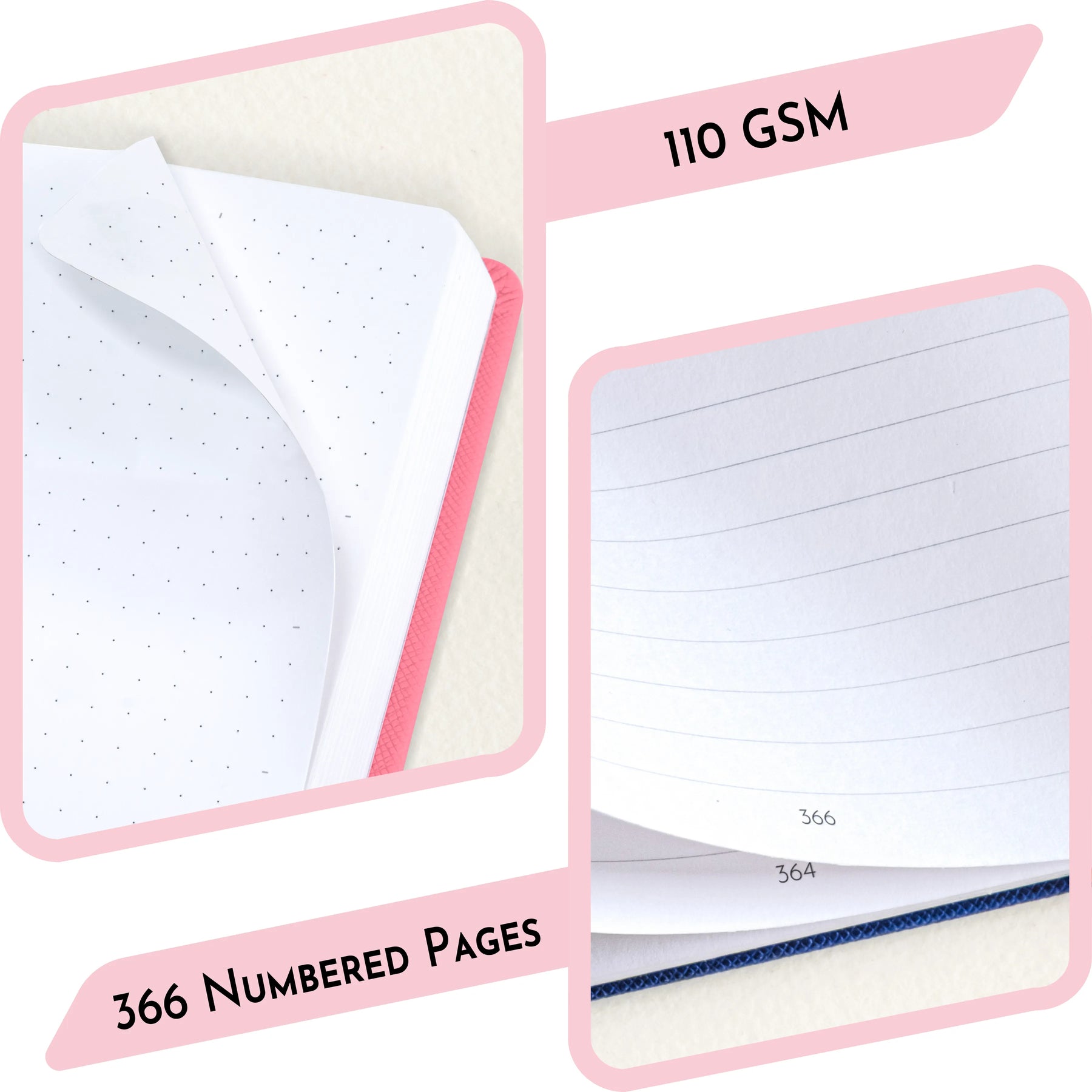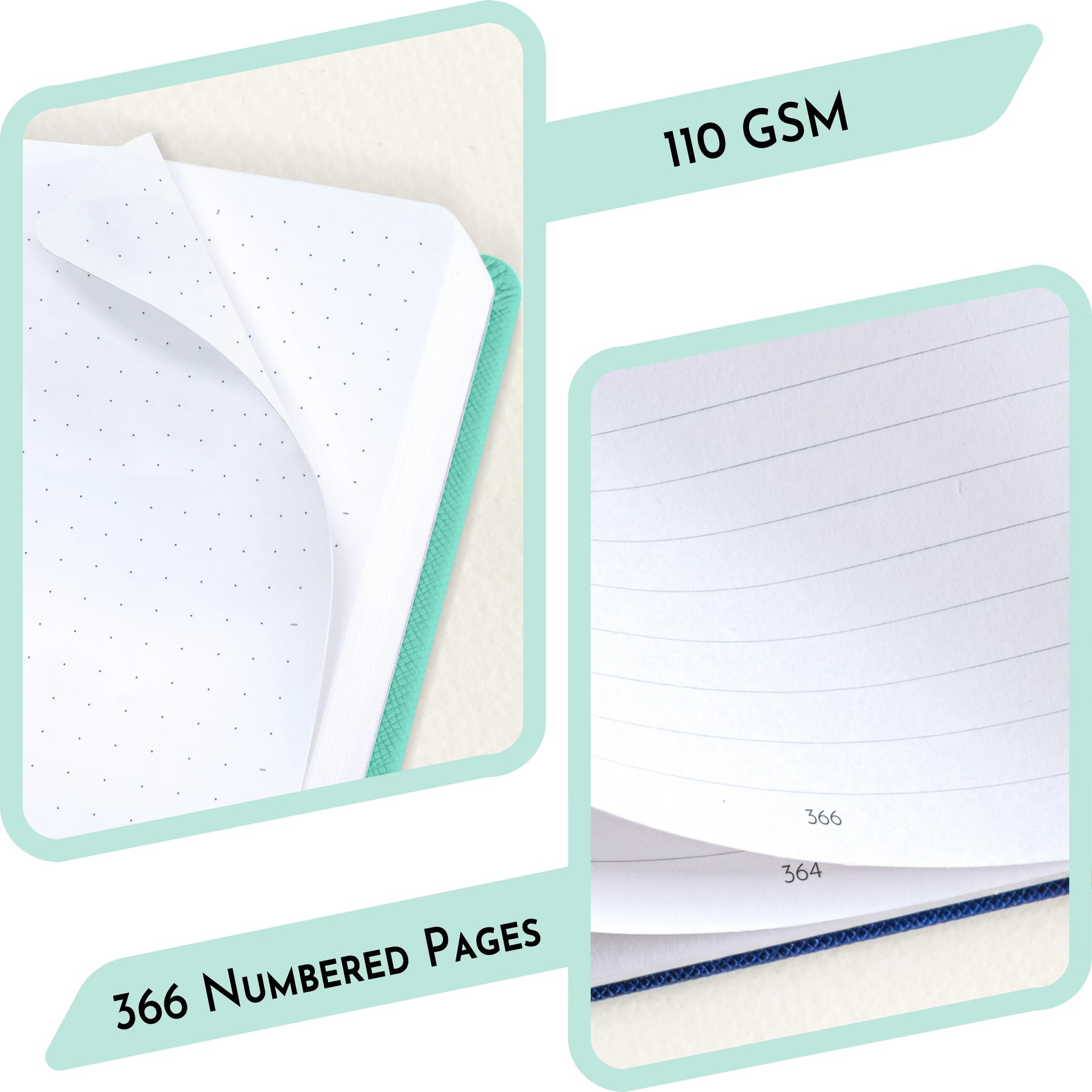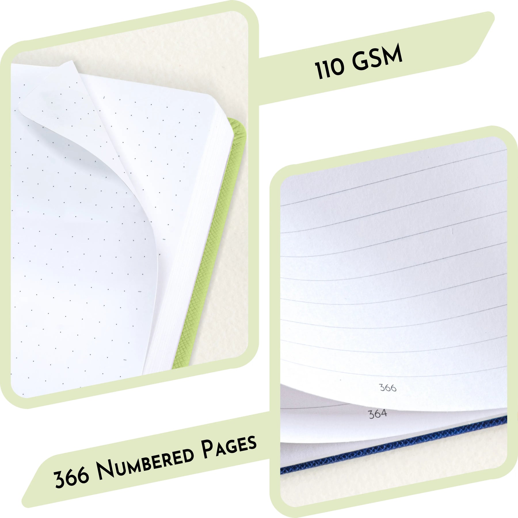 [FINEST PAPER QUALITY] โ Enjoy a fine journaling experience with the 110 GSM Pages. The thick and smooth pages offer exceptional durability, ensuring that the ink doesnโt bleed or ghost. With 368 pages, this journal notebook is the best choice for capturing your thoughts, plans and creative ideas throughout the year. Itโs perfect for those committed to journaling daily and making it a lasting habit.