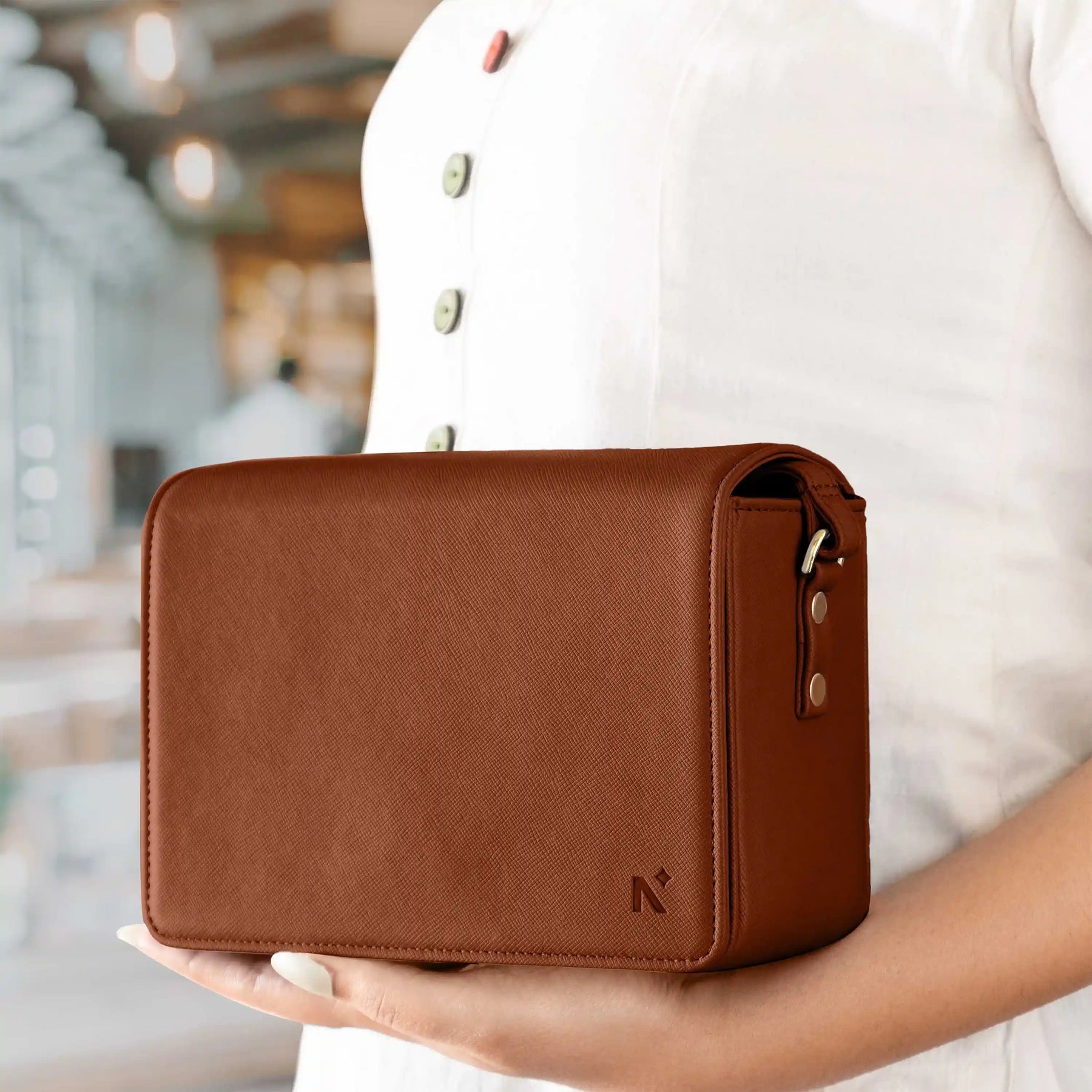 [HANDCRAFTED TO PERFECTION] Fine crafted with vegan leather, this cross-body bag is sturdy and structured.