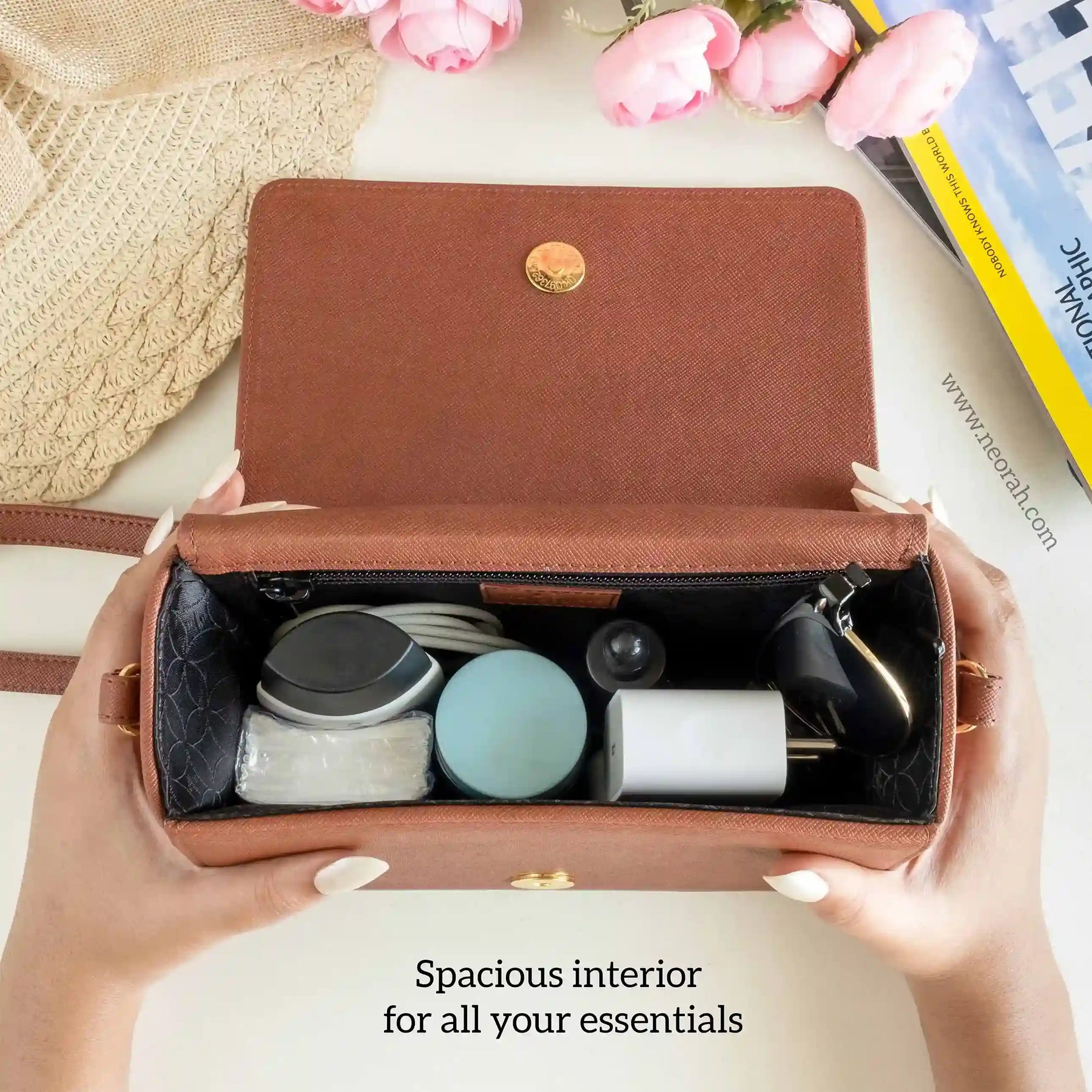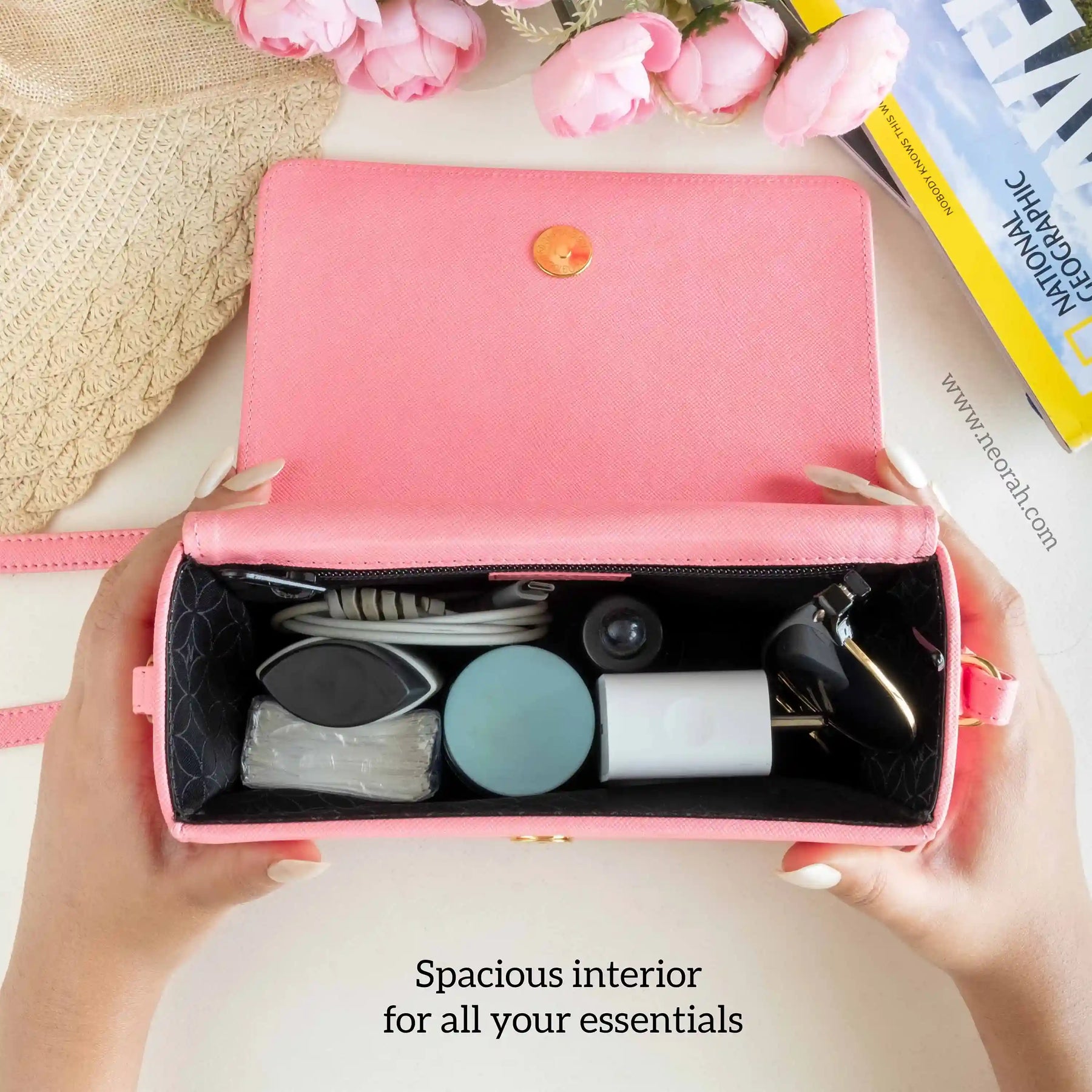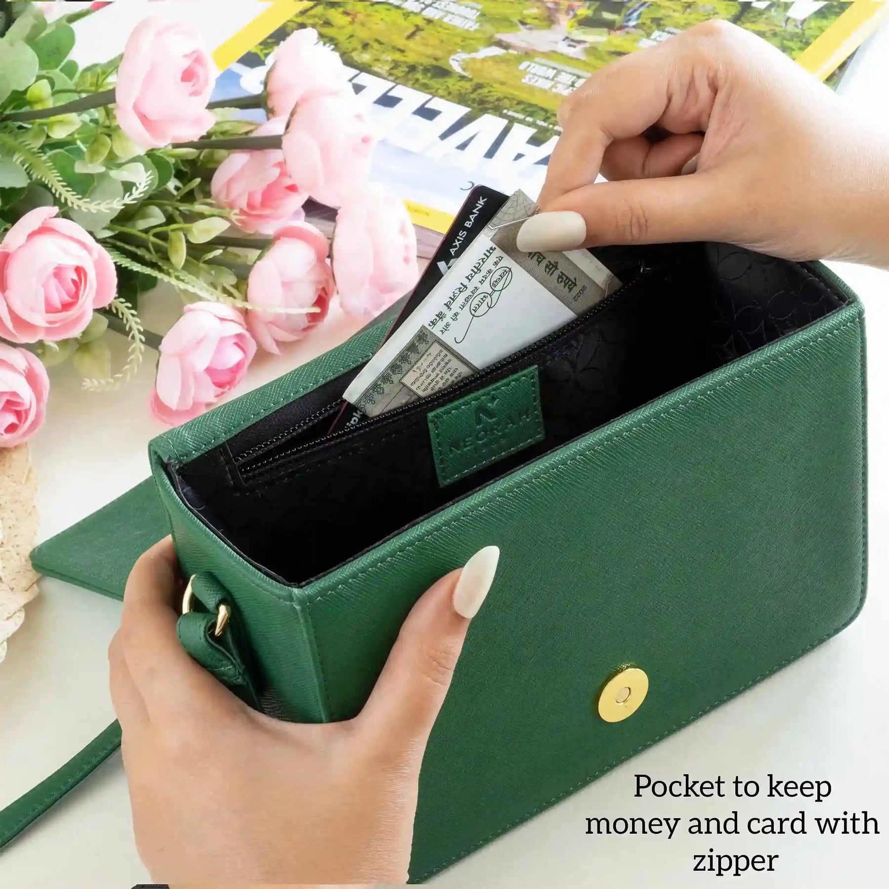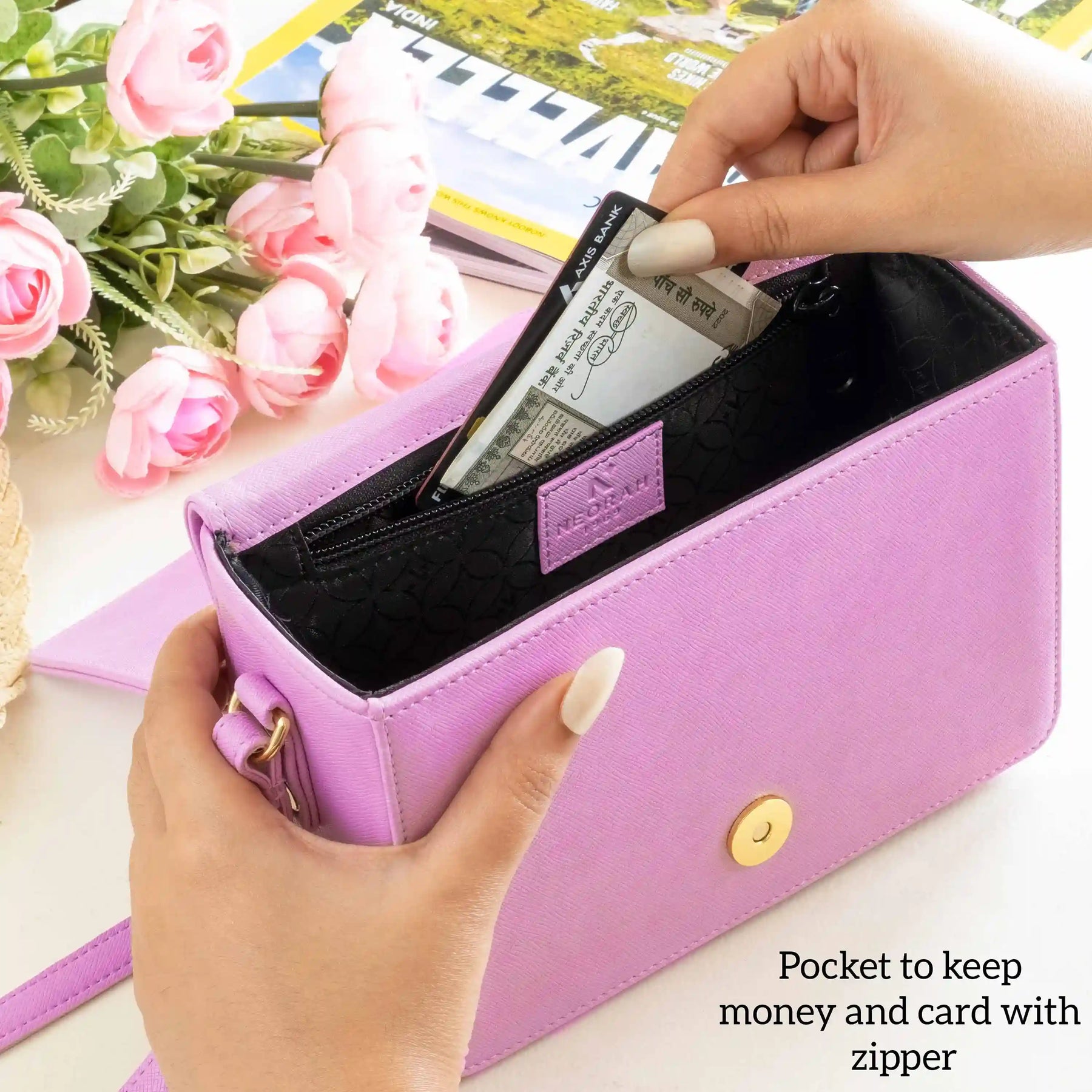 [ CONVENIENCE ] – This shoulder bag is where style meets functionality. It has an adjustable shoulder strap to let you wear it comfortably as a side bag or a cross-body bag. This purse is compact but can accommodate and organise all your essentials like mobile, power bank, charger, air pods, keys, wallet, small notebook/ diary, cosmetics, toiletries and other travel needs.