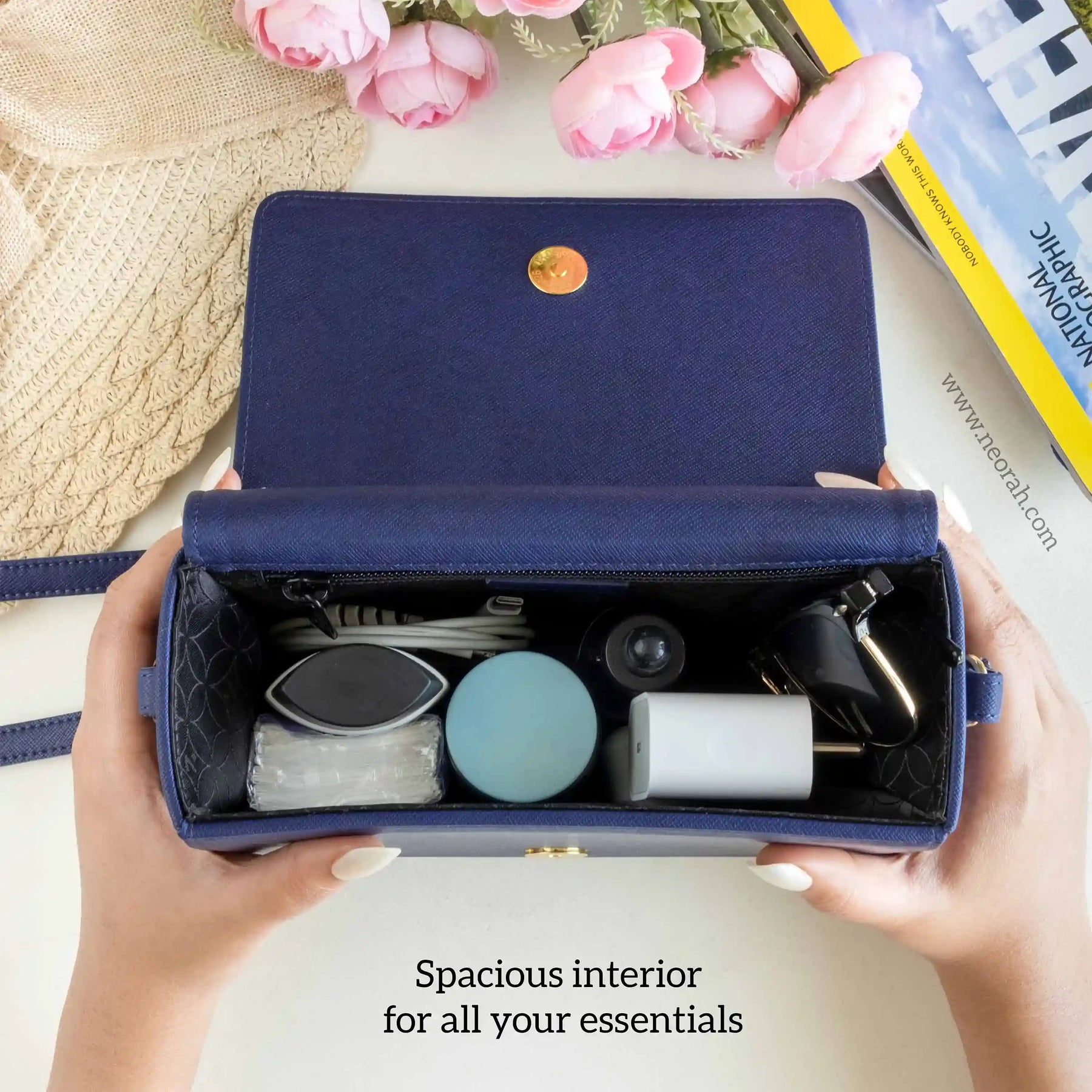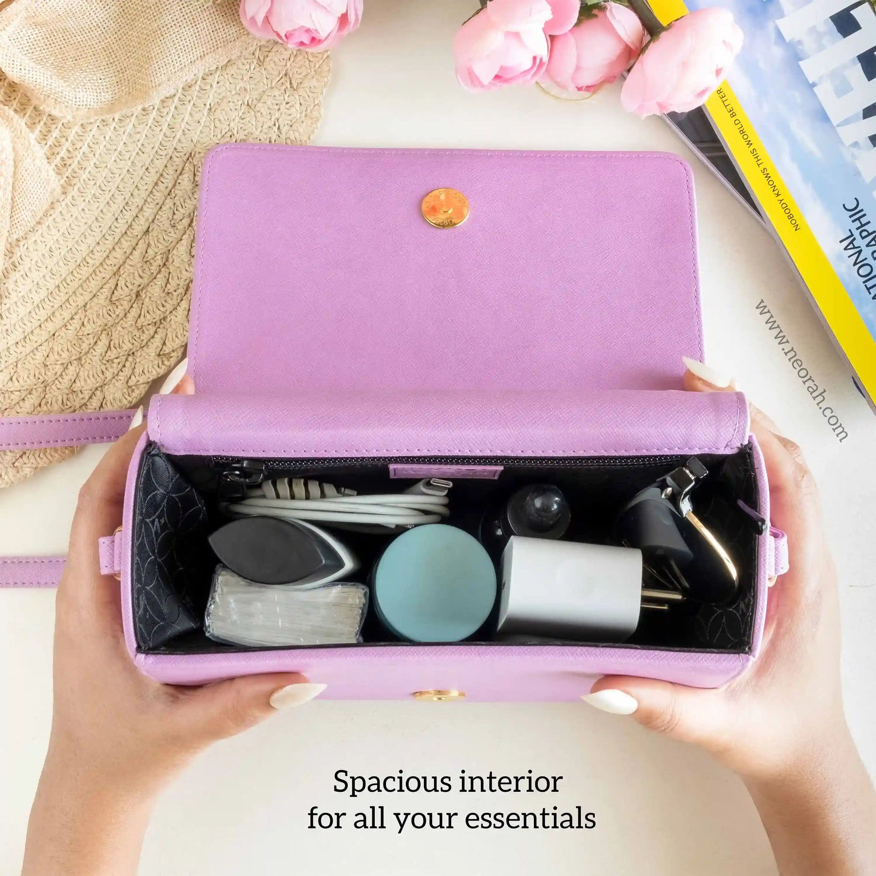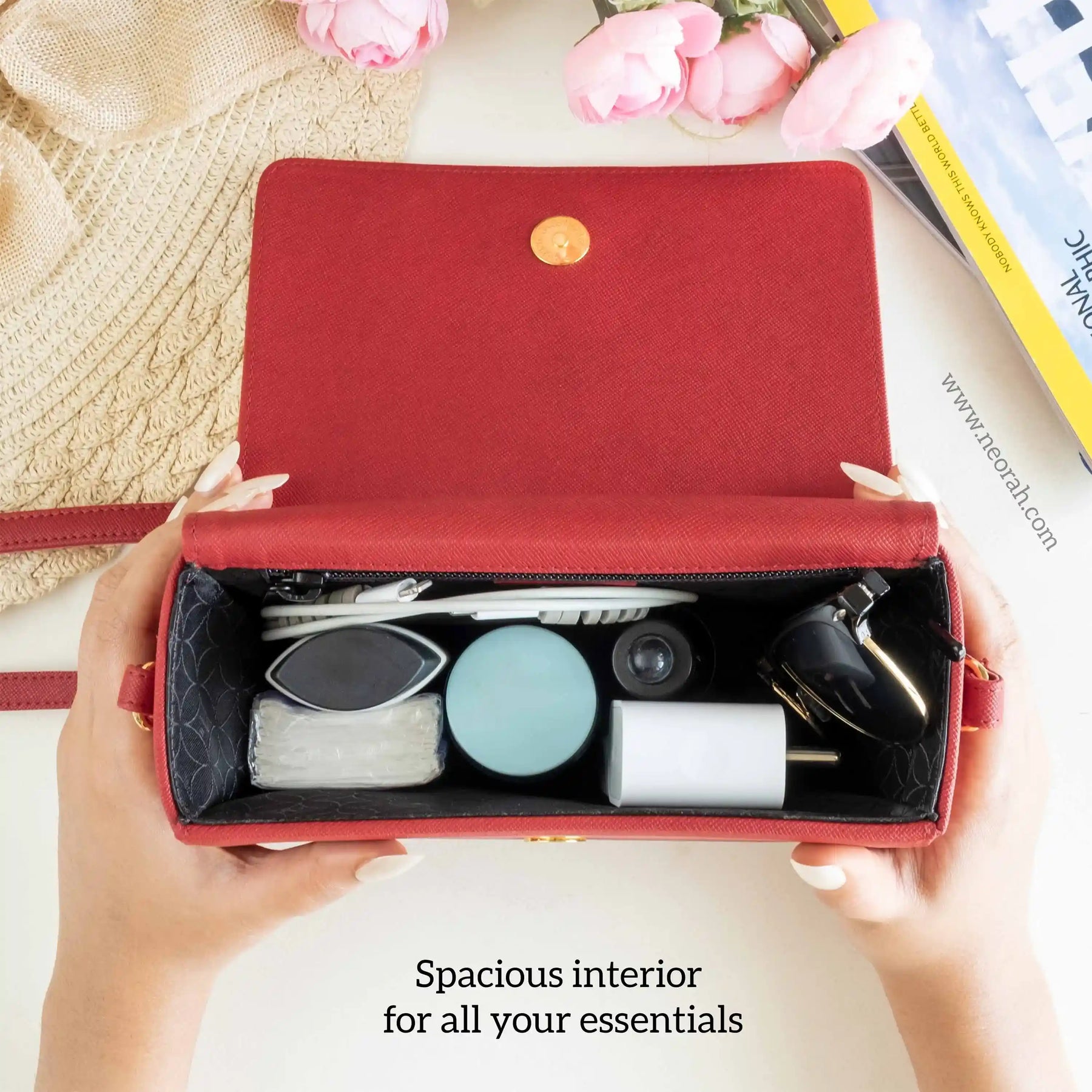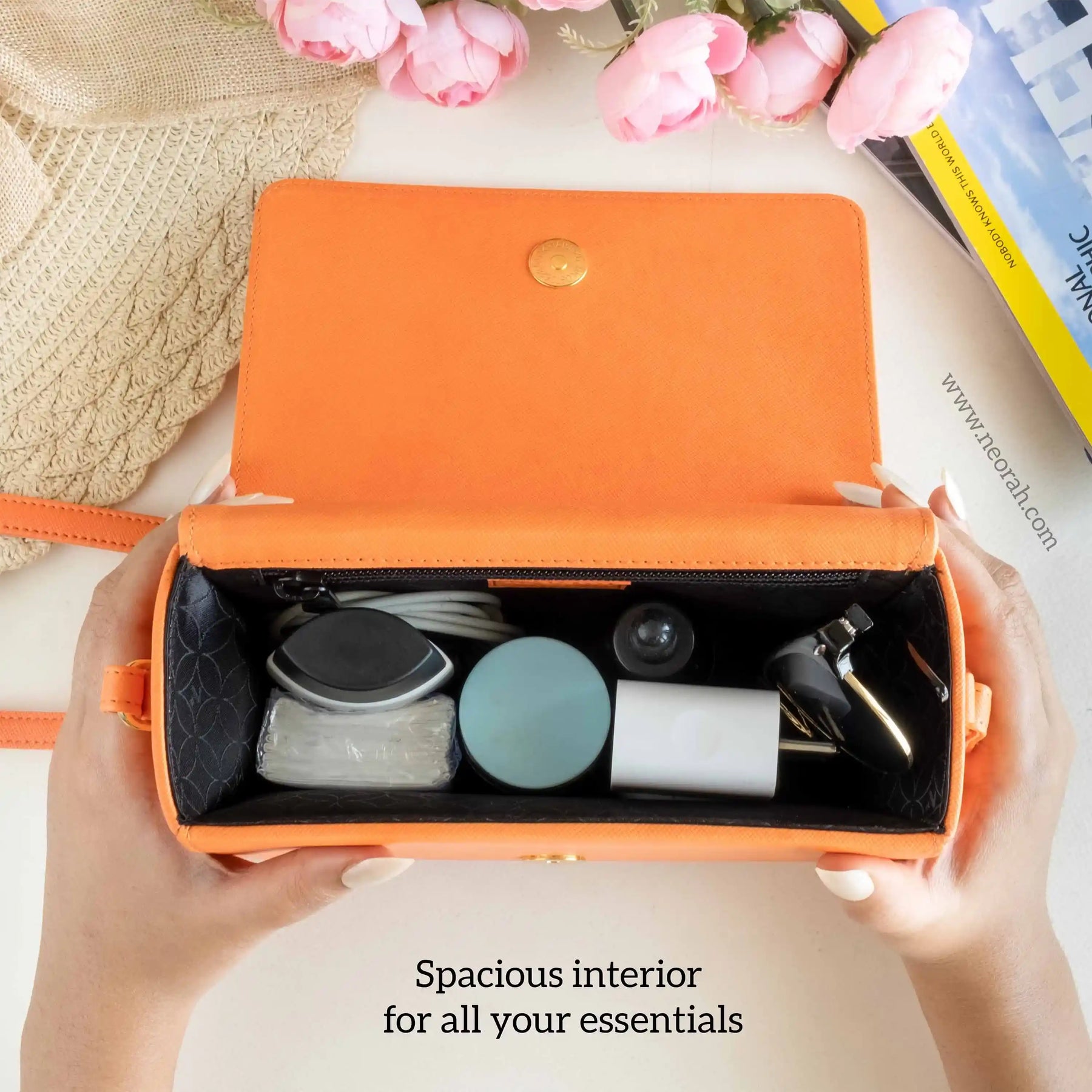 [ CONVENIENCE ] – This shoulder bag is where style meets functionality. It has an adjustable shoulder strap to let you wear it comfortably as a side bag or a cross-body bag. This purse is compact but can accommodate and organise all your essentials like mobile, power bank, charger, air pods, keys, wallet, small notebook/ diary, cosmetics, toiletries and other travel needs.
