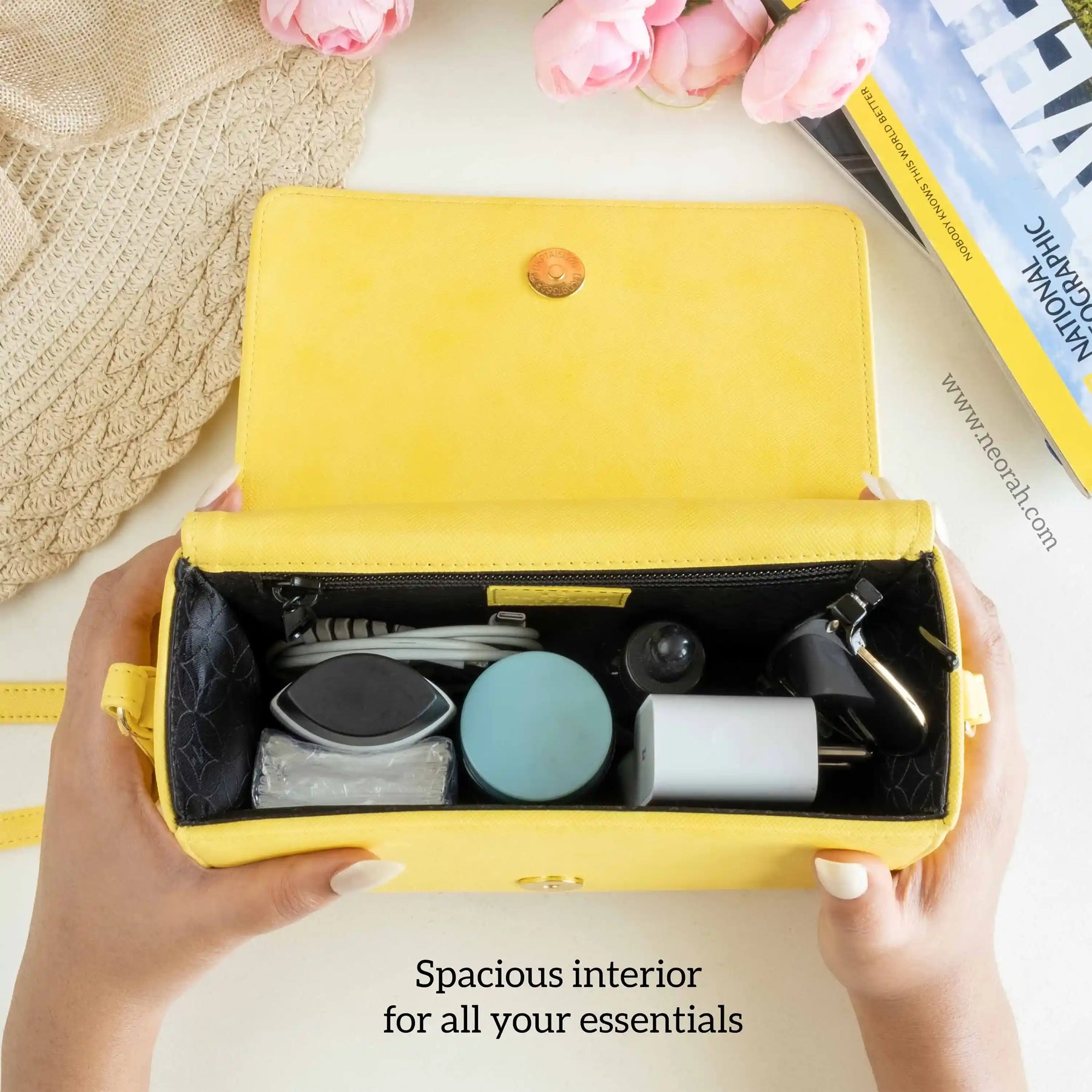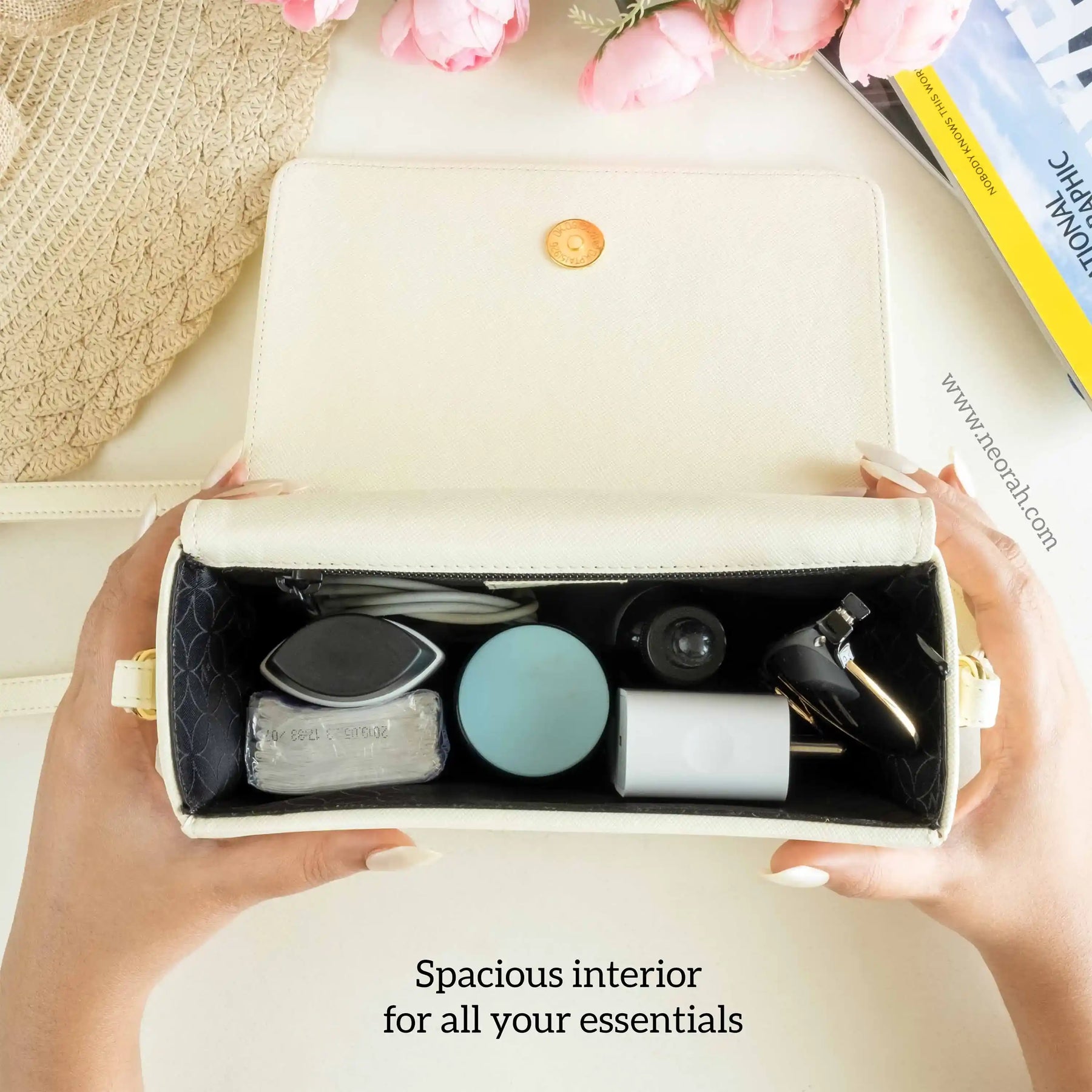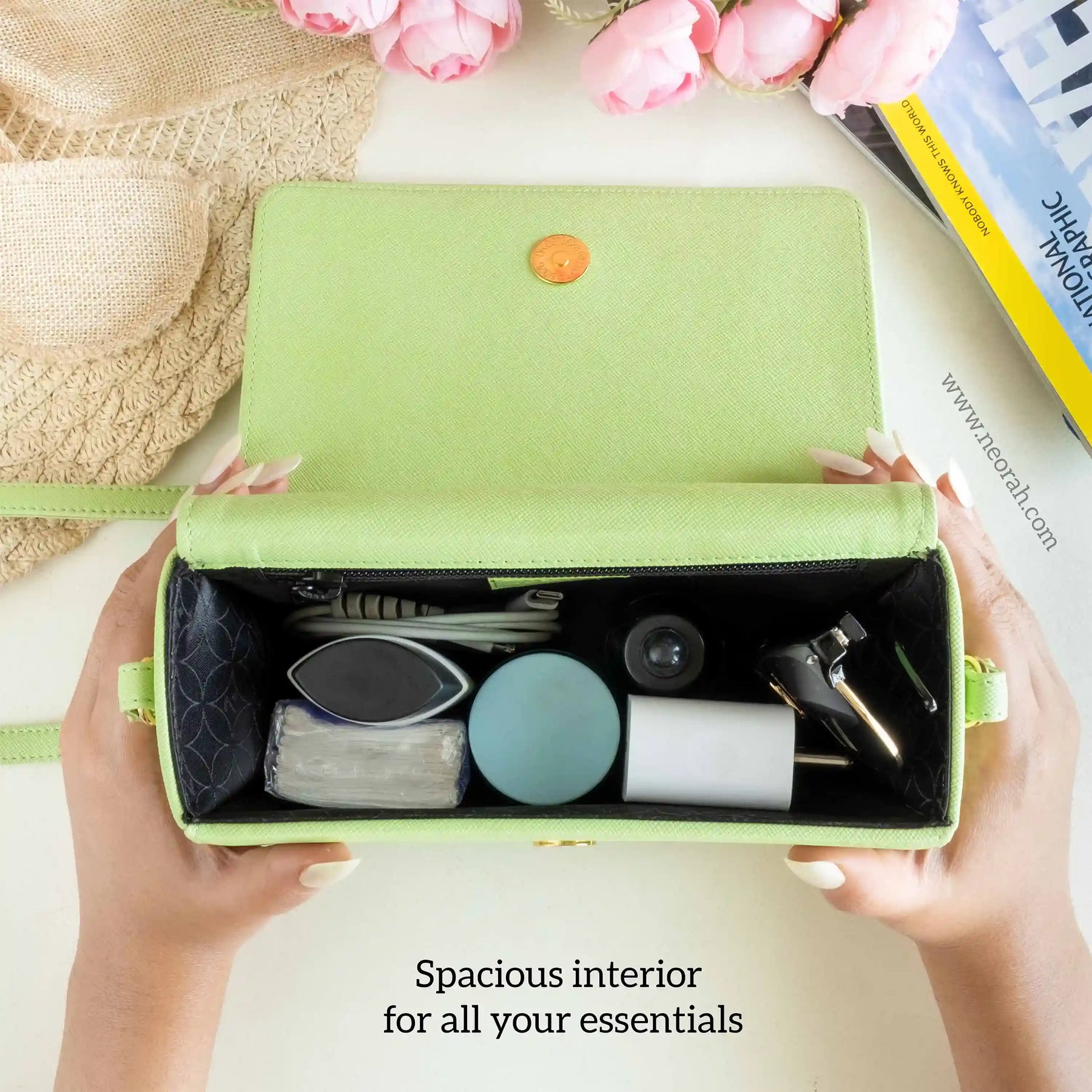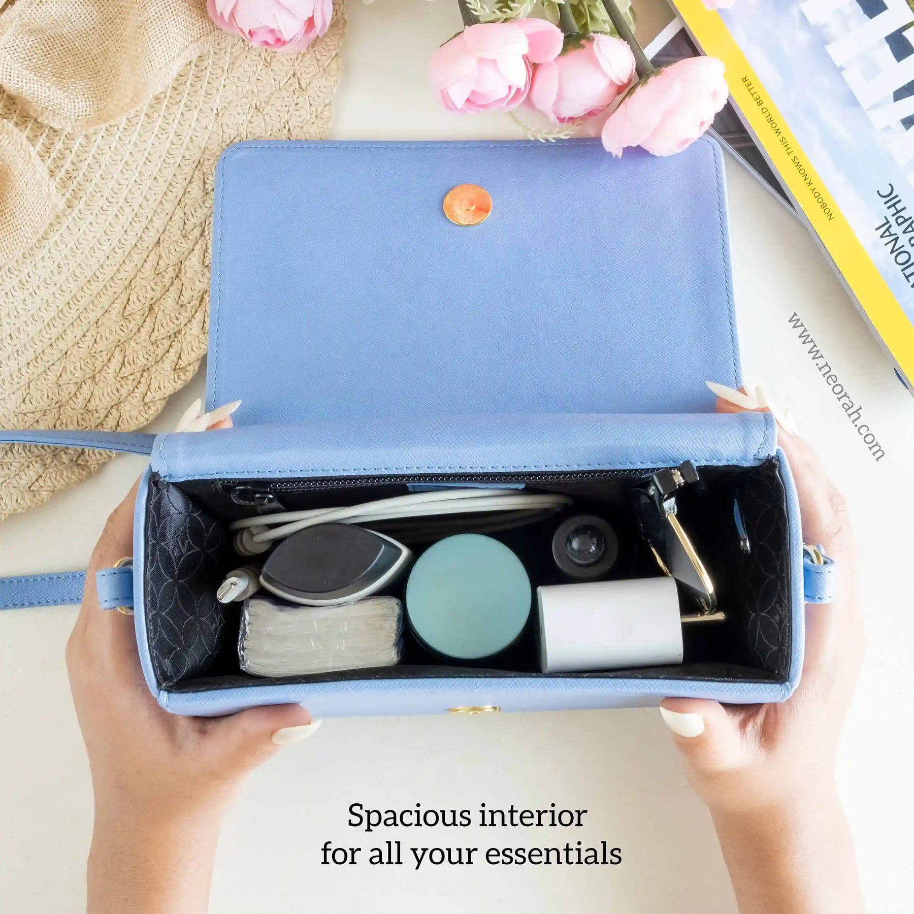 [ CONVENIENCE ] – This shoulder bag is where style meets functionality. It has an adjustable shoulder strap to let you wear it comfortably as a side bag or a cross-body bag. This purse is compact but can accommodate and organise all your essentials like mobile, power bank, charger, air pods, keys, wallet, small notebook/ diary, cosmetics, toiletries and other travel needs.