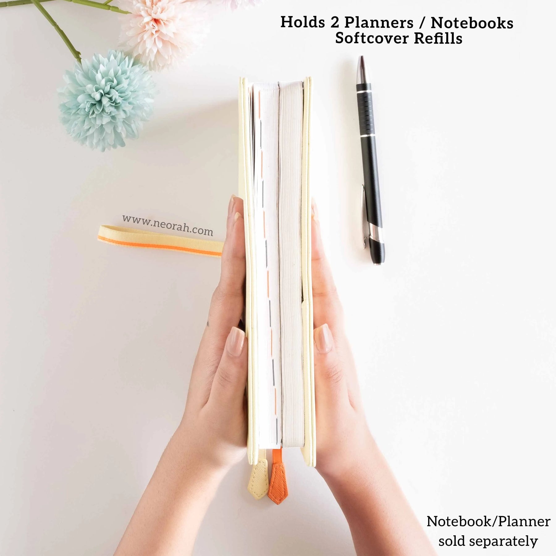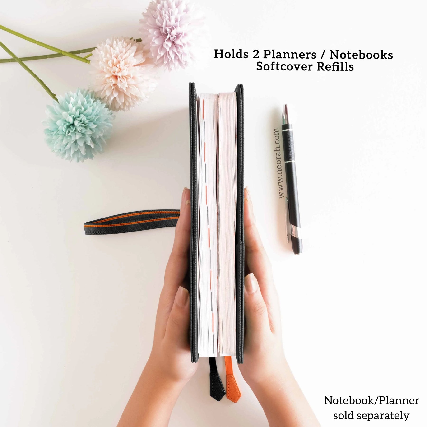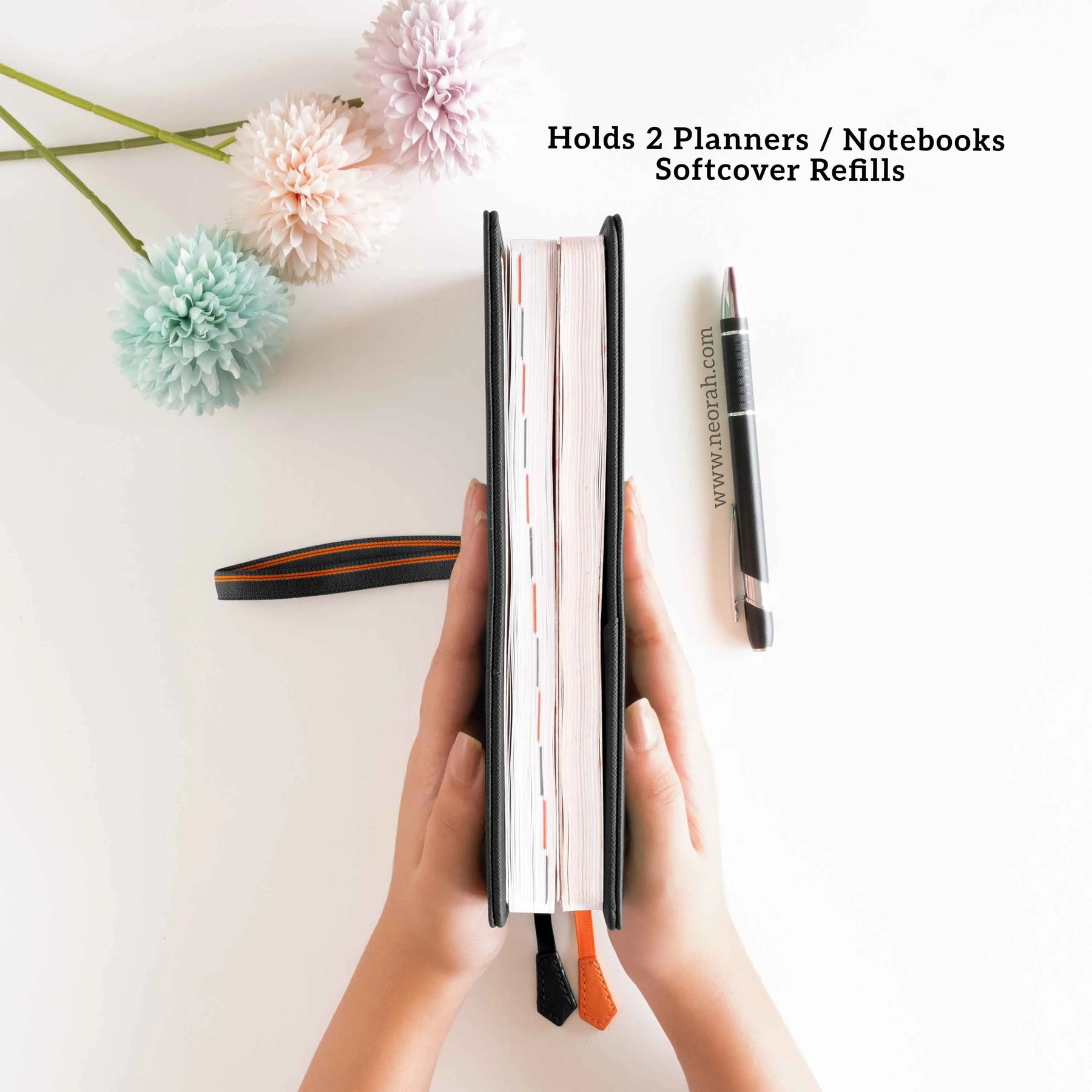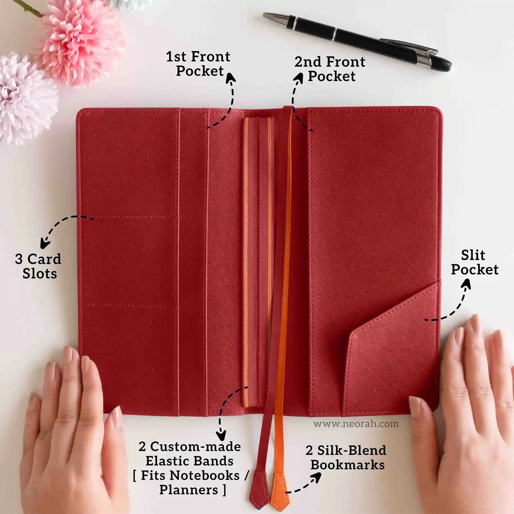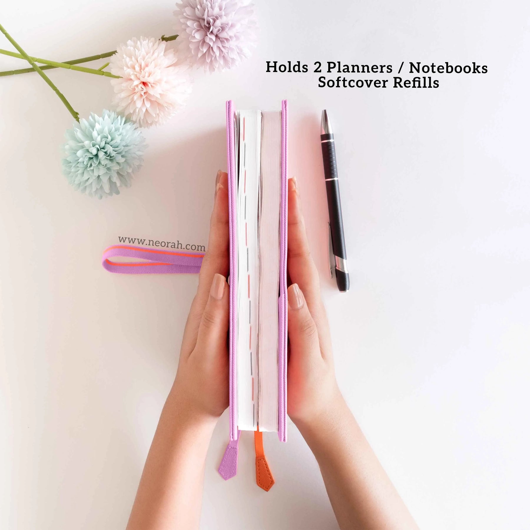 Pros: sturdy & durable, perfect size, many colour options, pockets for easy storage, 2 bookmarks, can hold 2 inserts.