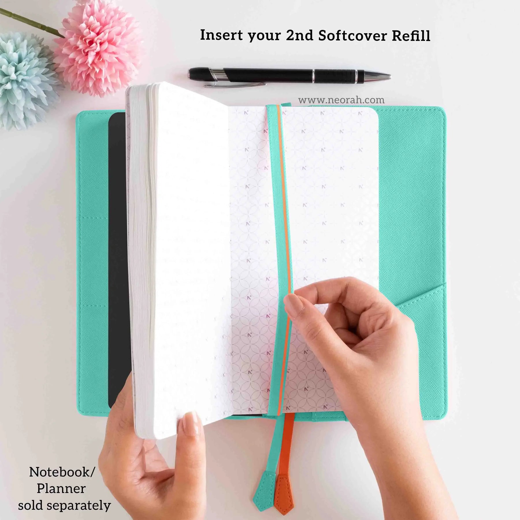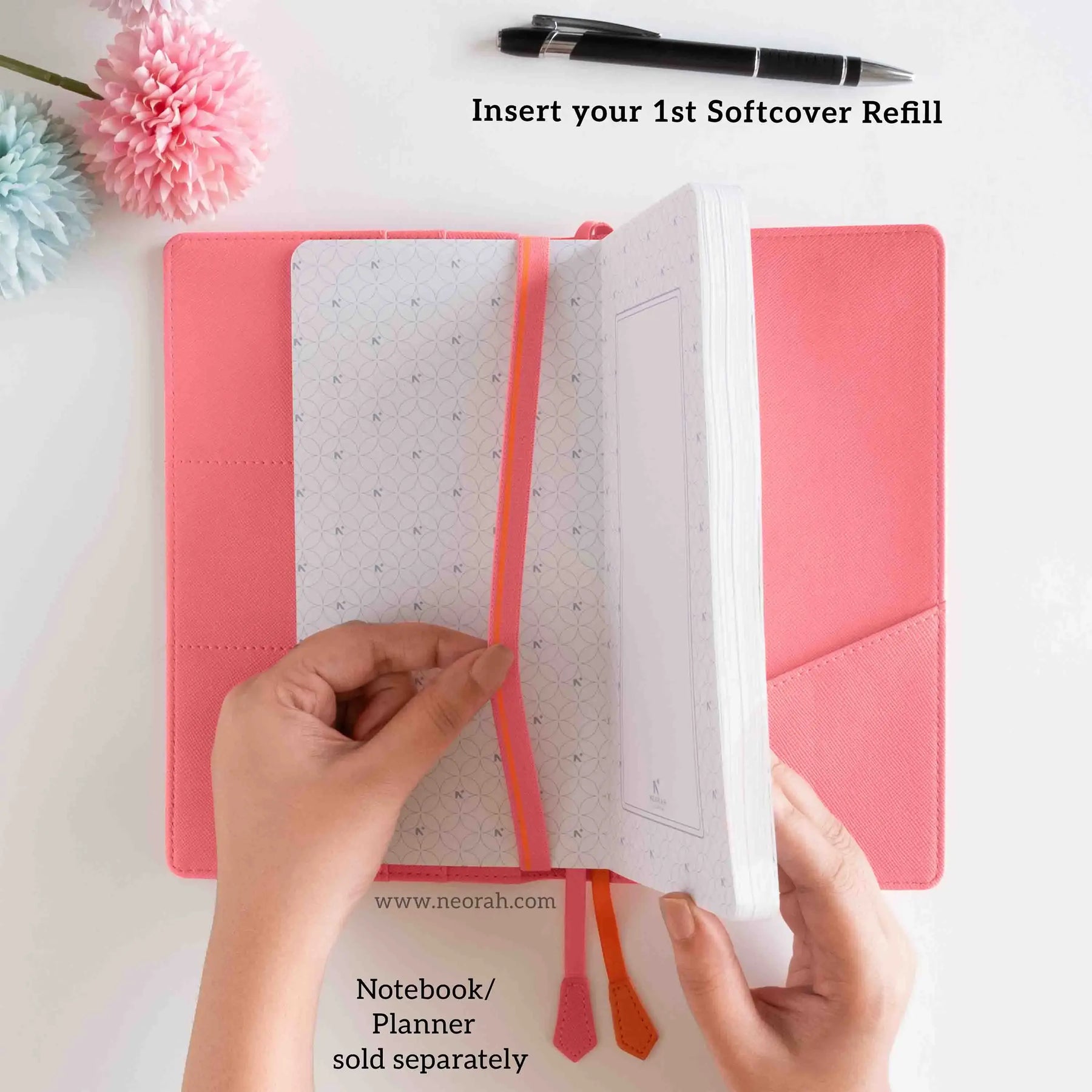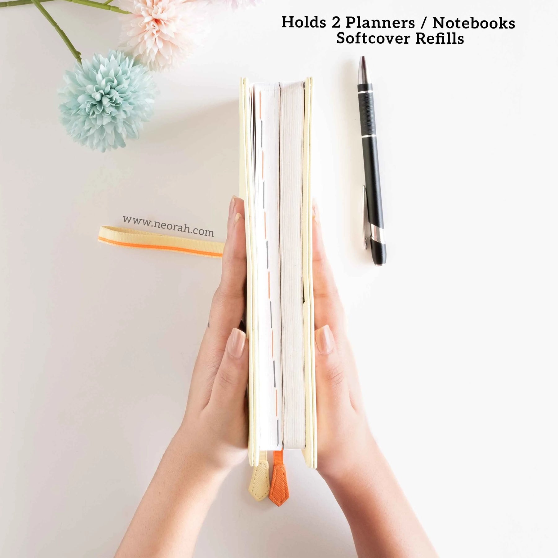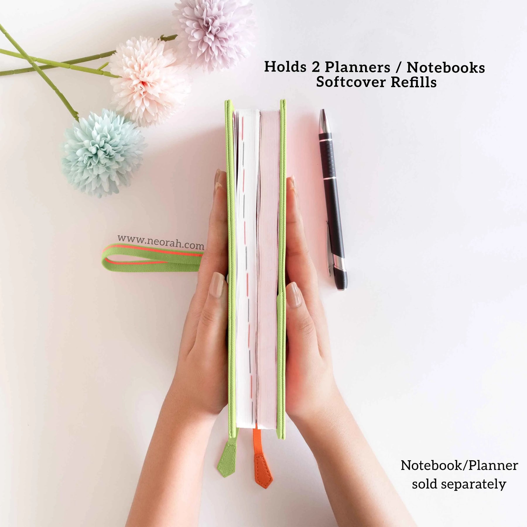 Pros: sturdy & durable, perfect size, many colour options, pockets for easy storage, 2 bookmarks, can hold 2 inserts.