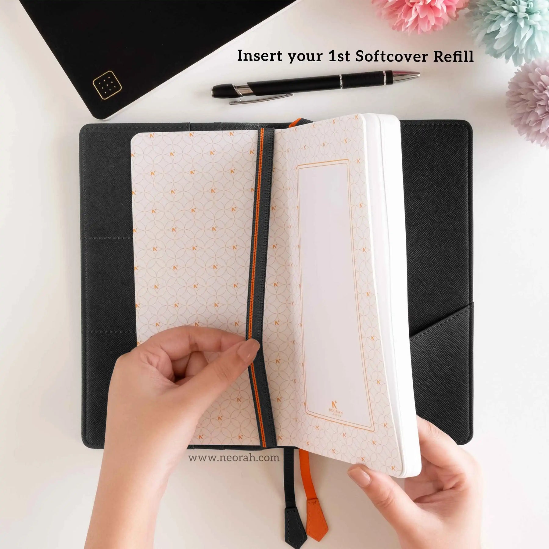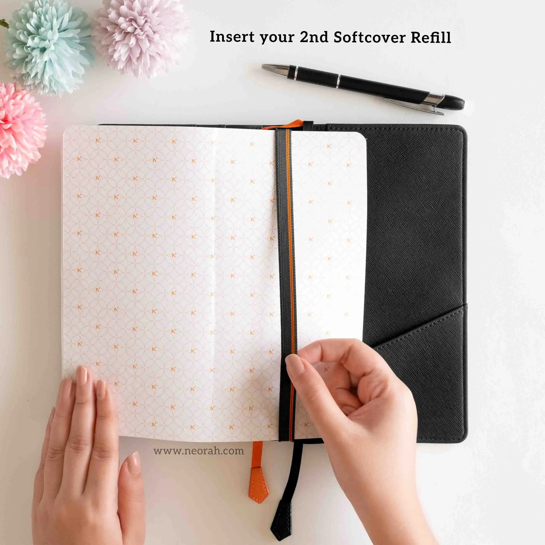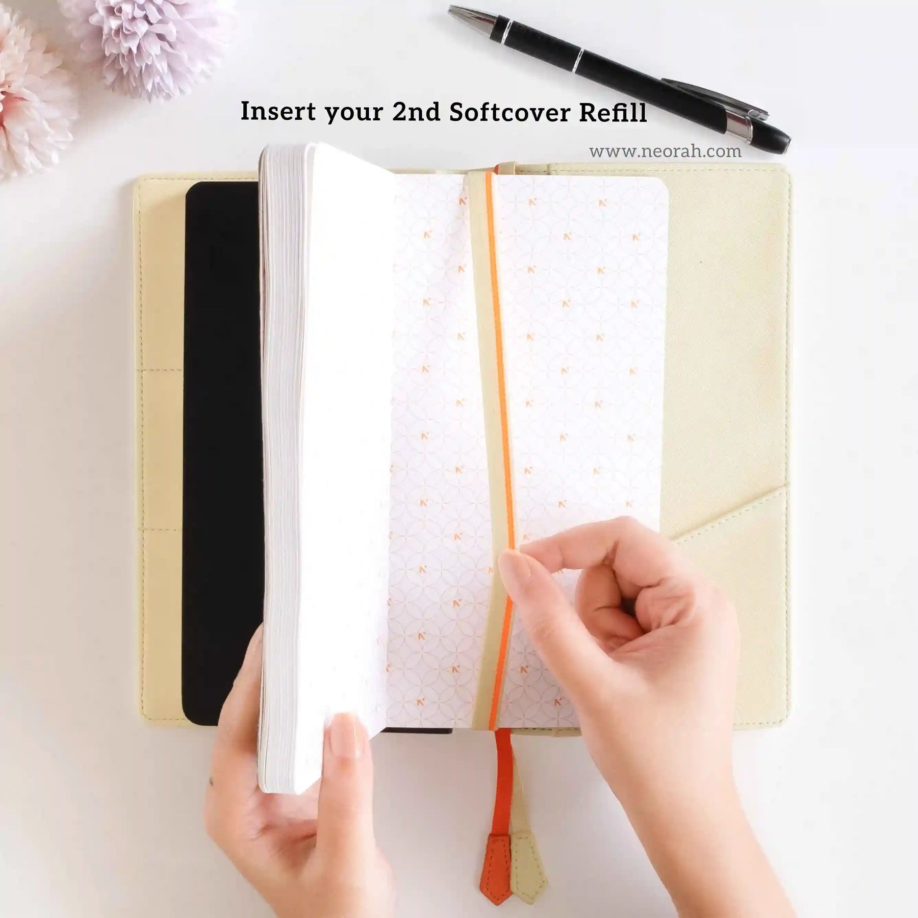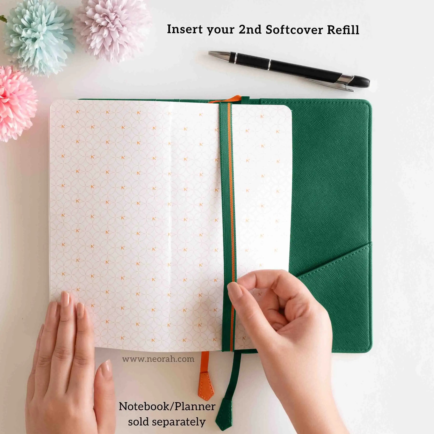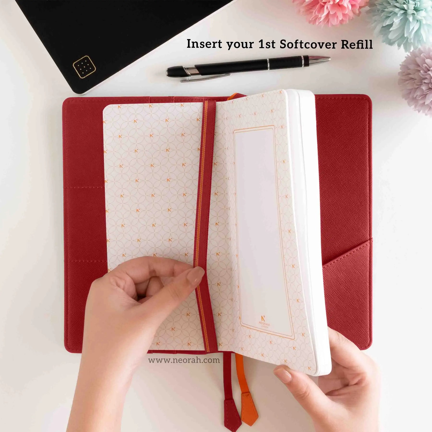 Pros: sturdy & durable, perfect size, many colour options, pockets for easy storage, 2 bookmarks, can hold 2 inserts.