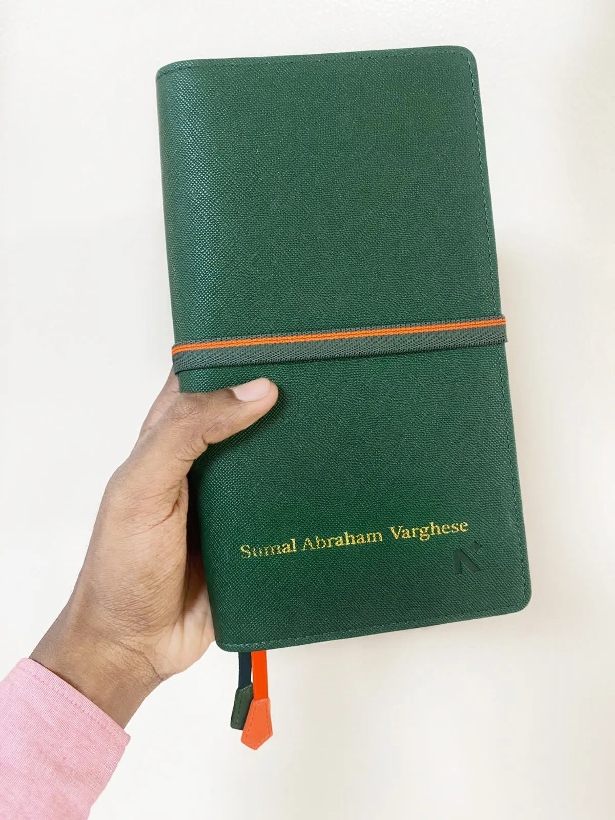 This travel sleeve along with notebook is a very handy product and very helpful for me as a Calligrapher. Itโs ideal for me take anywhere and with this size it doesnโt take too much space in my bag. Itโs perfect product that I can always refill a new notebook.