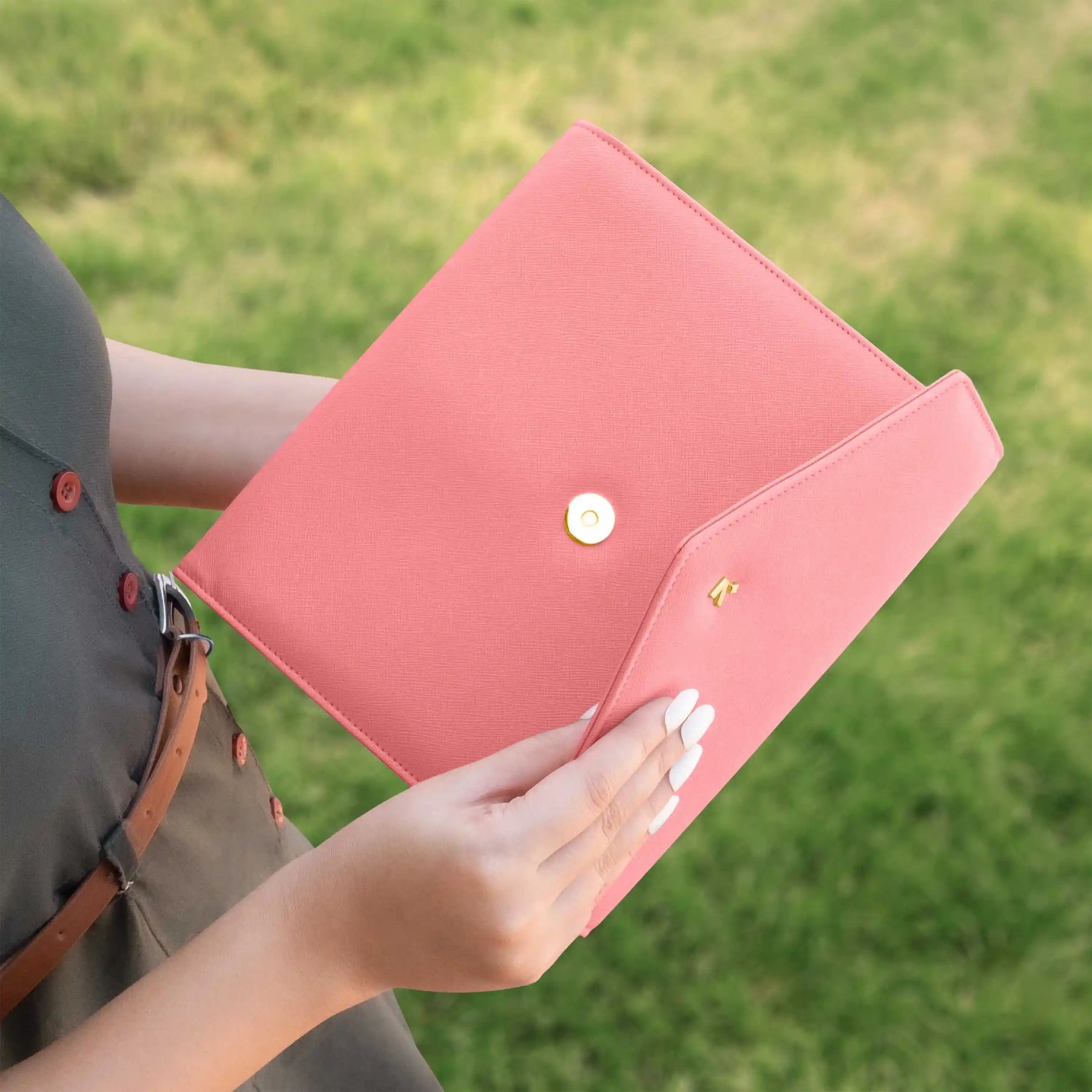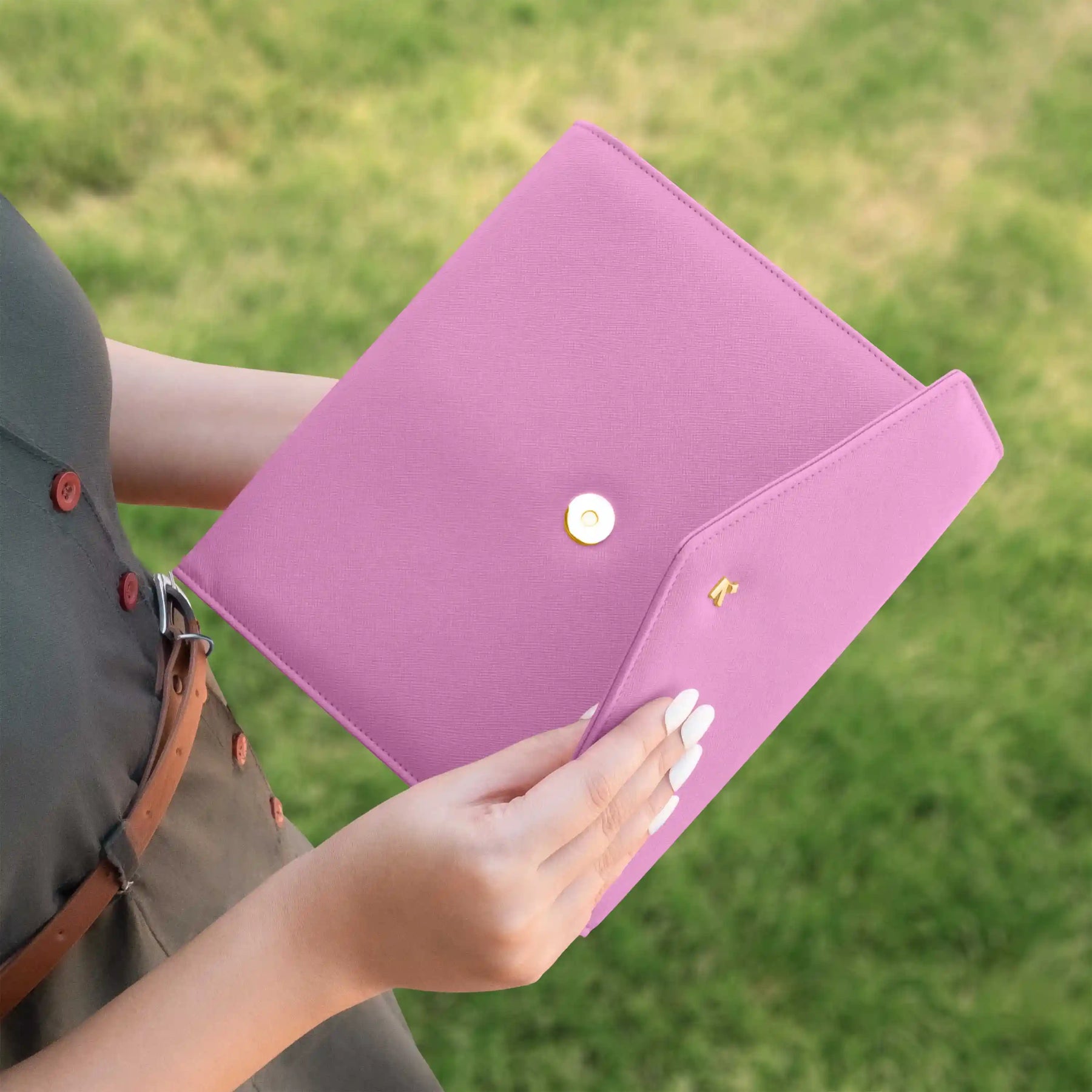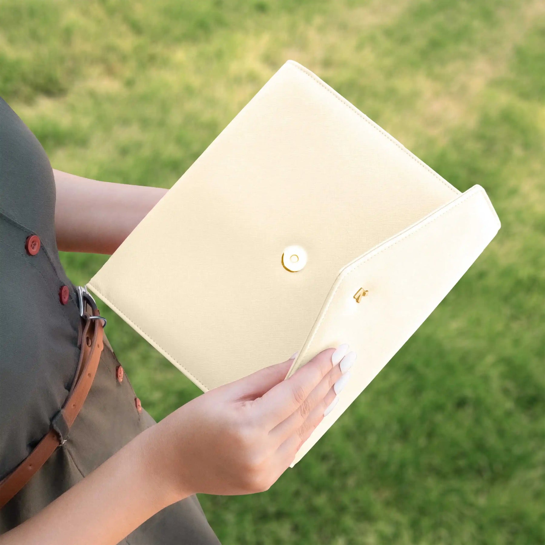 [ HANDCRAFTED TO PERFECTION ] - Fine crafted Vegan Leather organiser is enclosed by a magnetic closure envelope flap revealing compartments lined with silk blend material to keep your essentials secure.