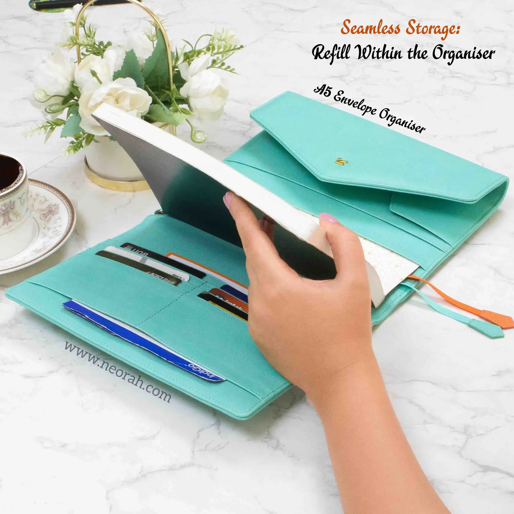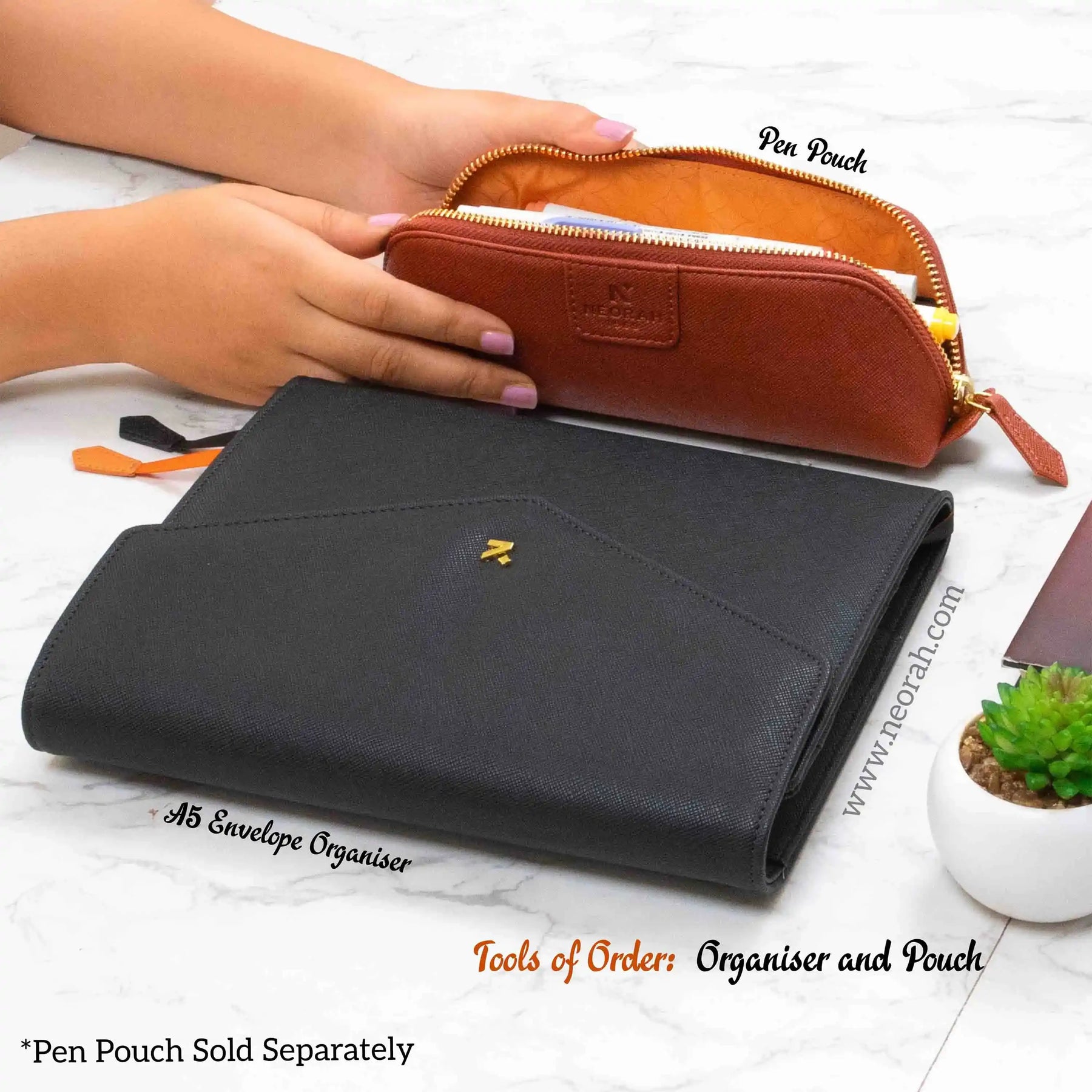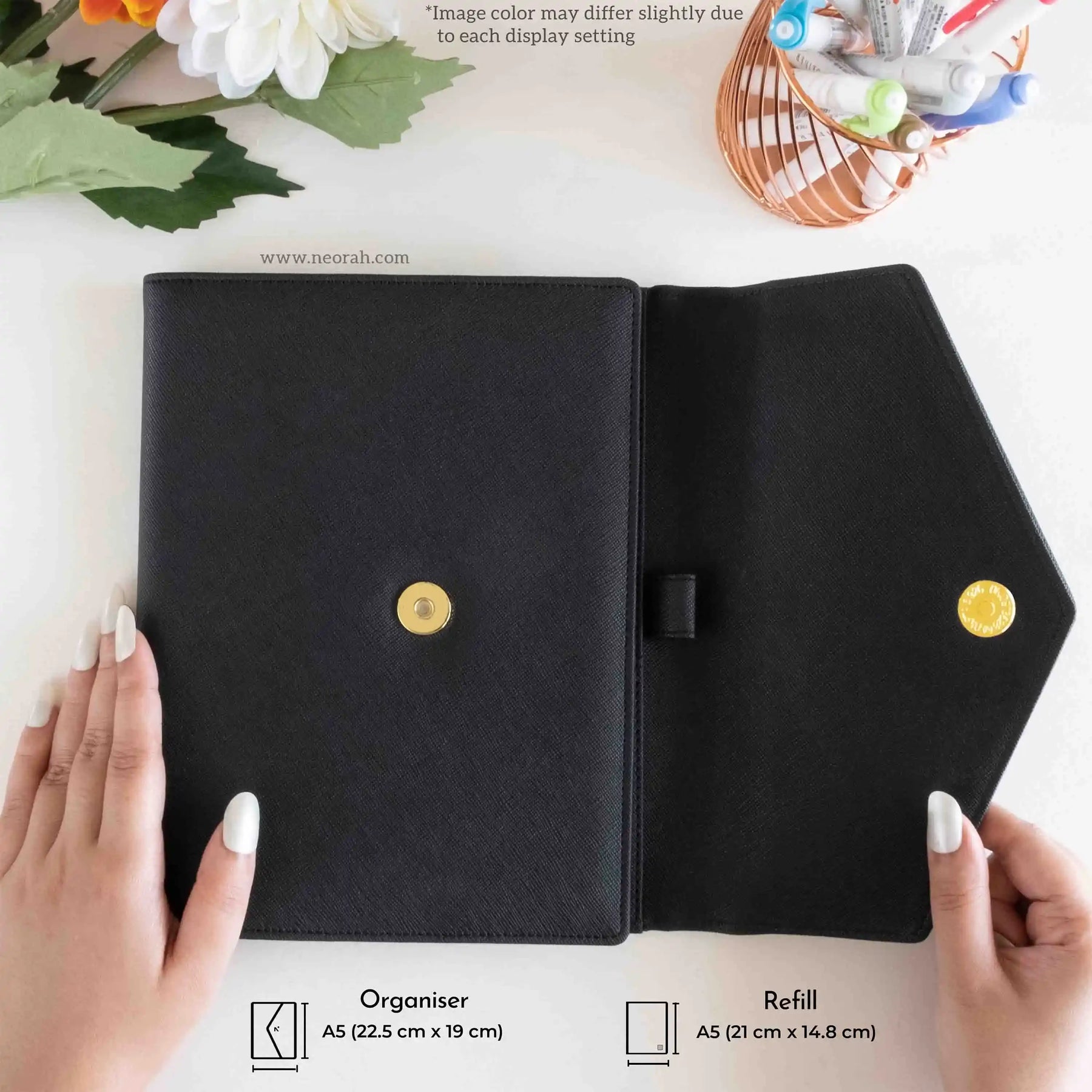 [ NEORAH ORGANISER ]- Neorah’s aesthetically designed functional Envelope Organiser is here to make you look elite as well as stay organised. This unique Personal Organiser is all you need to plan, write and execute your day in class.