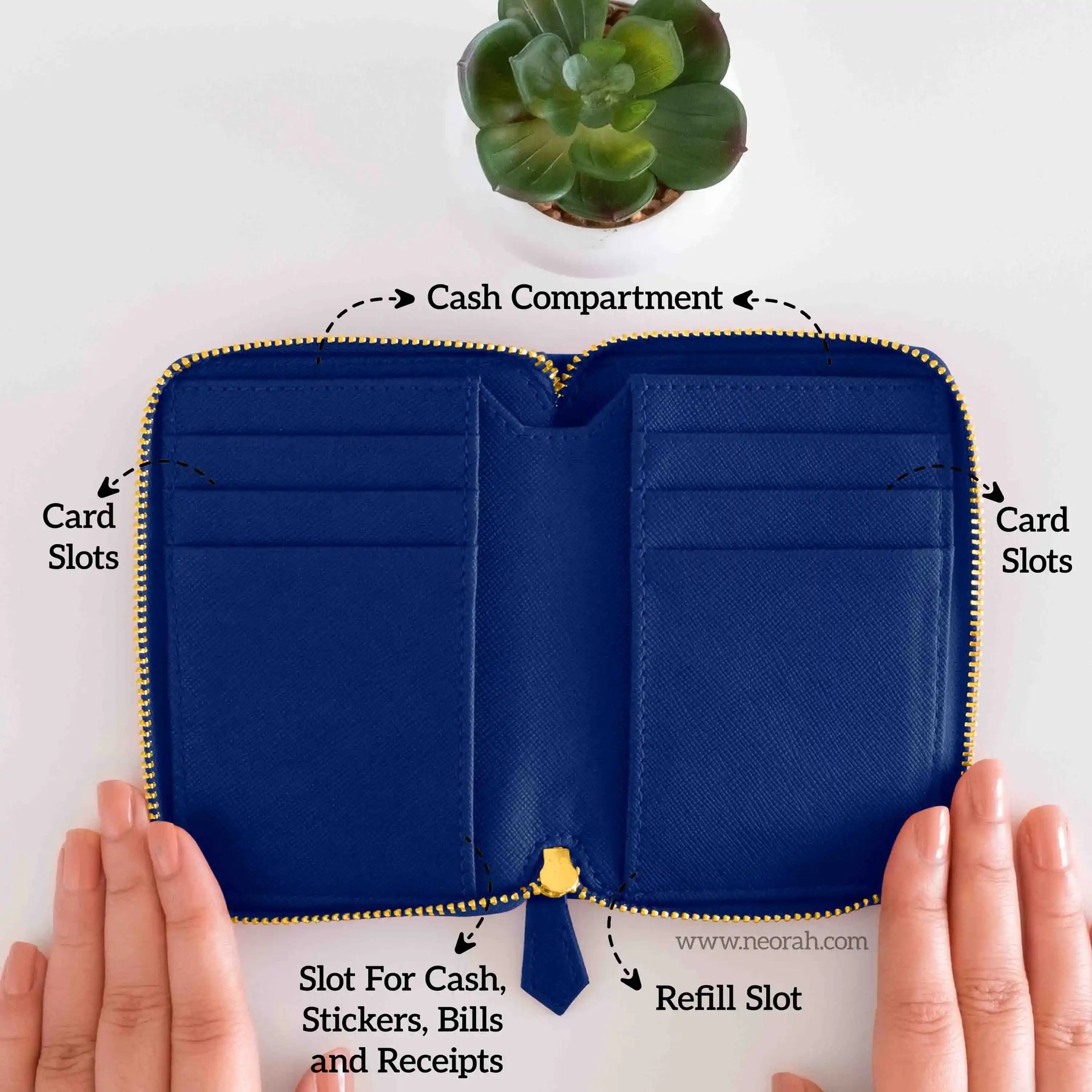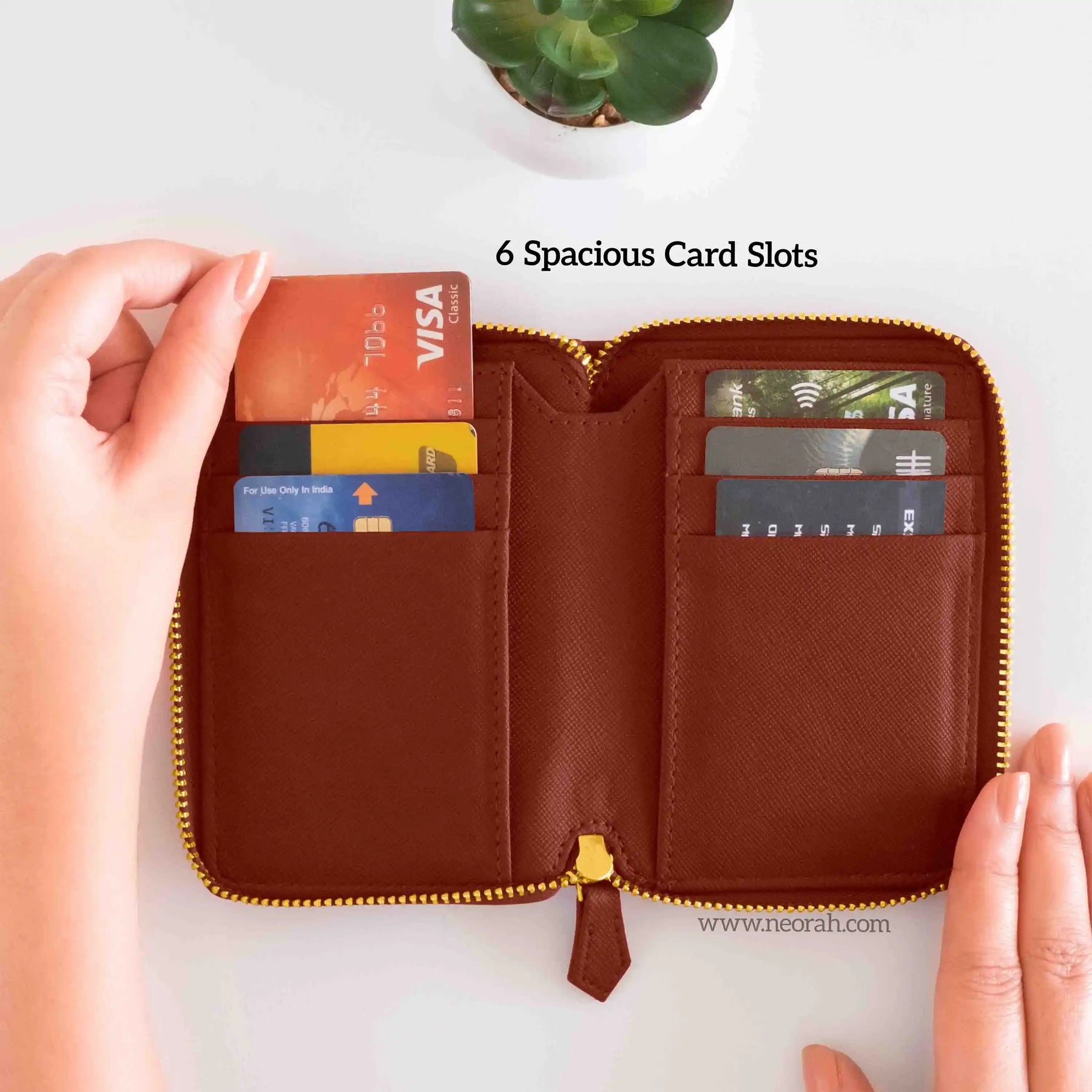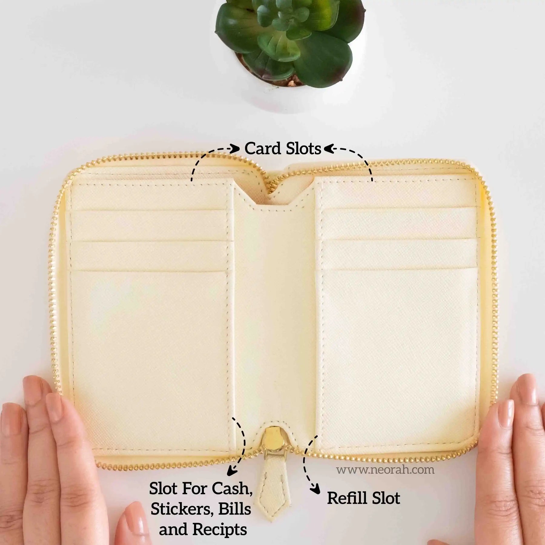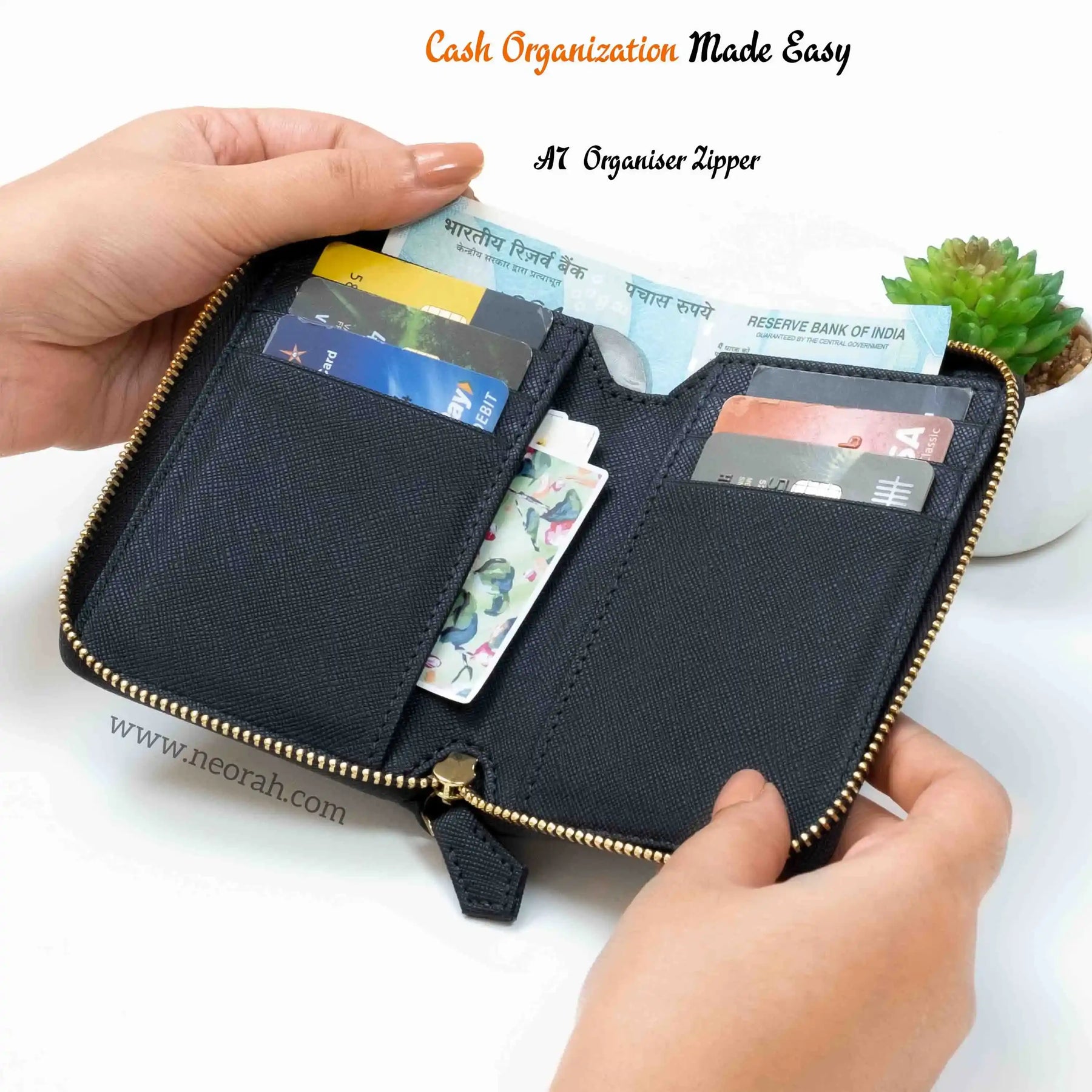 [ HANDCRAFTED TO PERFECTION ] This Journal cover is handcrafted with double panelled Vegan Leather that makes it a sturdy and reliable companion. The Journal Organiser has golden metallic zippered closure a compartment to insert any one replaceable A7 Soft Cover Journal 1 side compartment for stickers, bills or receipts 6 card slots a Wallet Space for cash, ticket etc.