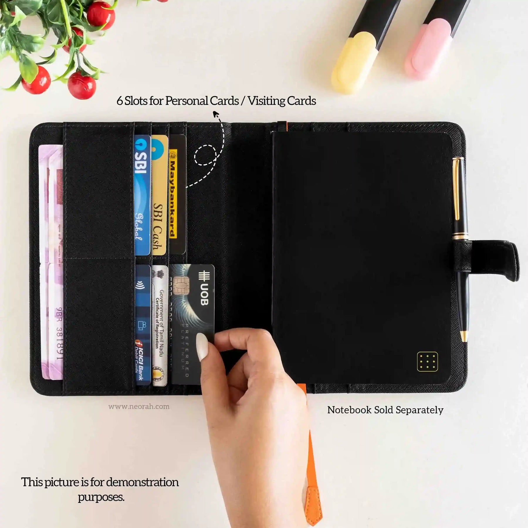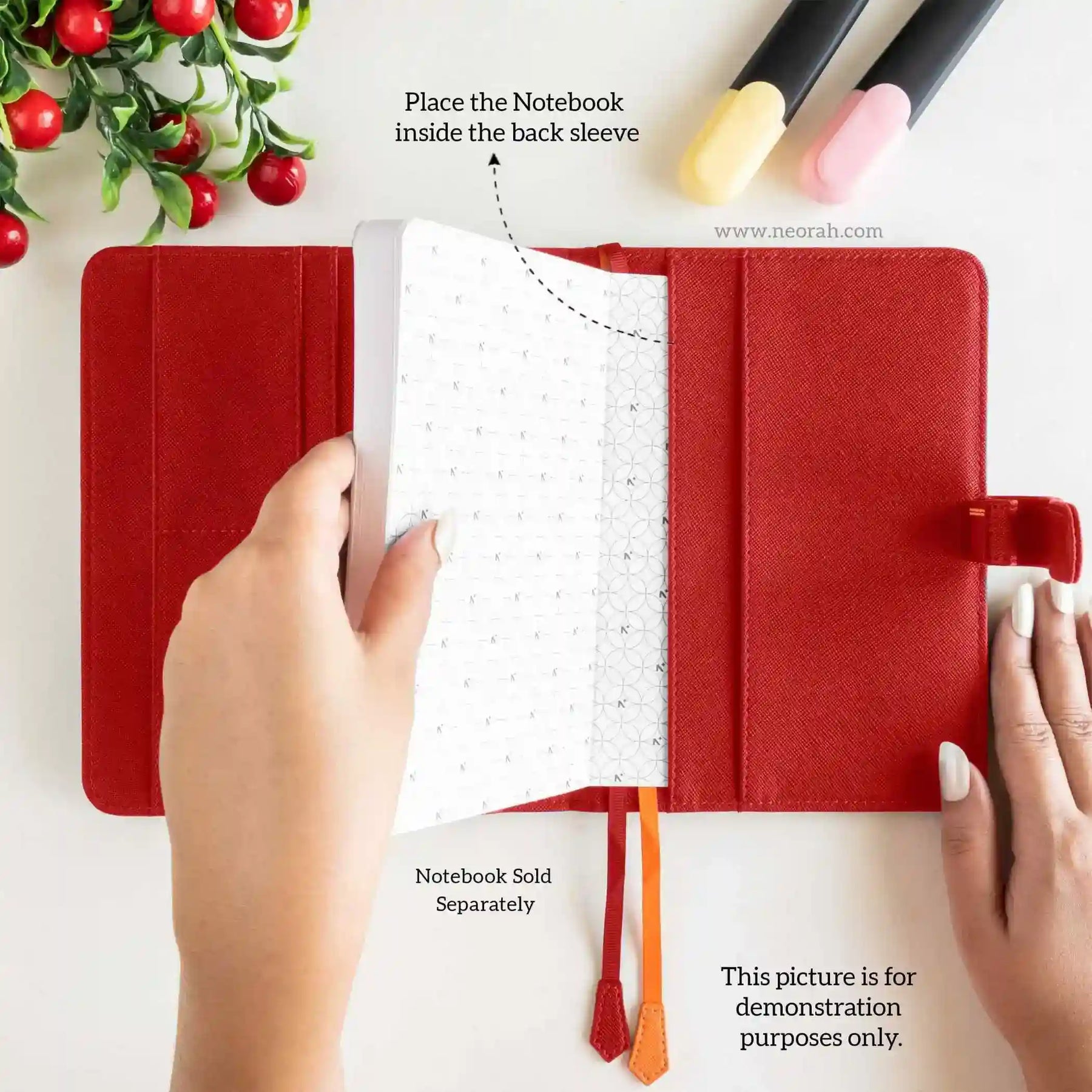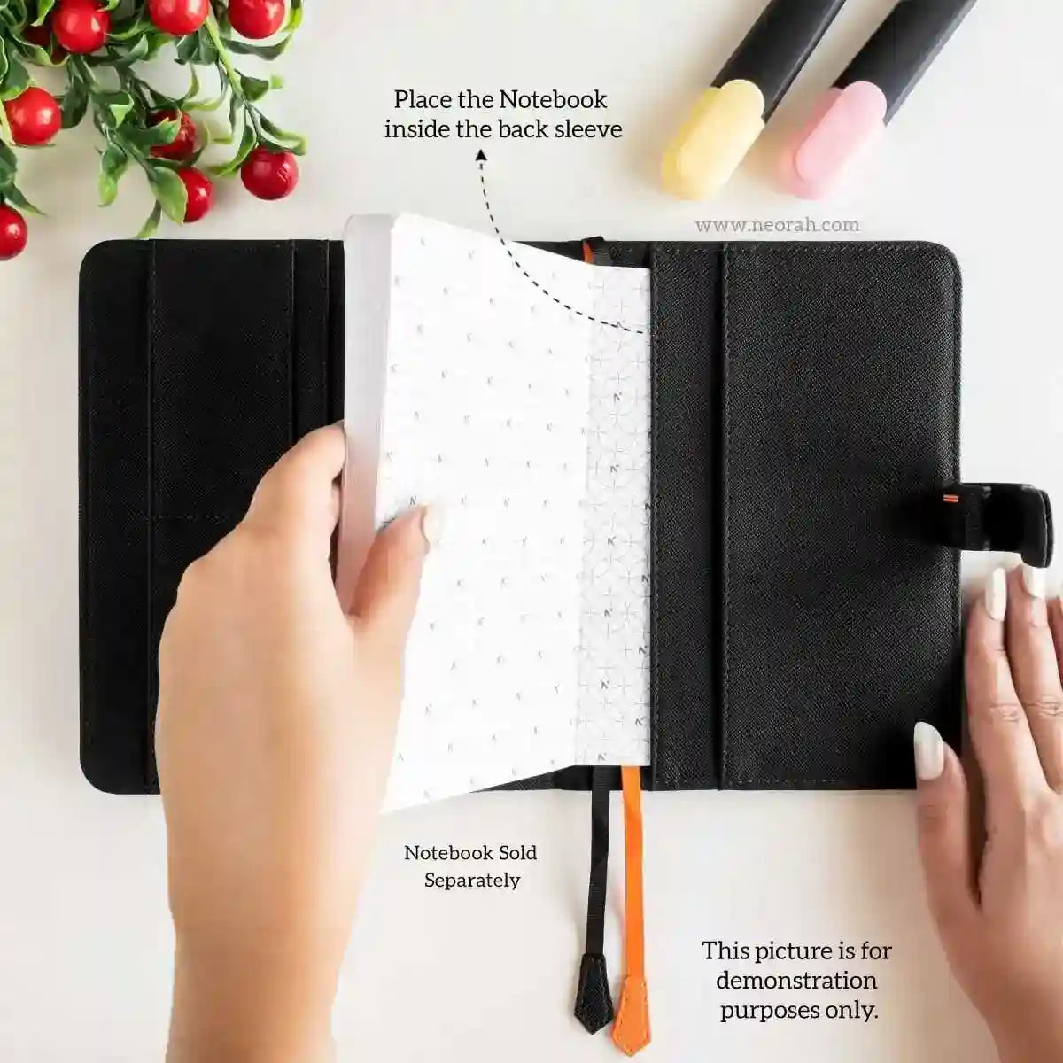 I am using the B6 hardcover journal in this organizer sleeve.. and I have used the side band of the hardcover journal in attaching the back side of the sleeve to make it secure..( as shown in the pictures) and it fits perfectly fine ๐๐คช๐