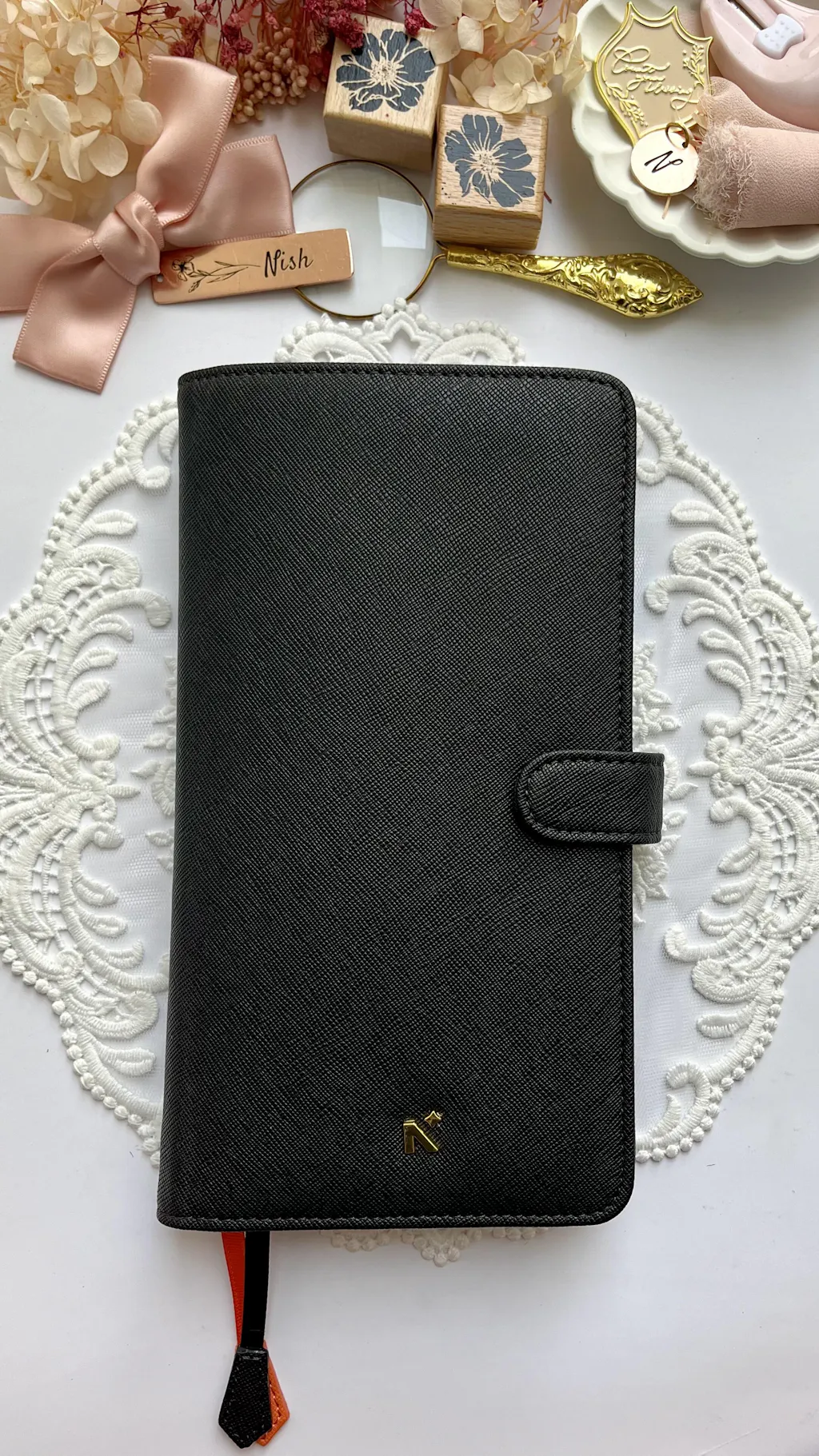 It has a dedicated refill compartment to insert your replaceable notebook/journal/planner. 2 durable silk blend bookmarks 6 card slots 2 compartments slit for stickers and receipts a pen loop
