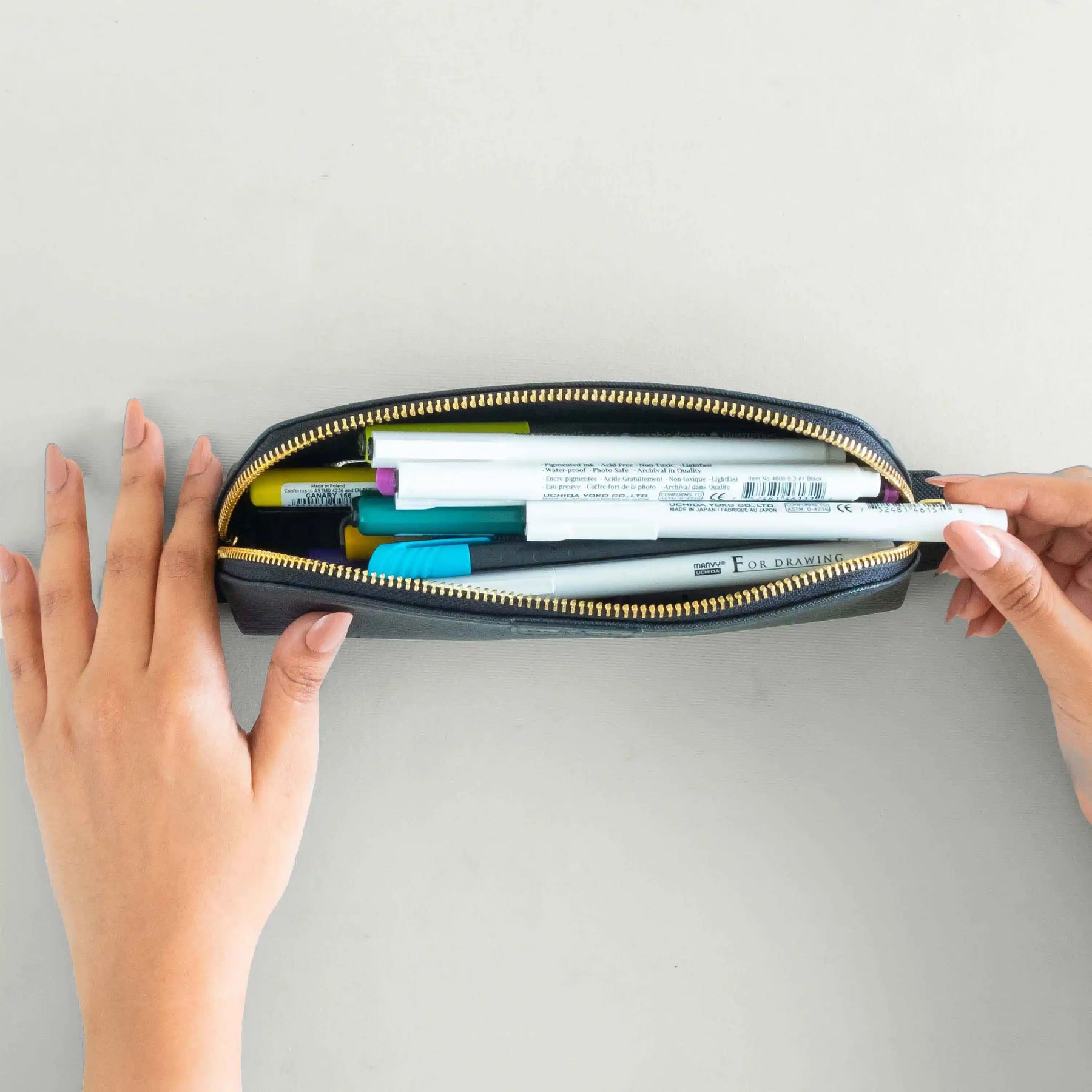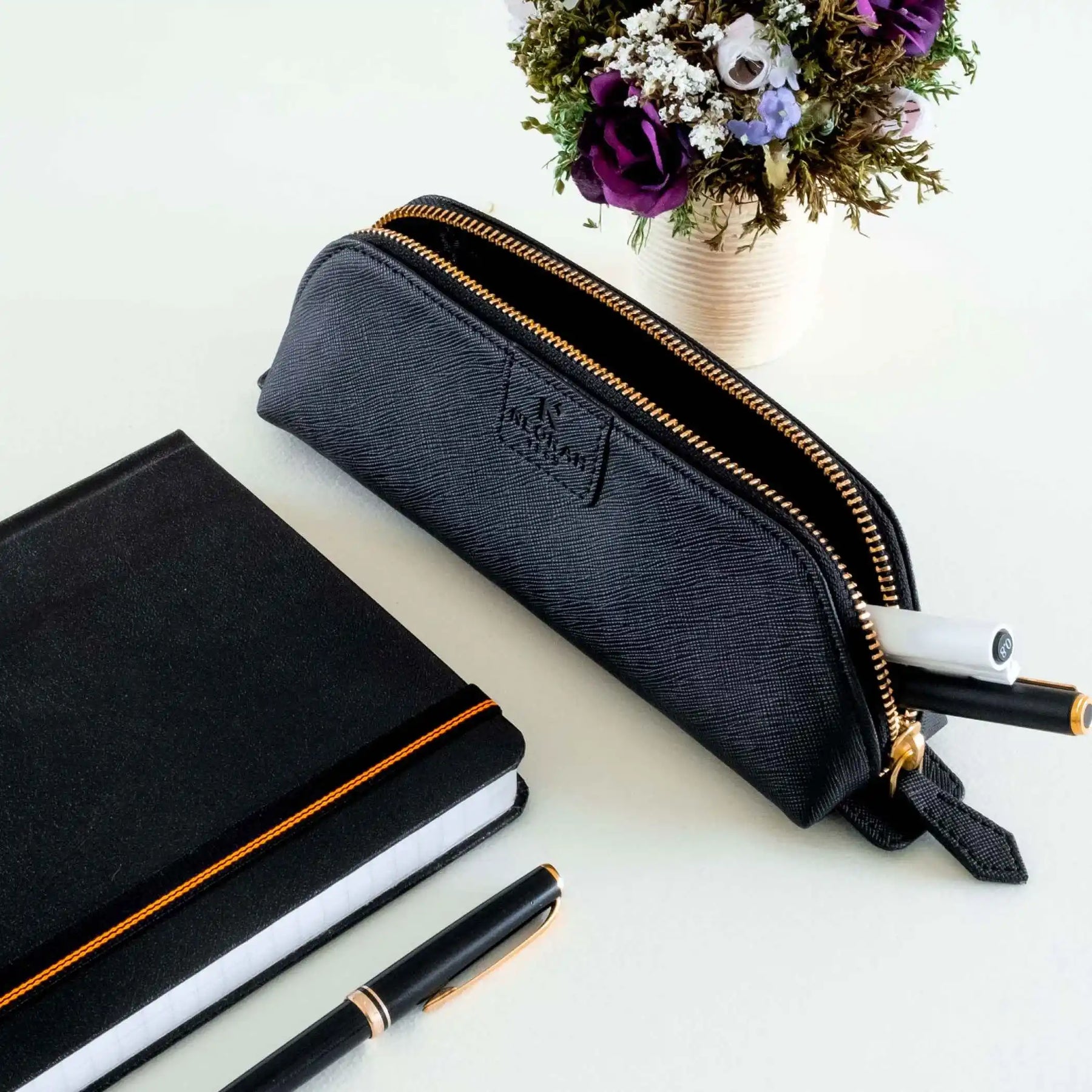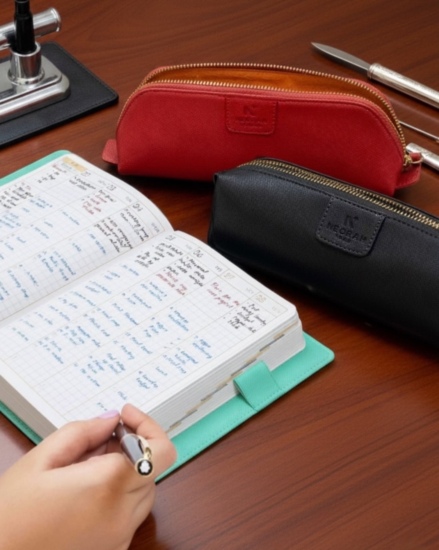 This pen pouch is perfect! The vegan leather feels soft and premium, with a sleek criss-cross design and glossy finish. It’s just the right size for my pens and easy to carry. The packaging was also amazing — a great touch!