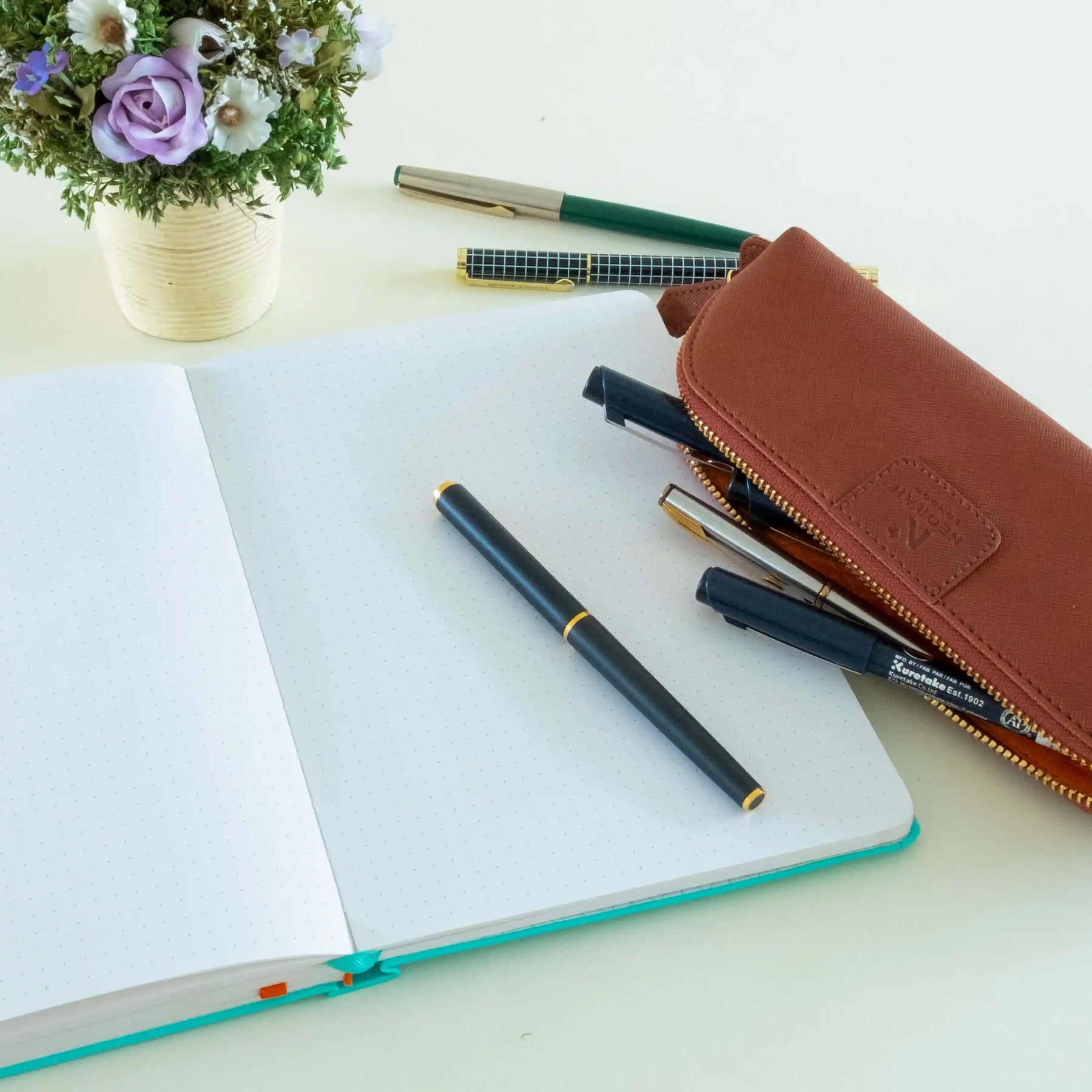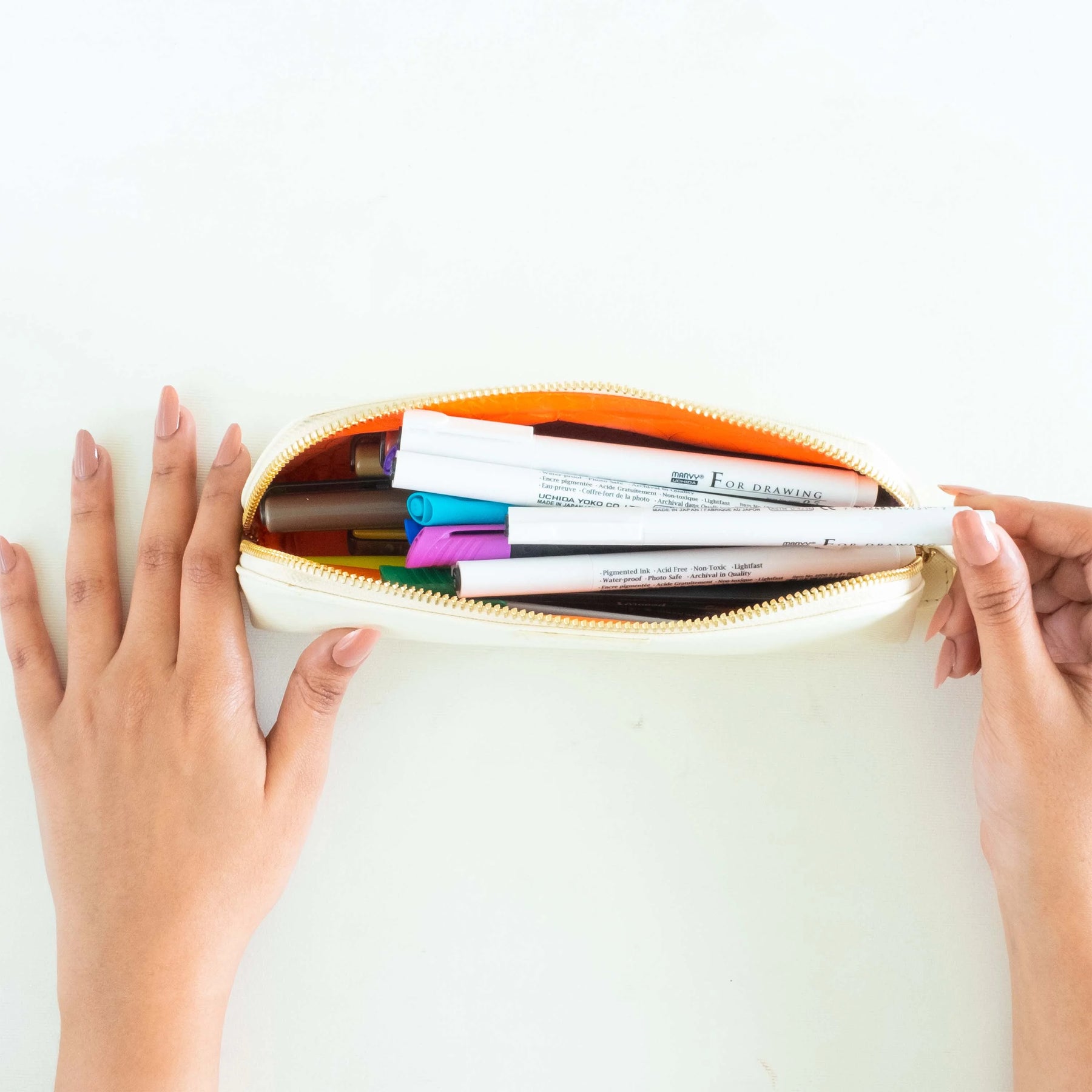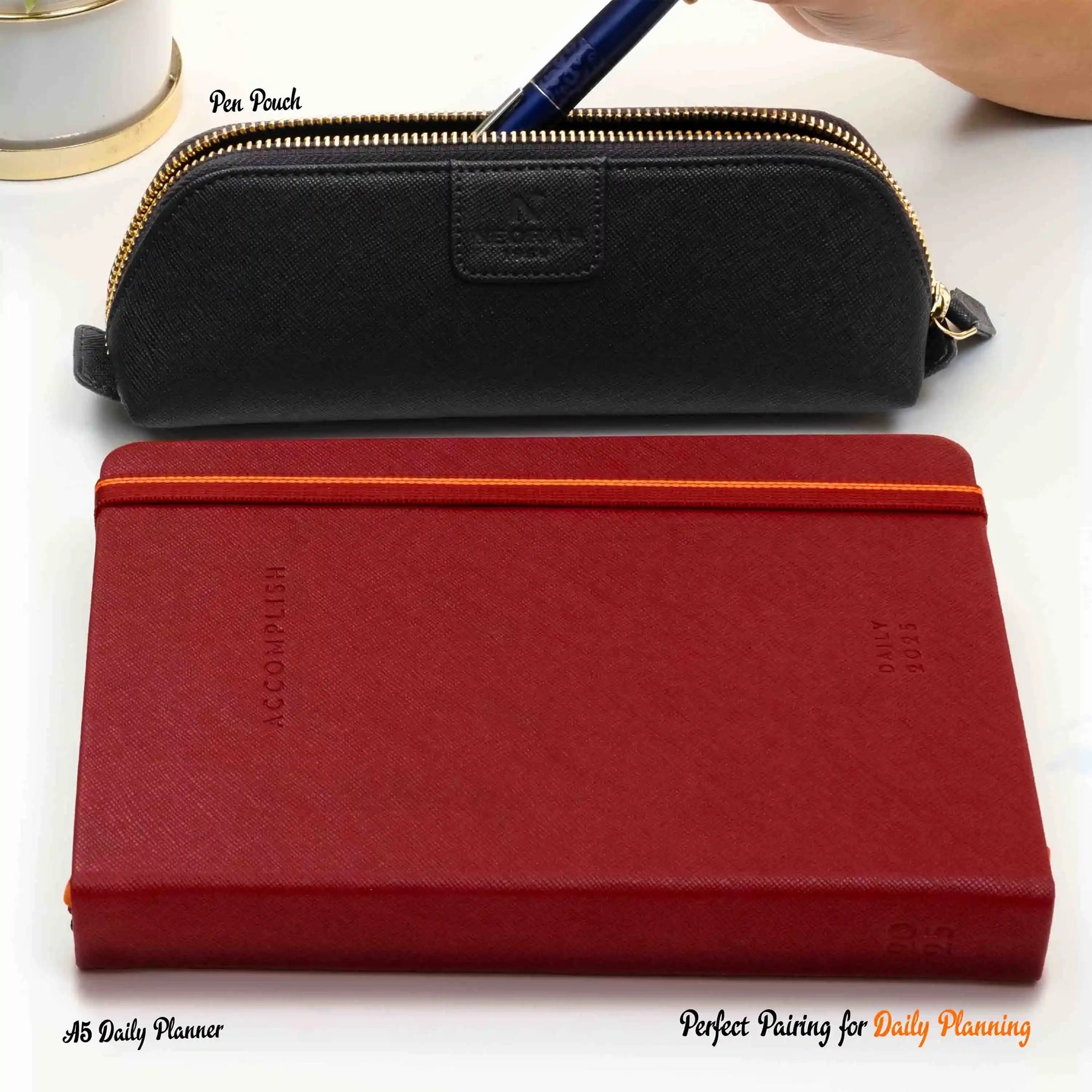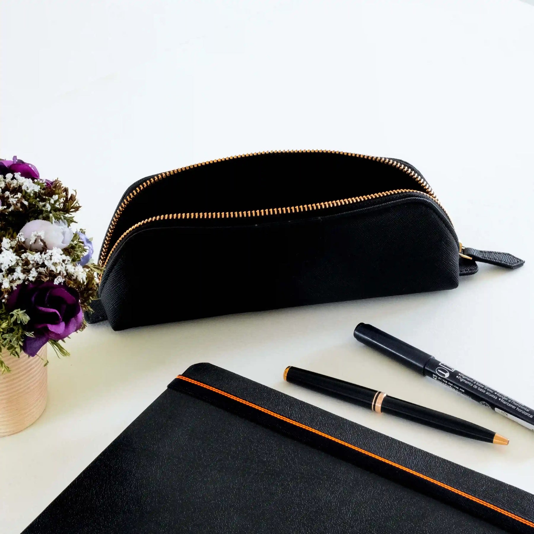 This pen pouch is perfect! The vegan leather feels soft and premium, with a sleek criss-cross design and glossy finish. It’s just the right size for my pens and easy to carry. The packaging was also amazing — a great touch!