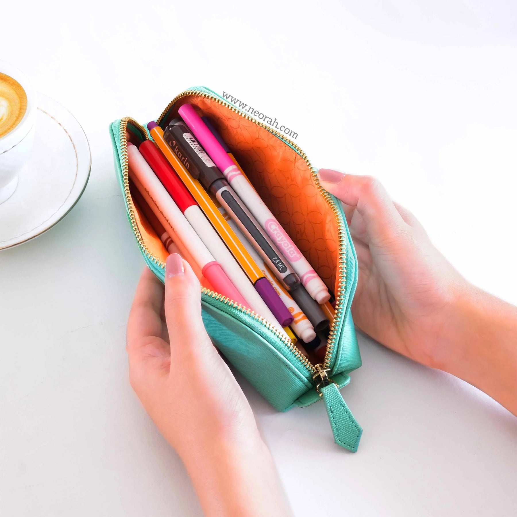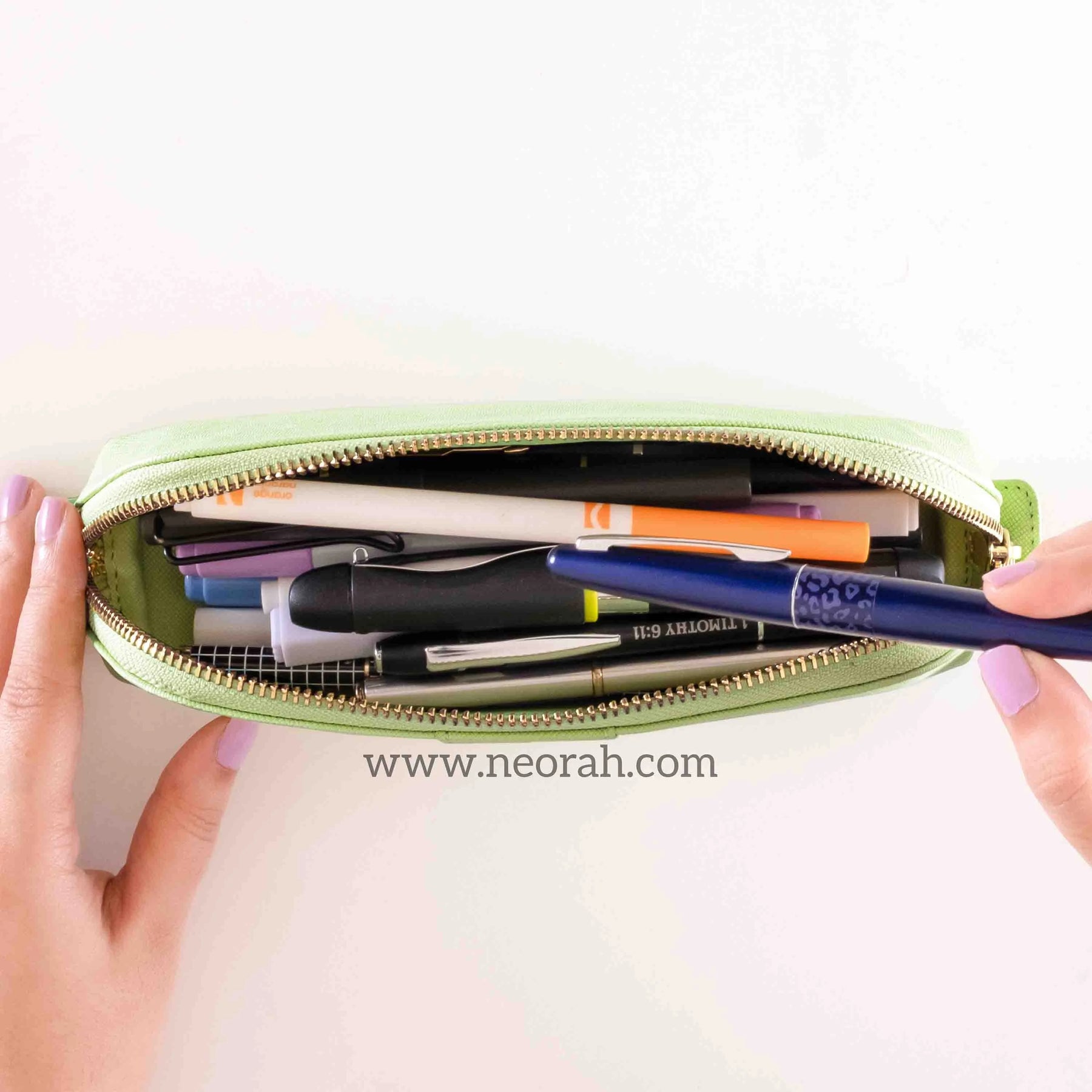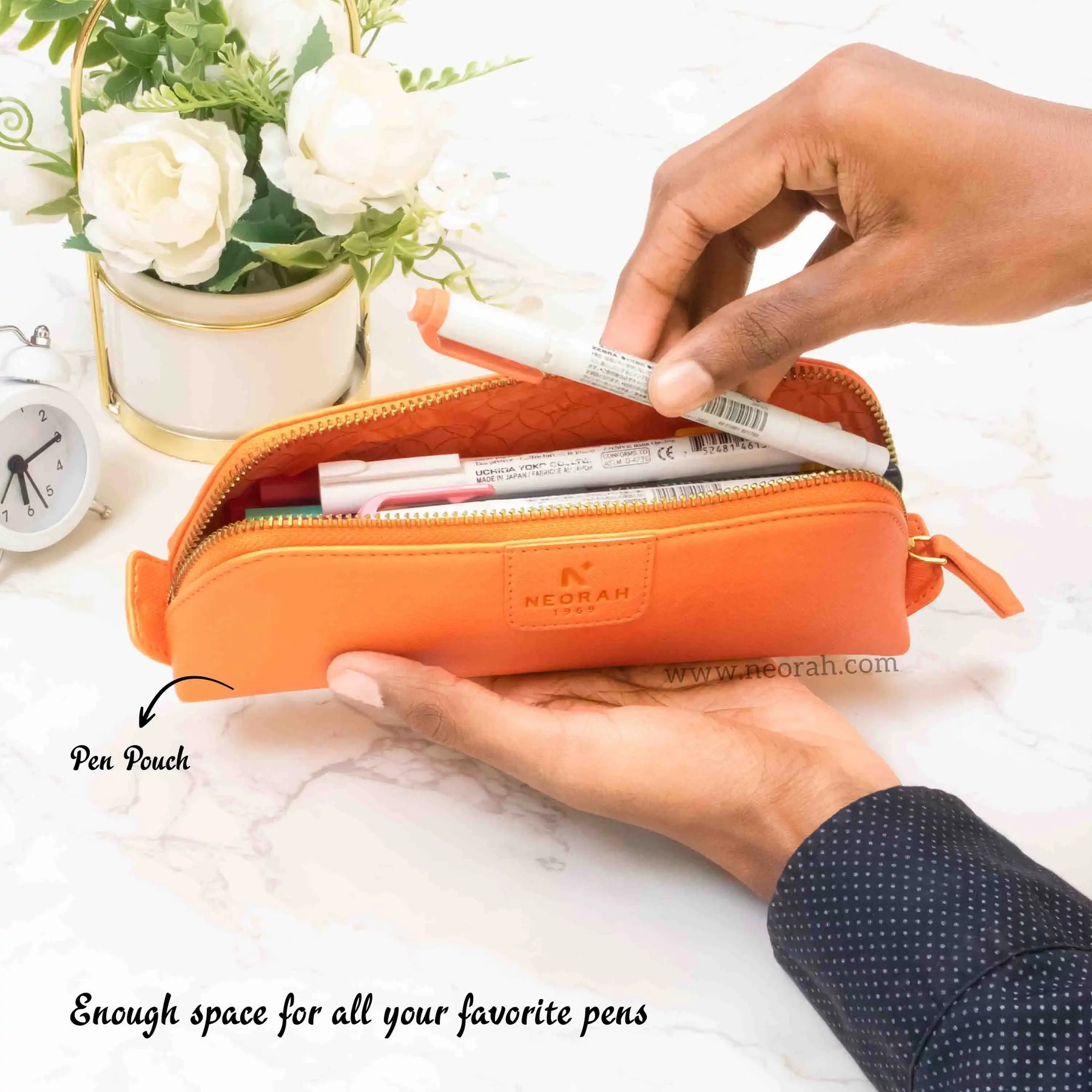 The Neorah Vegan Leather Stationery Pouch in lavender is both cute and practical. Its soft material feels great, and it’s the perfect size for keeping your pens and essentials organized. Plus, it's eco-friendly, so it’s a great choice for gifting