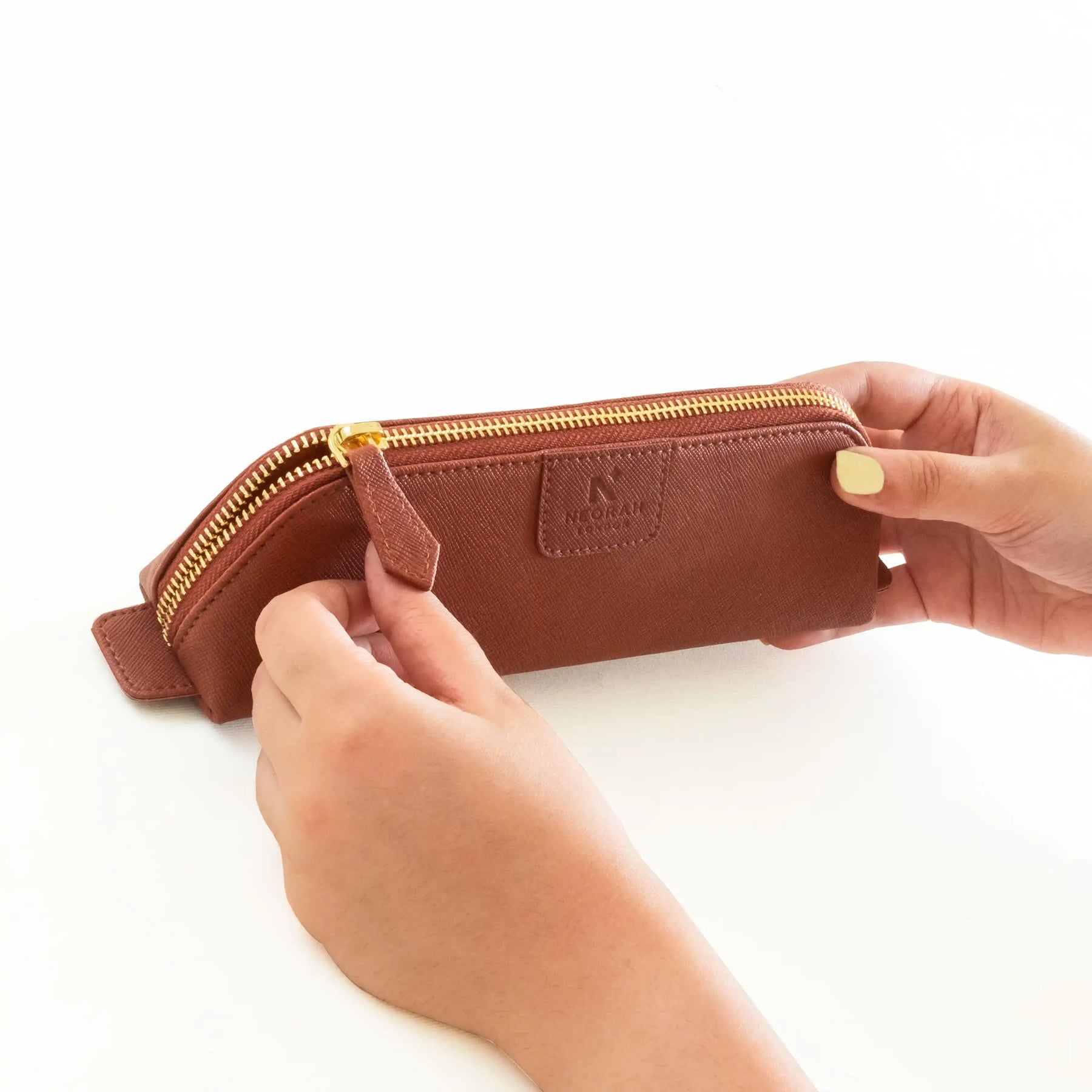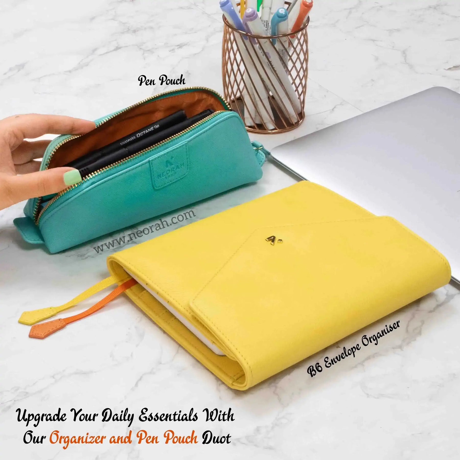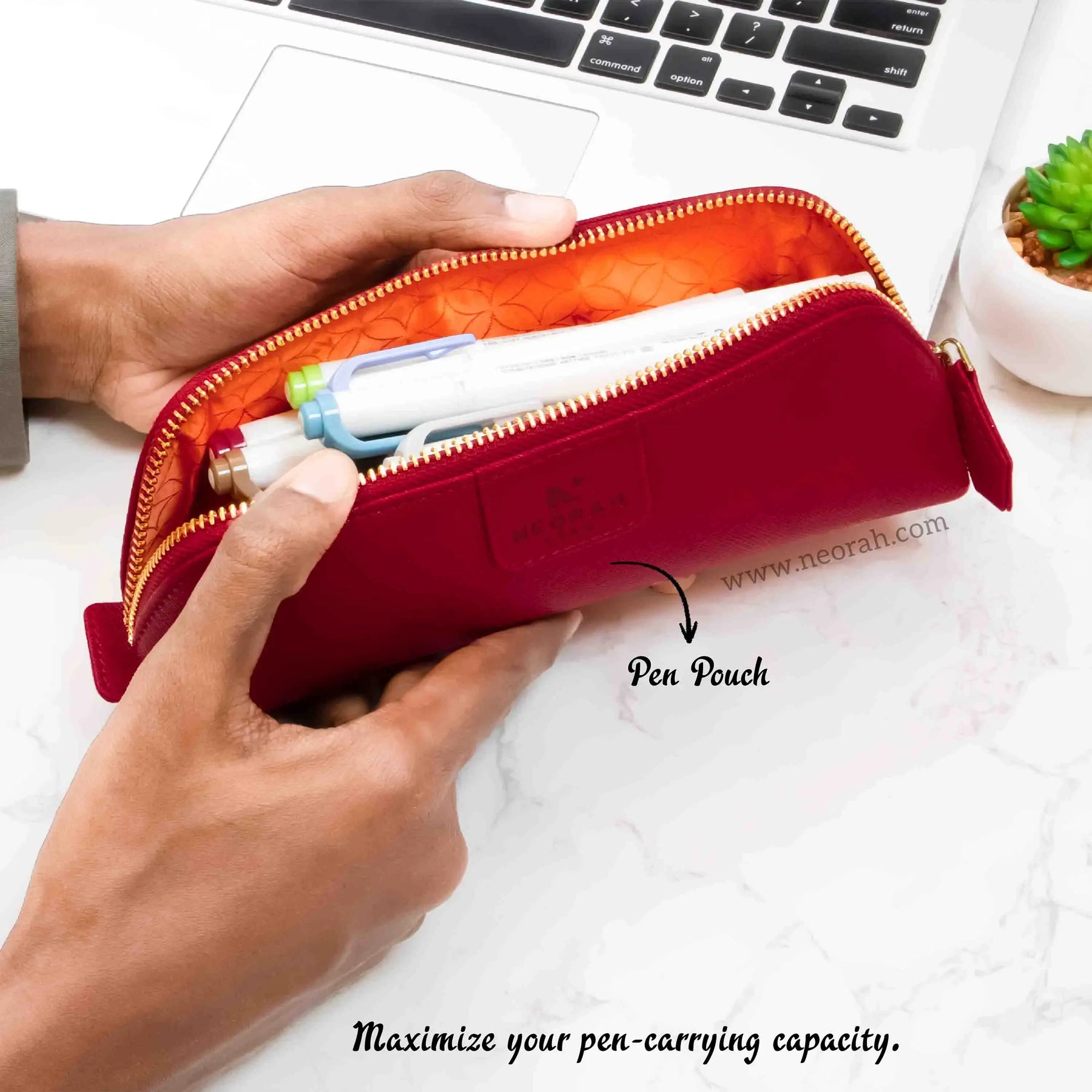 The Neorah Vegan Leather Stationery Pouch in lavender is both cute and practical. Its soft material feels great, and it’s the perfect size for keeping your pens and essentials organized. Plus, it's eco-friendly, so it’s a great choice for gifting