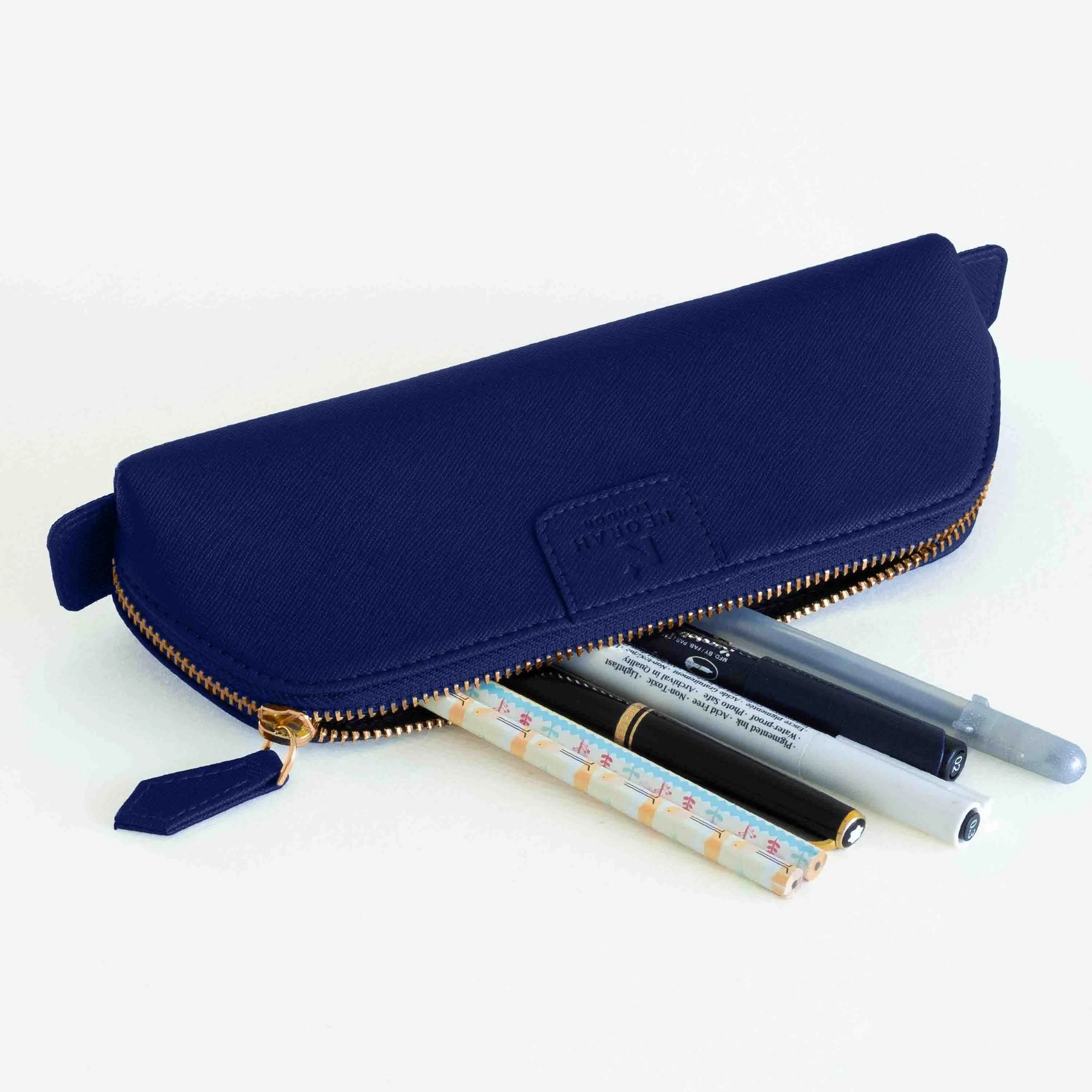 I got a light blue pen pouch. I loved how luxurious it felt. The triangular shape is cute and convenient plus there is lots of space to store your stationery. I'd totally recommend it :)