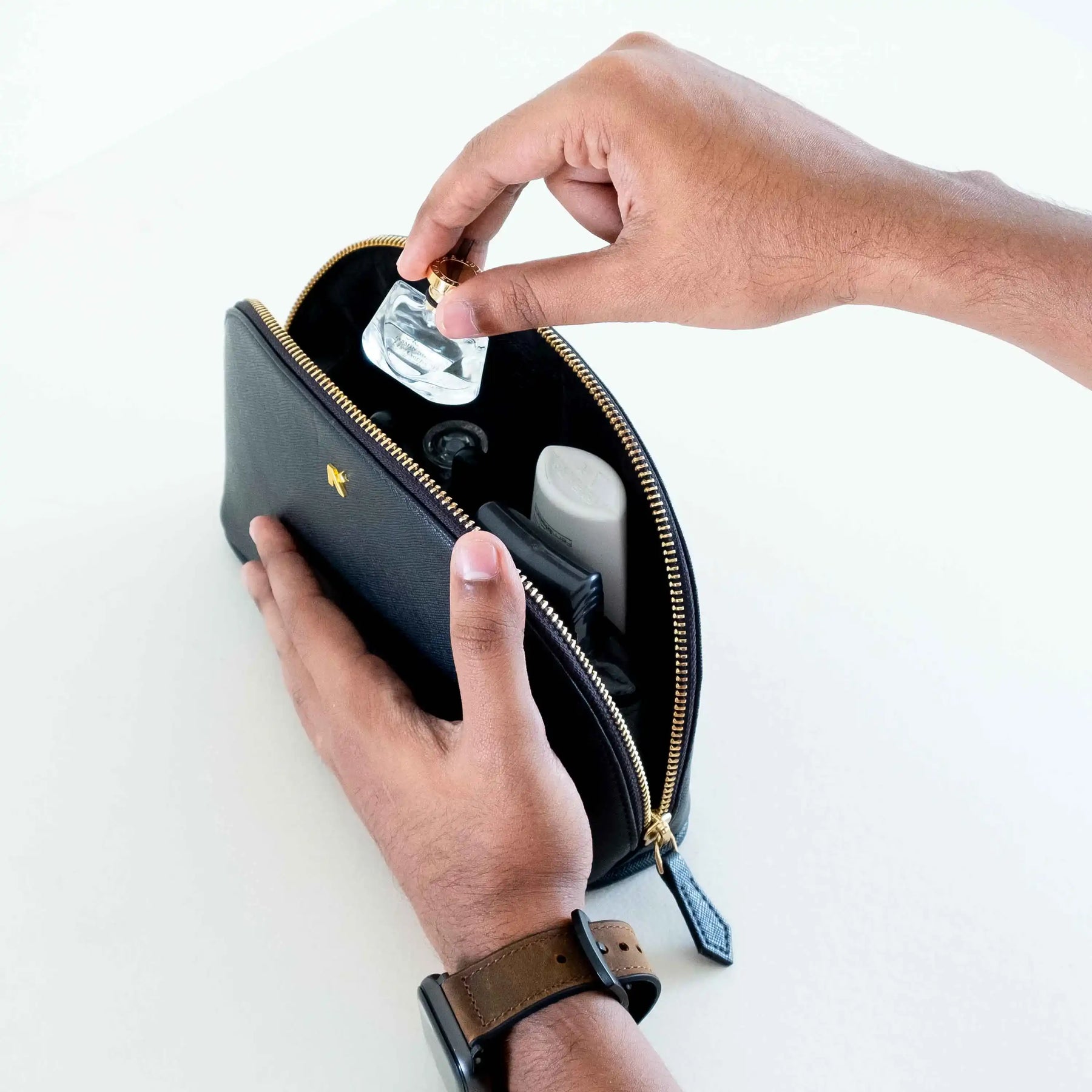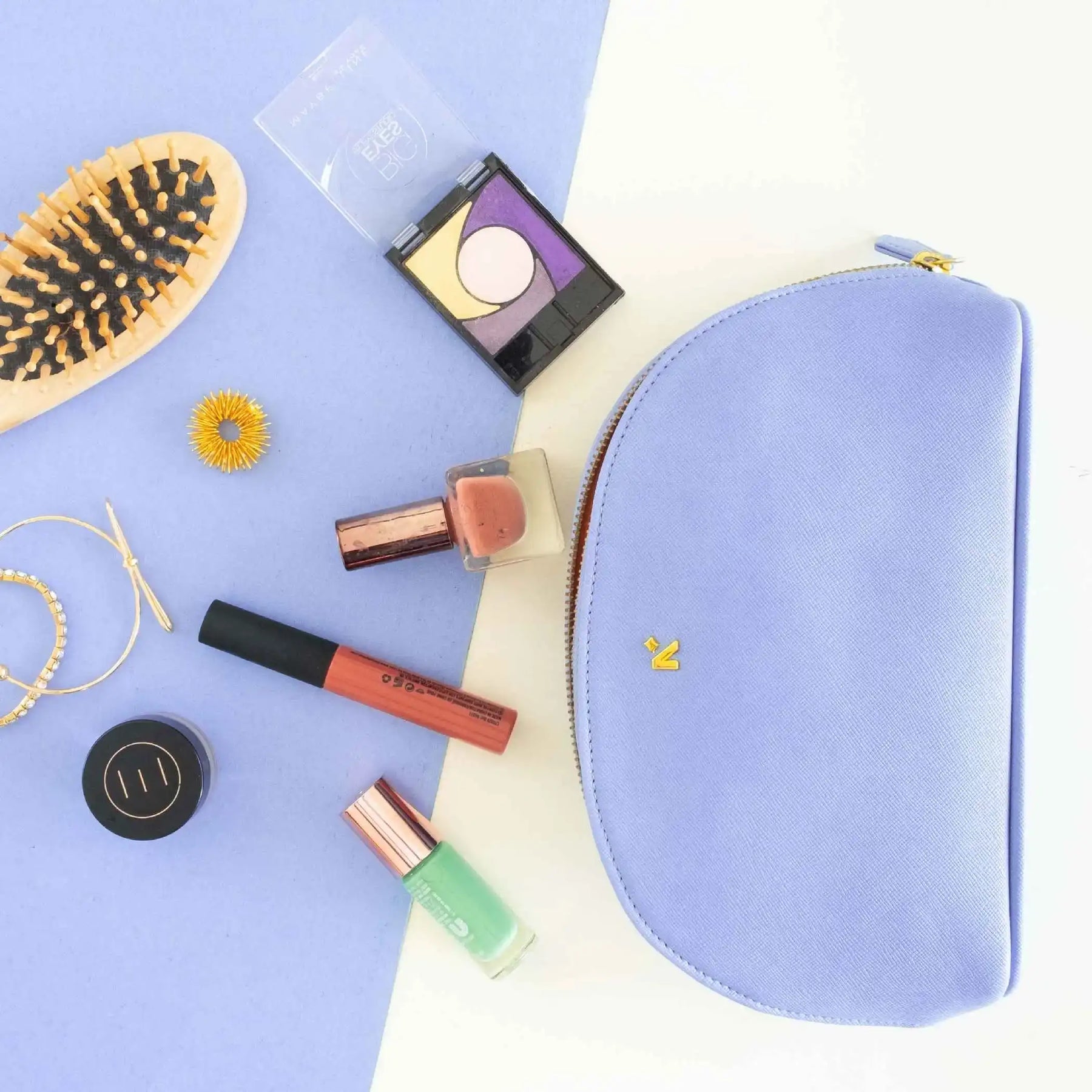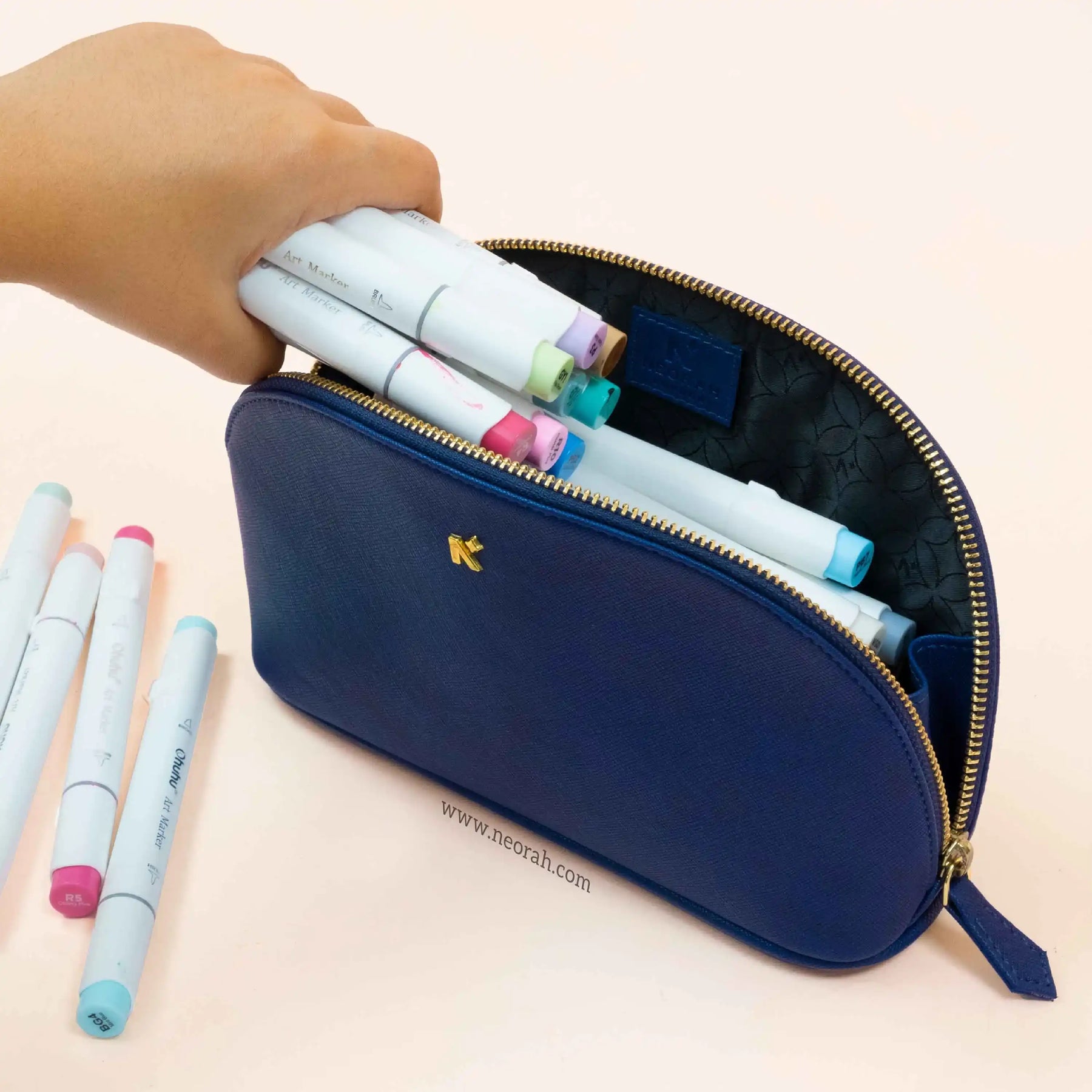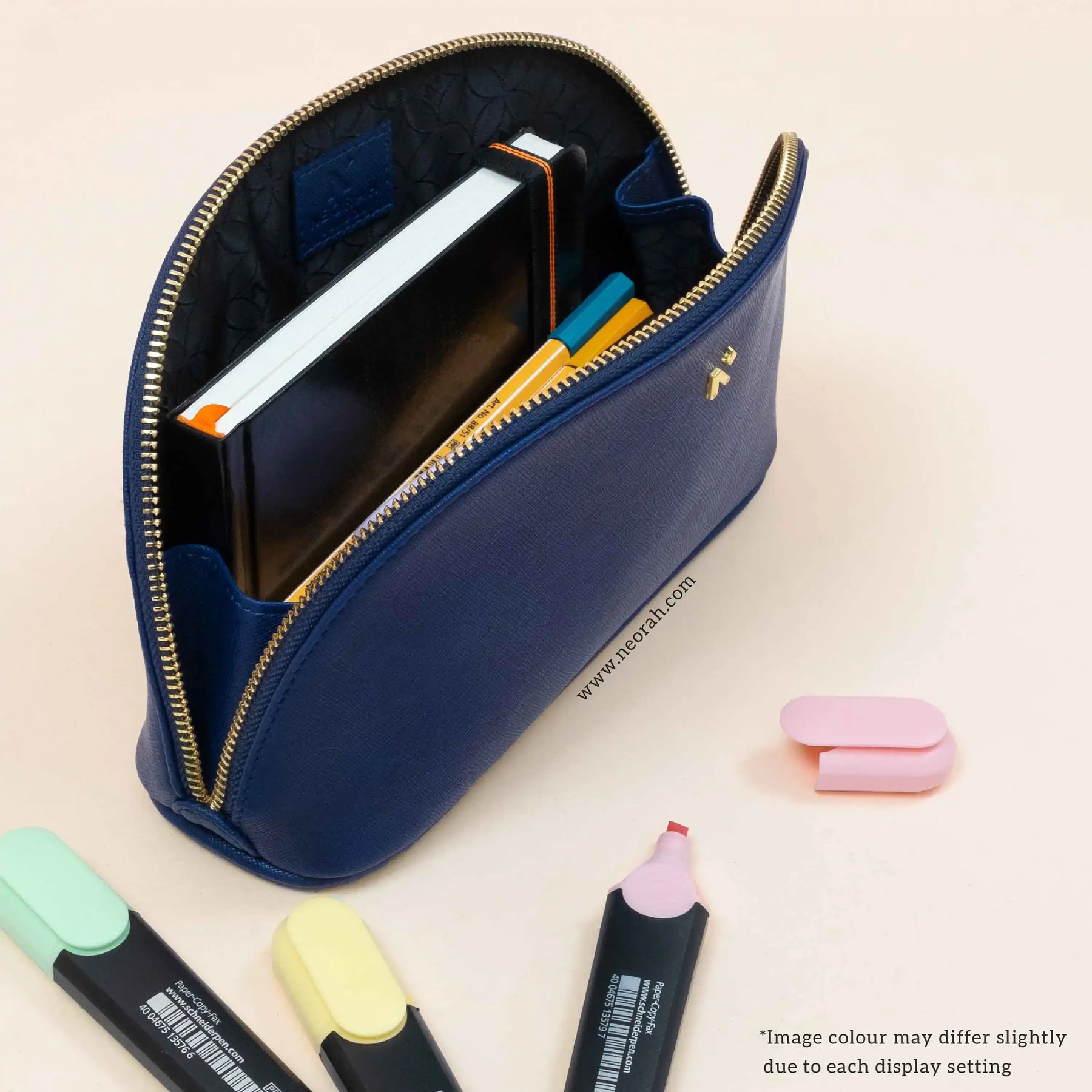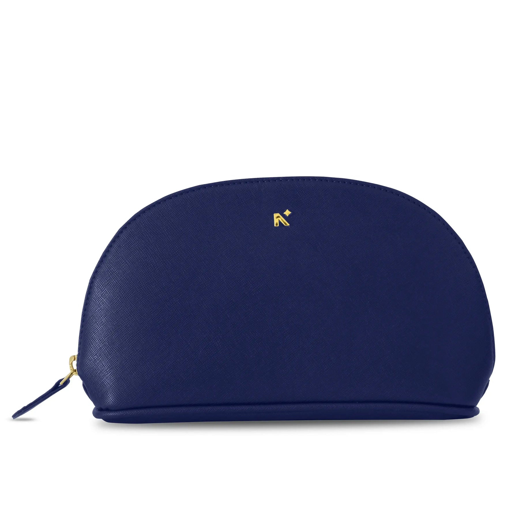 Neorah cosmetic pouch for travel, Best Makeup Bag, Designer makeup pouches to carry everyday makeup skincare and essentials for travel. #color_dark-blue