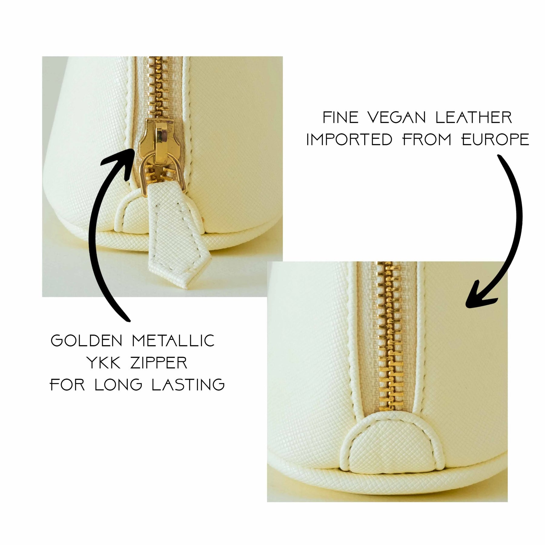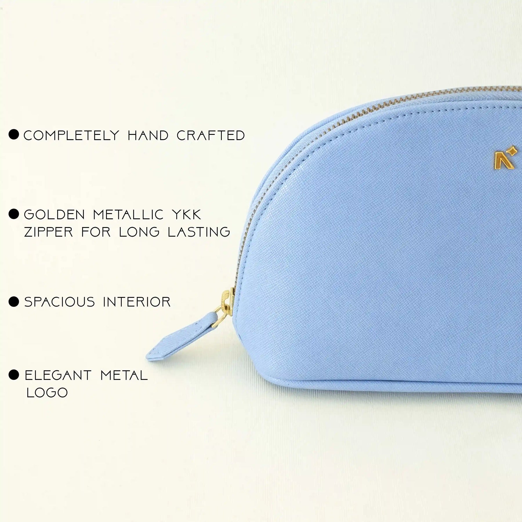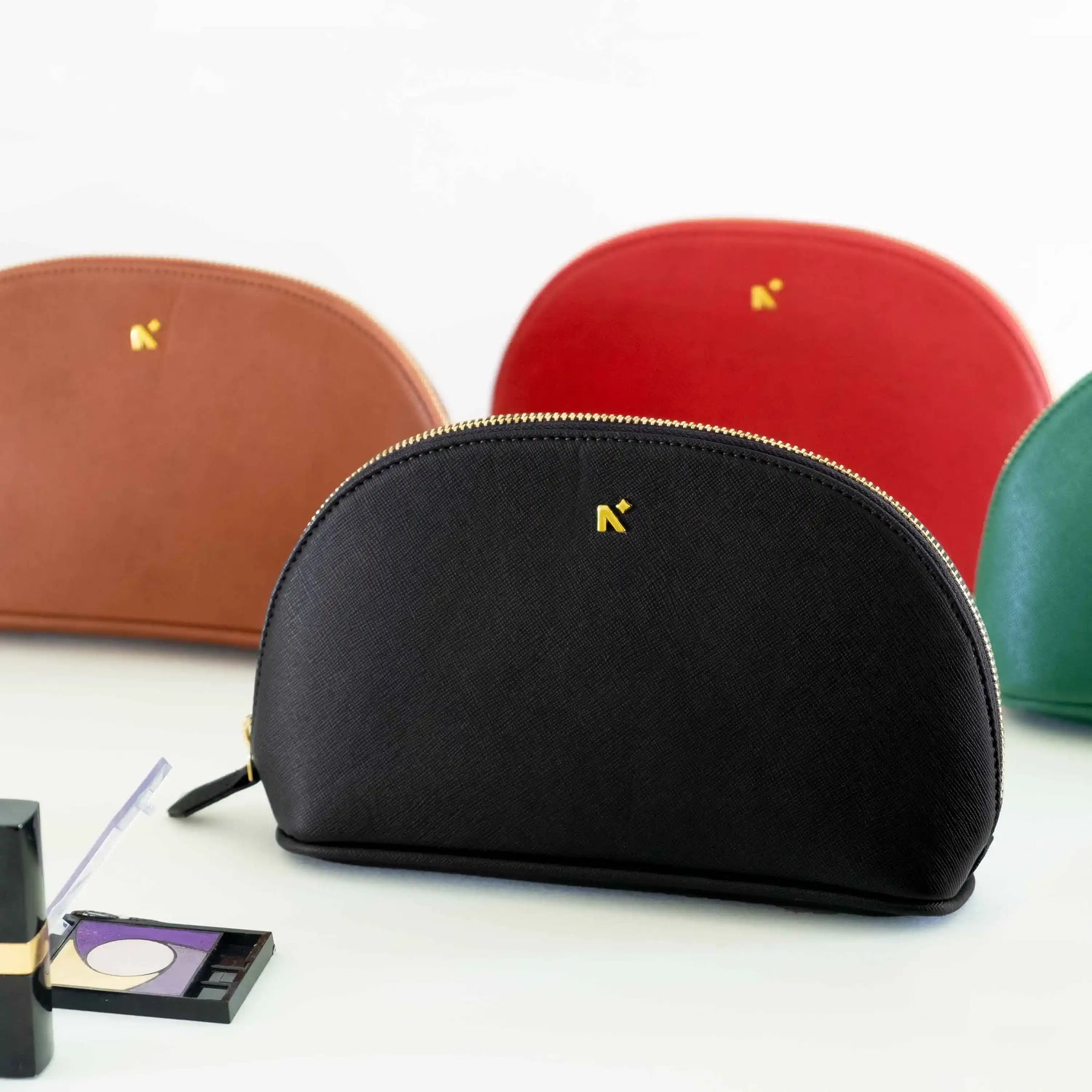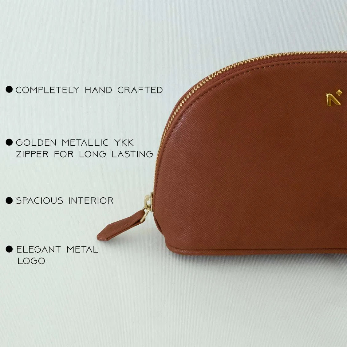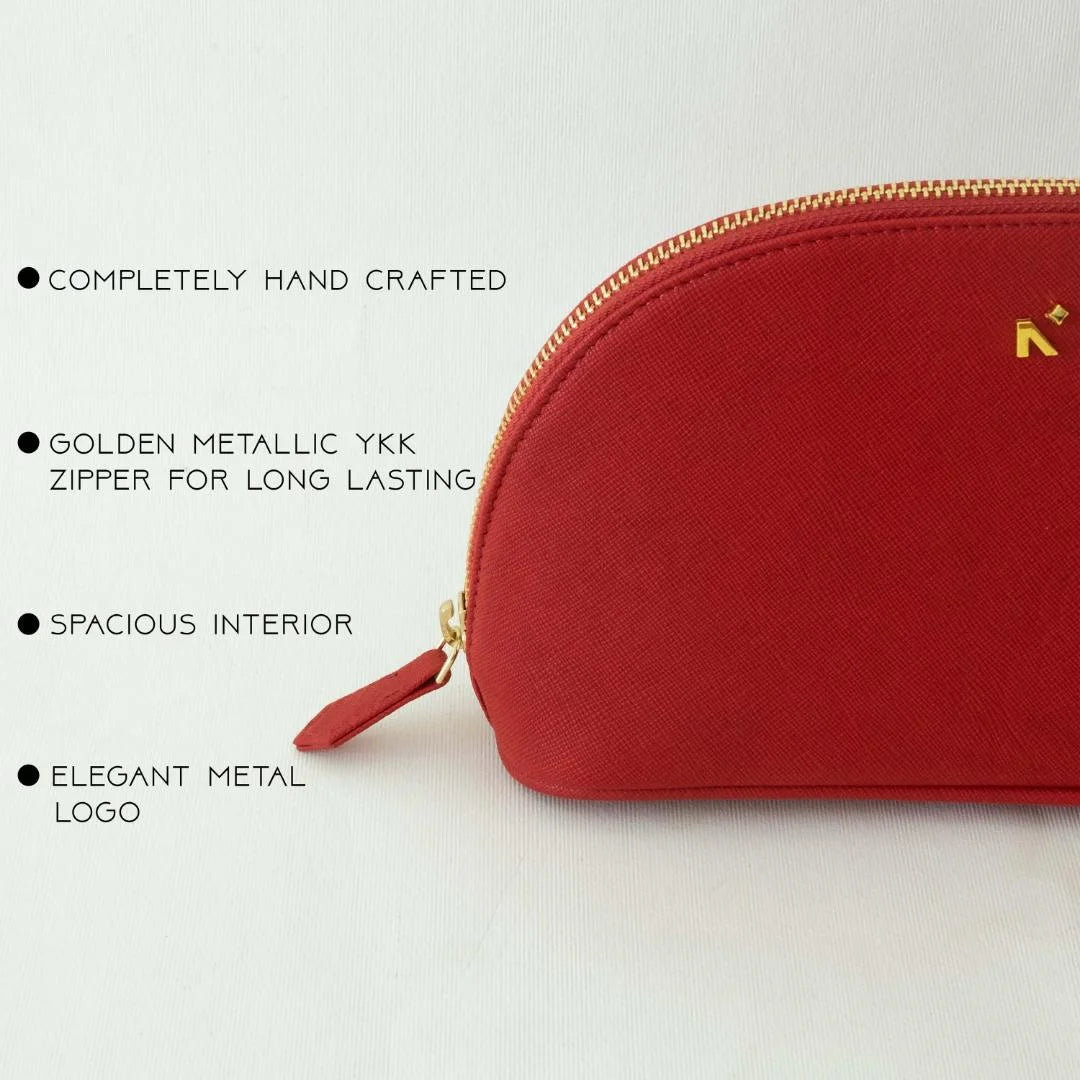 [IDEAL PORTABLE CASE] The stylishly compact half-moon pouchette makes it easy to slip in your handbags, totes, travel bags and pack in suitcases. Durable, Lightweight, Waterproof with highest standard workmanship.