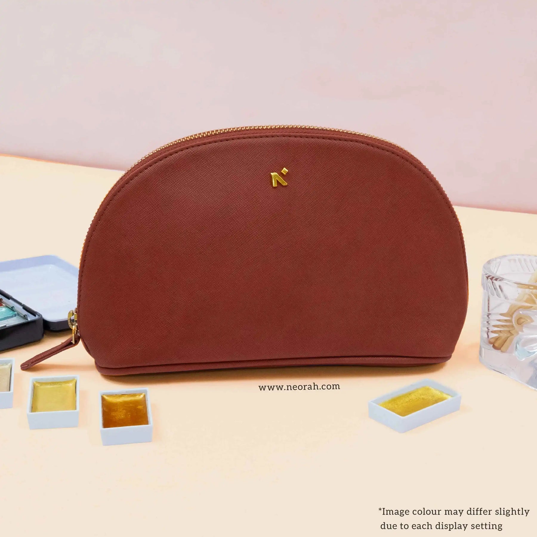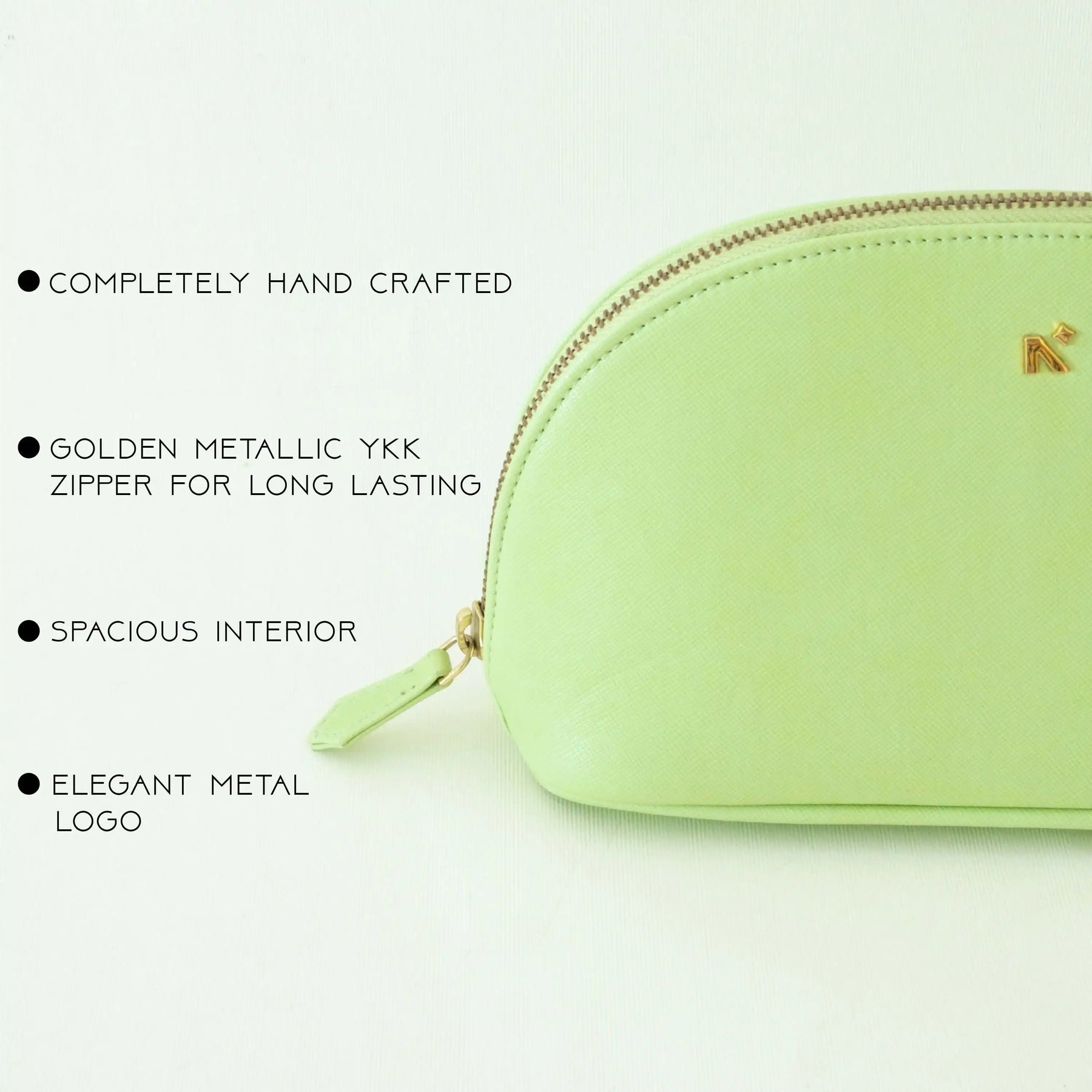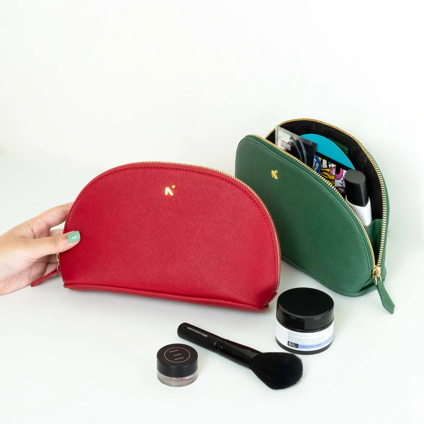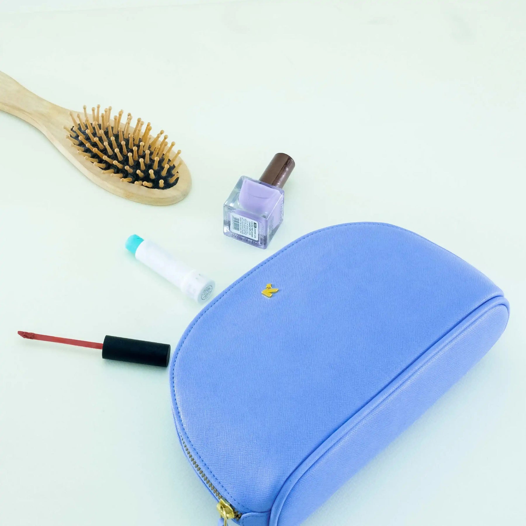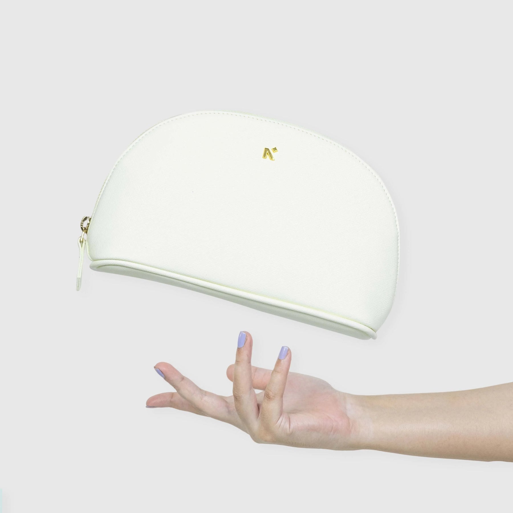 [IDEAL PORTABLE CASE] The stylishly compact half-moon pouchette makes it easy to slip in your handbags, totes, travel bags and pack in suitcases. Durable, Lightweight, Waterproof with highest standard workmanship.