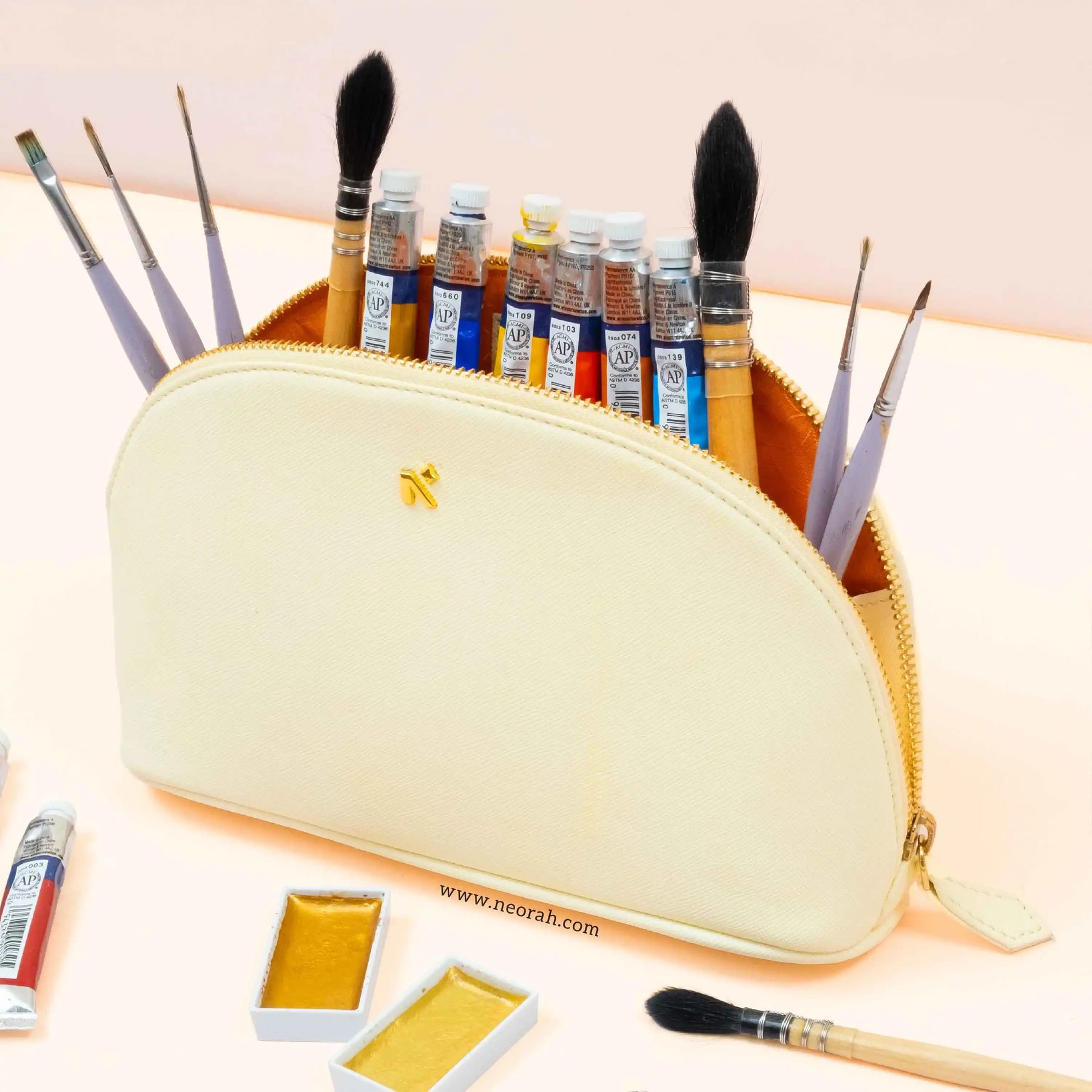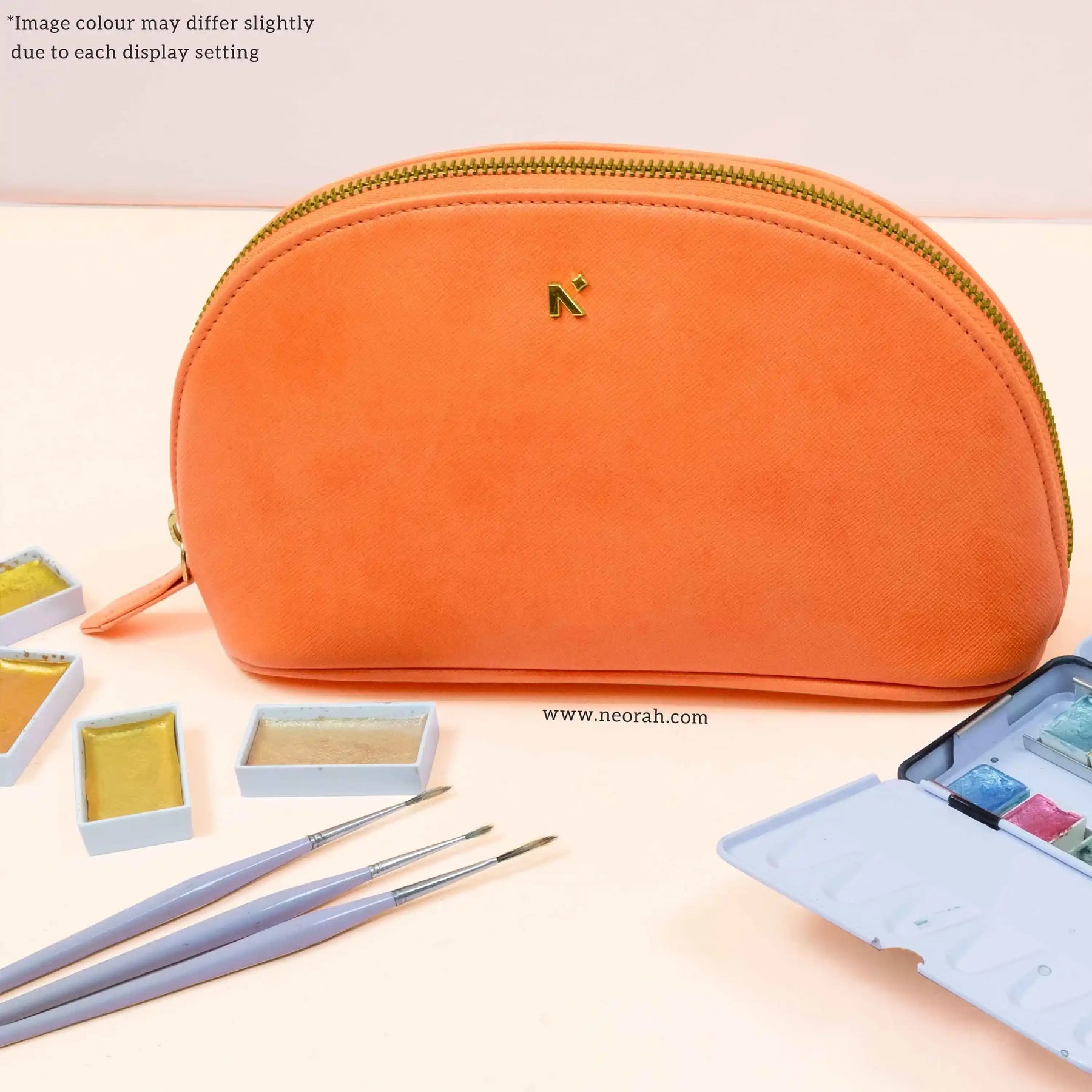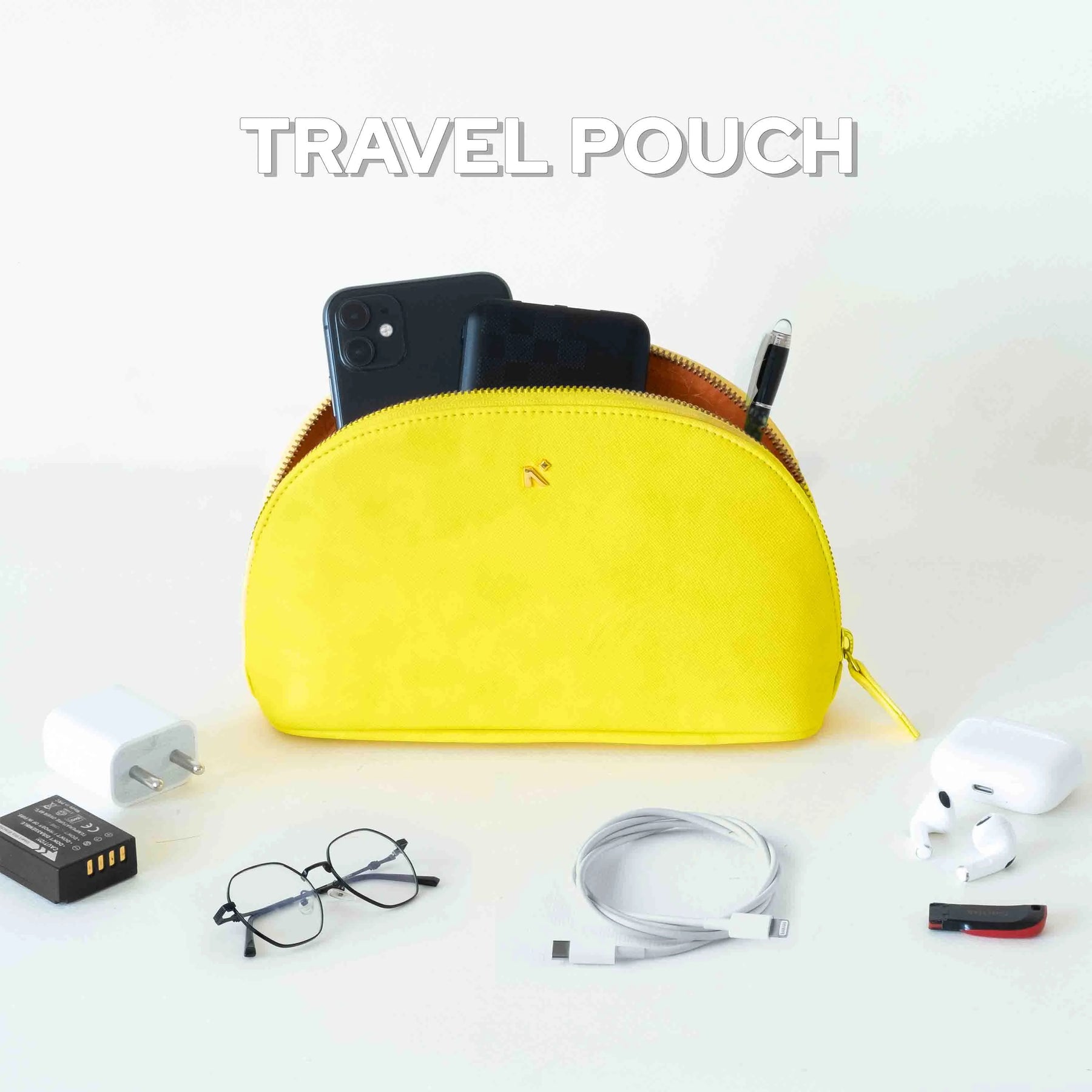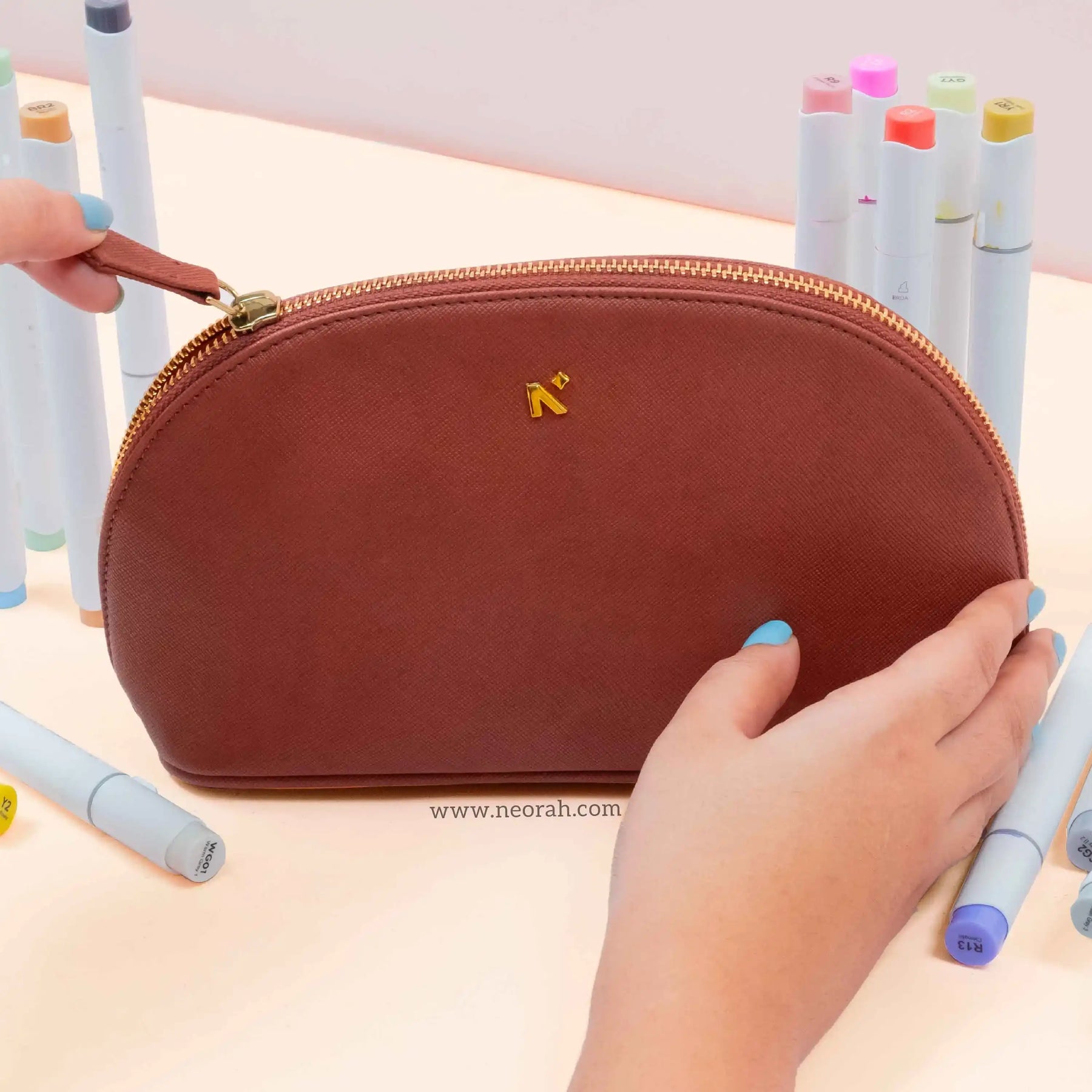 [IDEAL PORTABLE CASE] The stylishly compact half-moon pouchette makes it easy to slip in your handbags, totes, travel bags and pack in suitcases. Durable, Lightweight, Waterproof with highest standard workmanship.