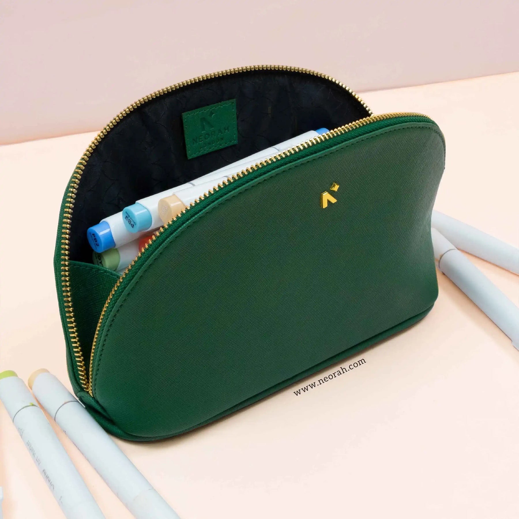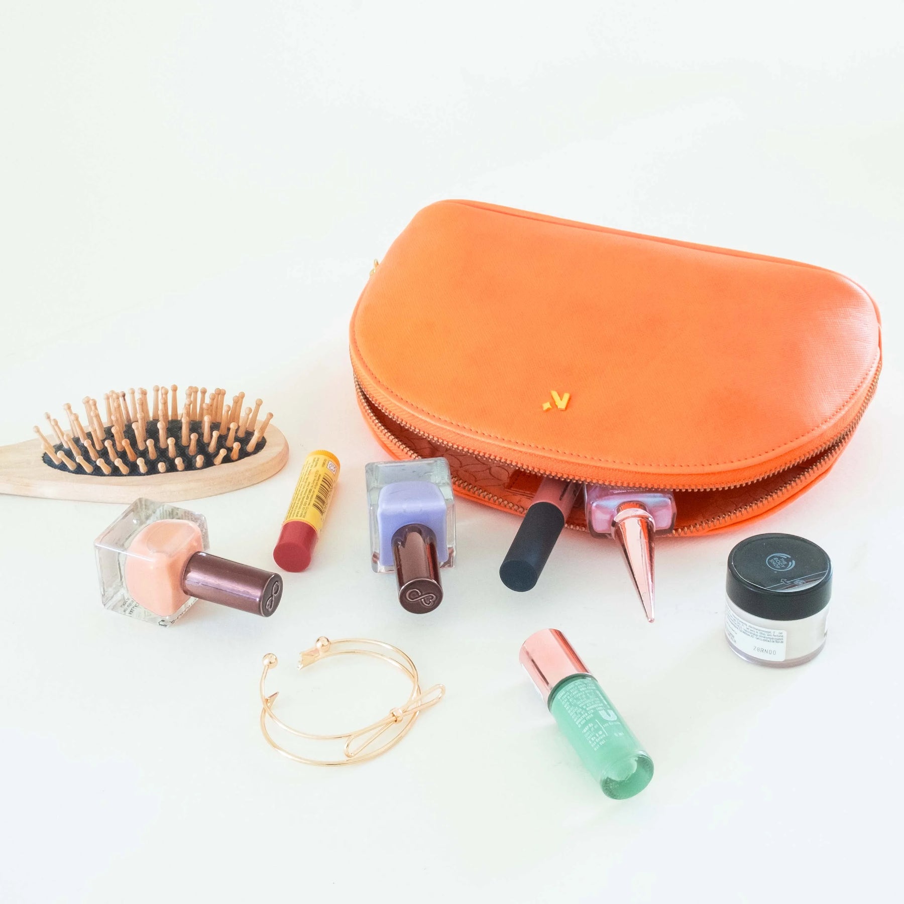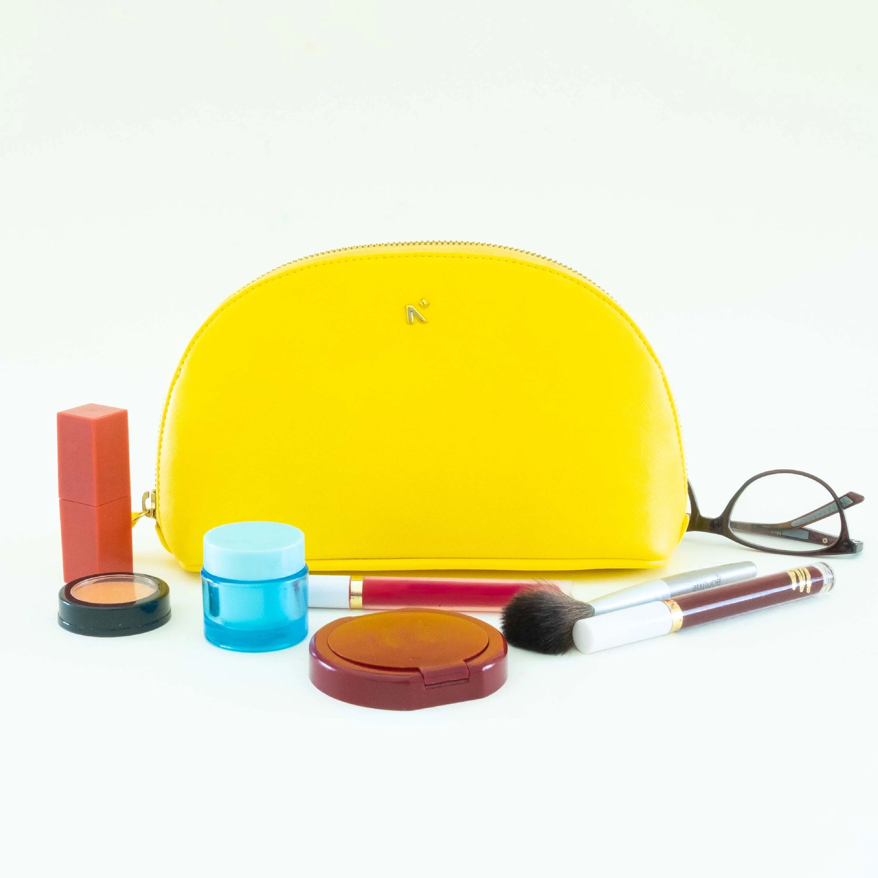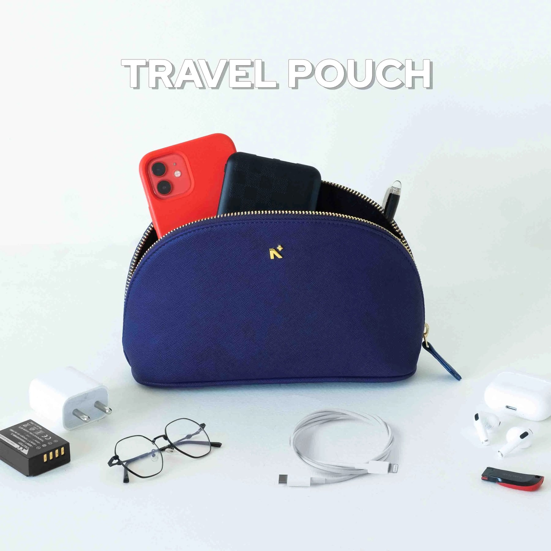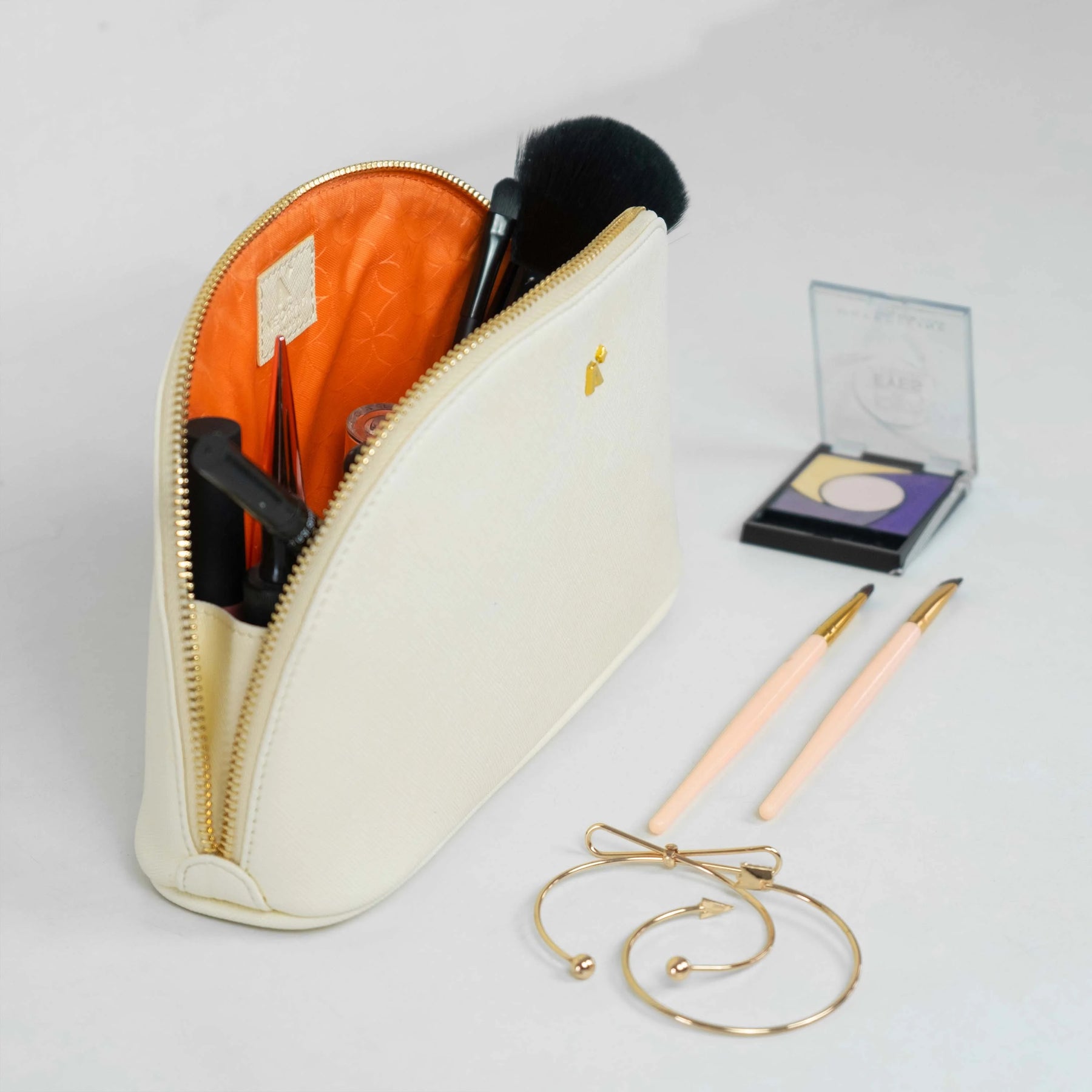 [IDEAL PORTABLE CASE] The stylishly compact half-moon pouchette makes it easy to slip in your handbags, totes, travel bags and pack in suitcases. Durable, Lightweight, Waterproof with highest standard workmanship.