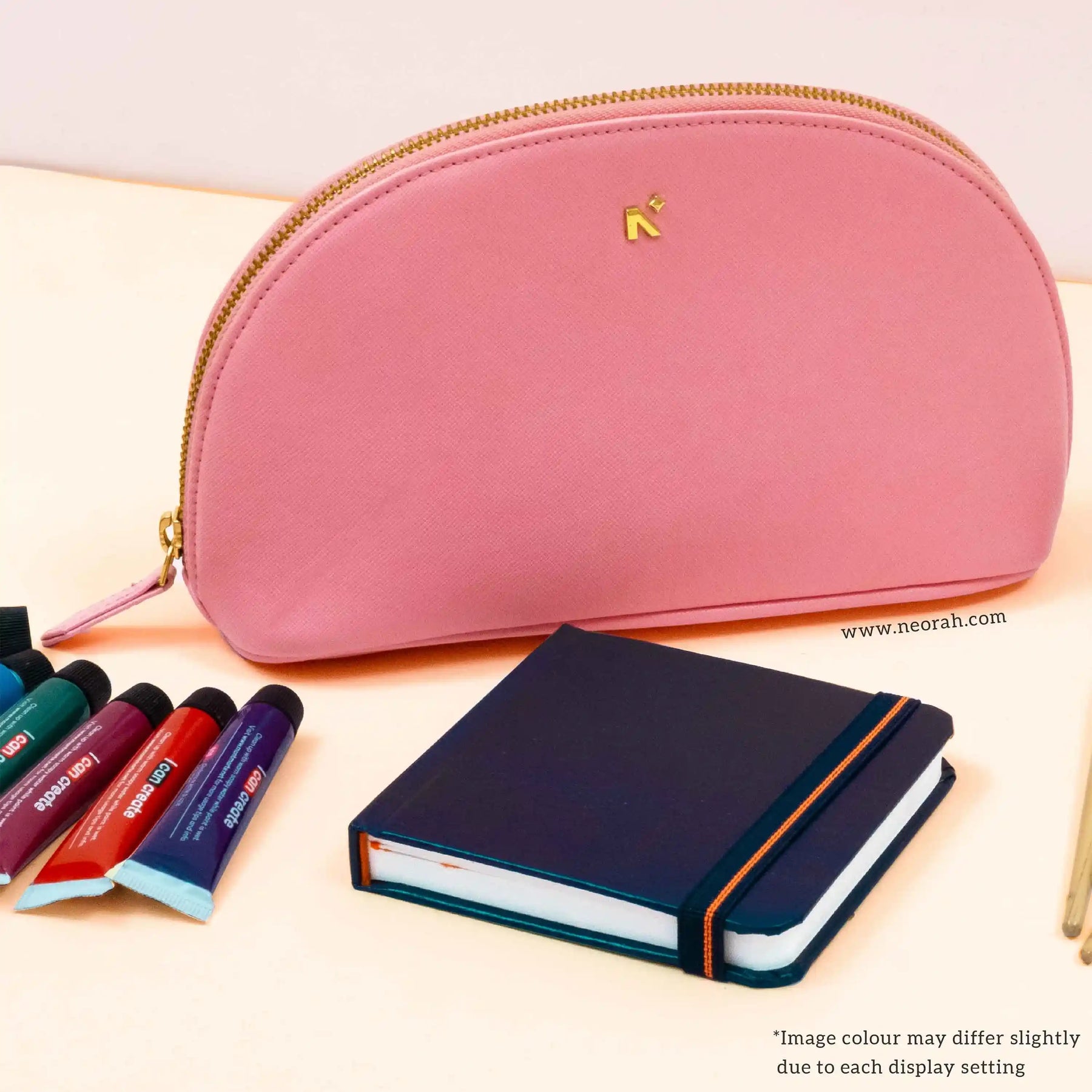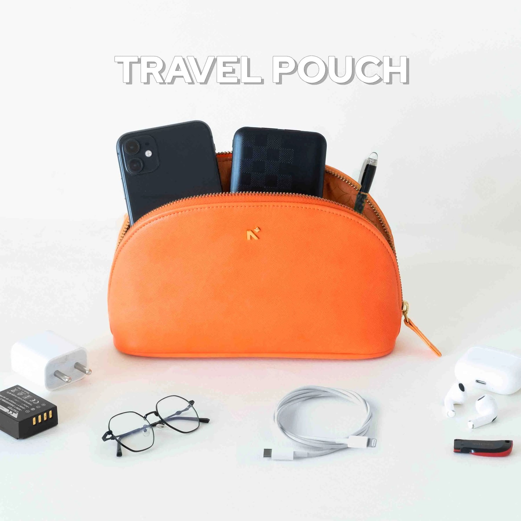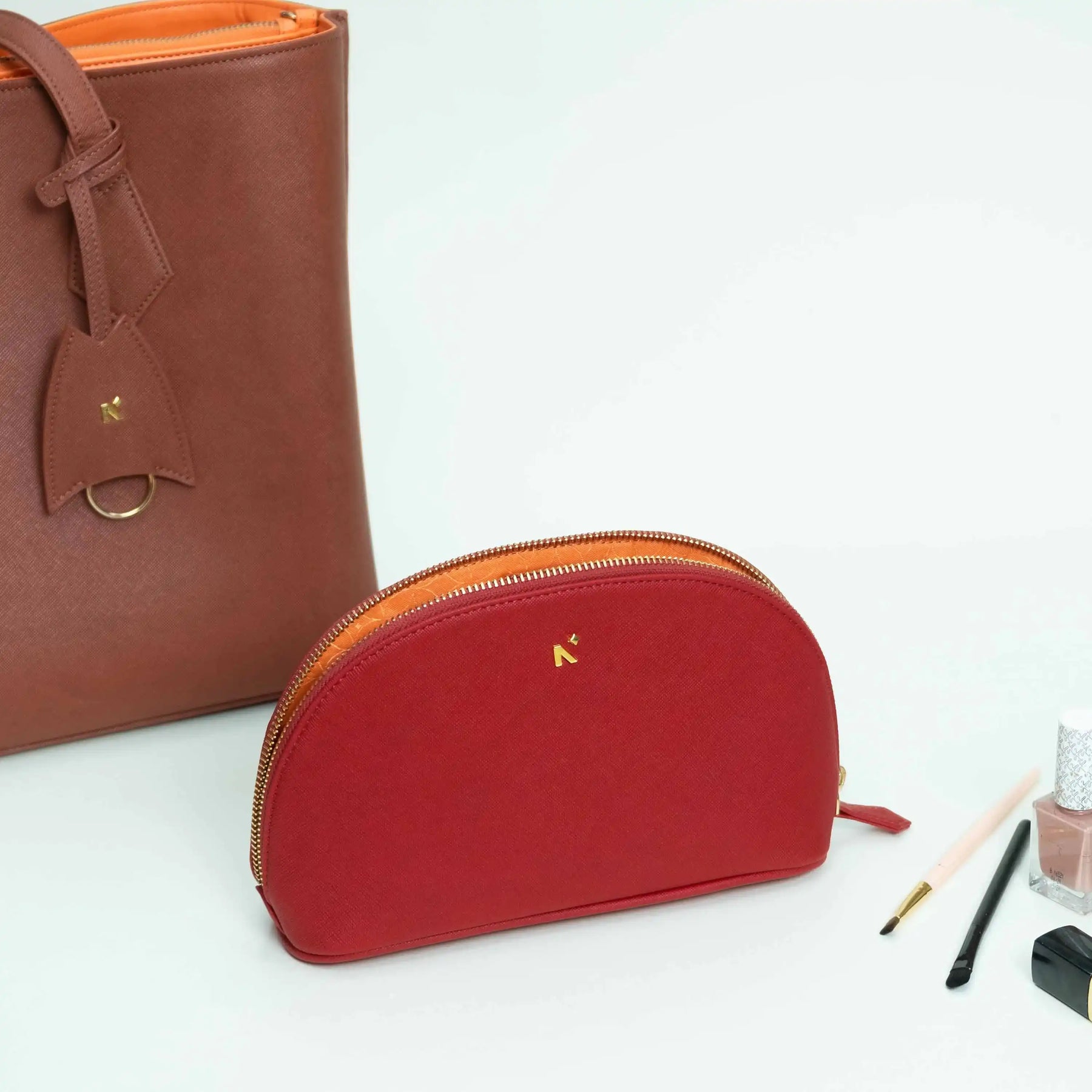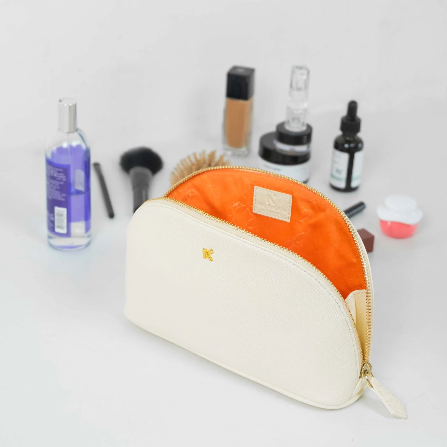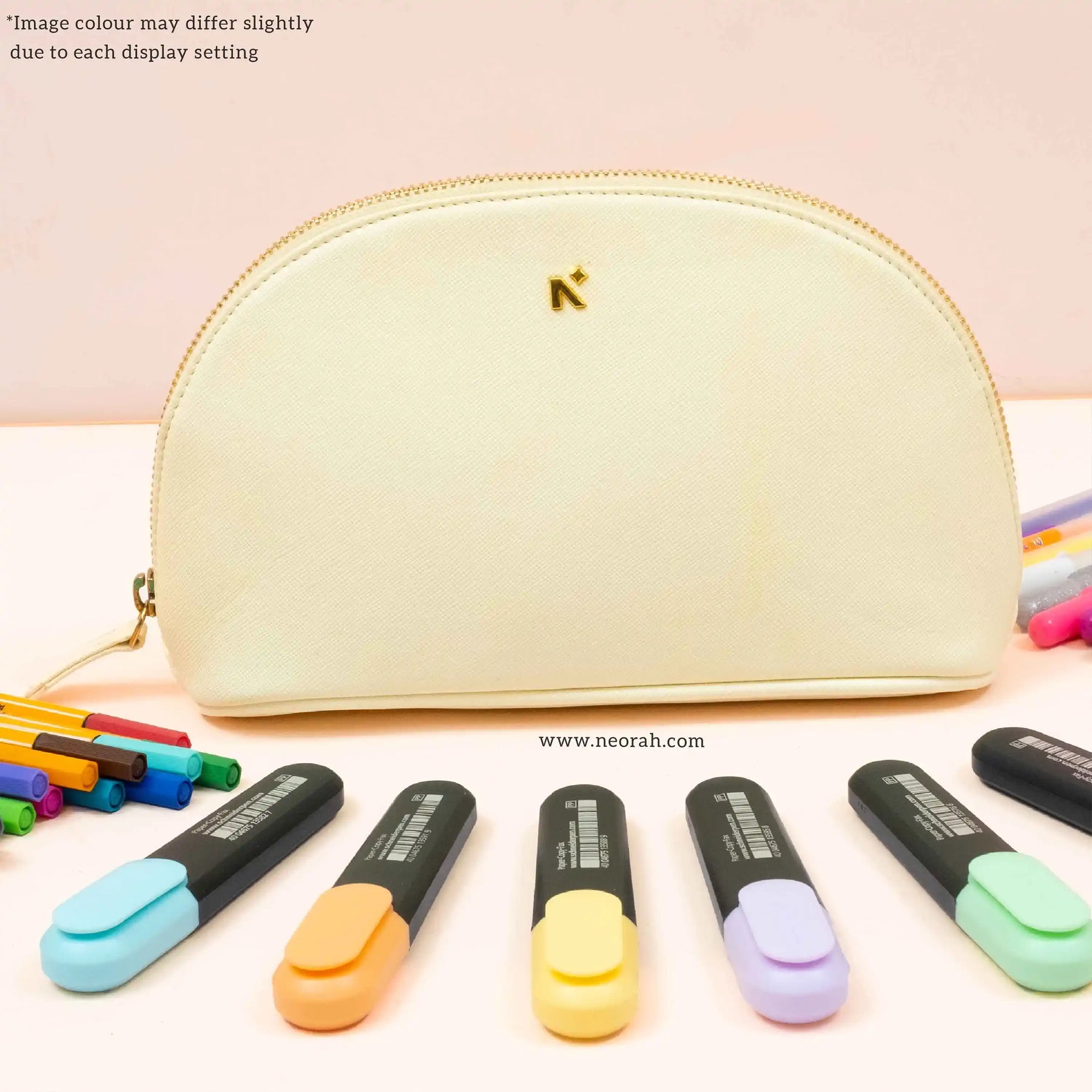 [IDEAL PORTABLE CASE] The stylishly compact half-moon pouchette makes it easy to slip in your handbags, totes, travel bags and pack in suitcases. Durable, Lightweight, Waterproof with highest standard workmanship.