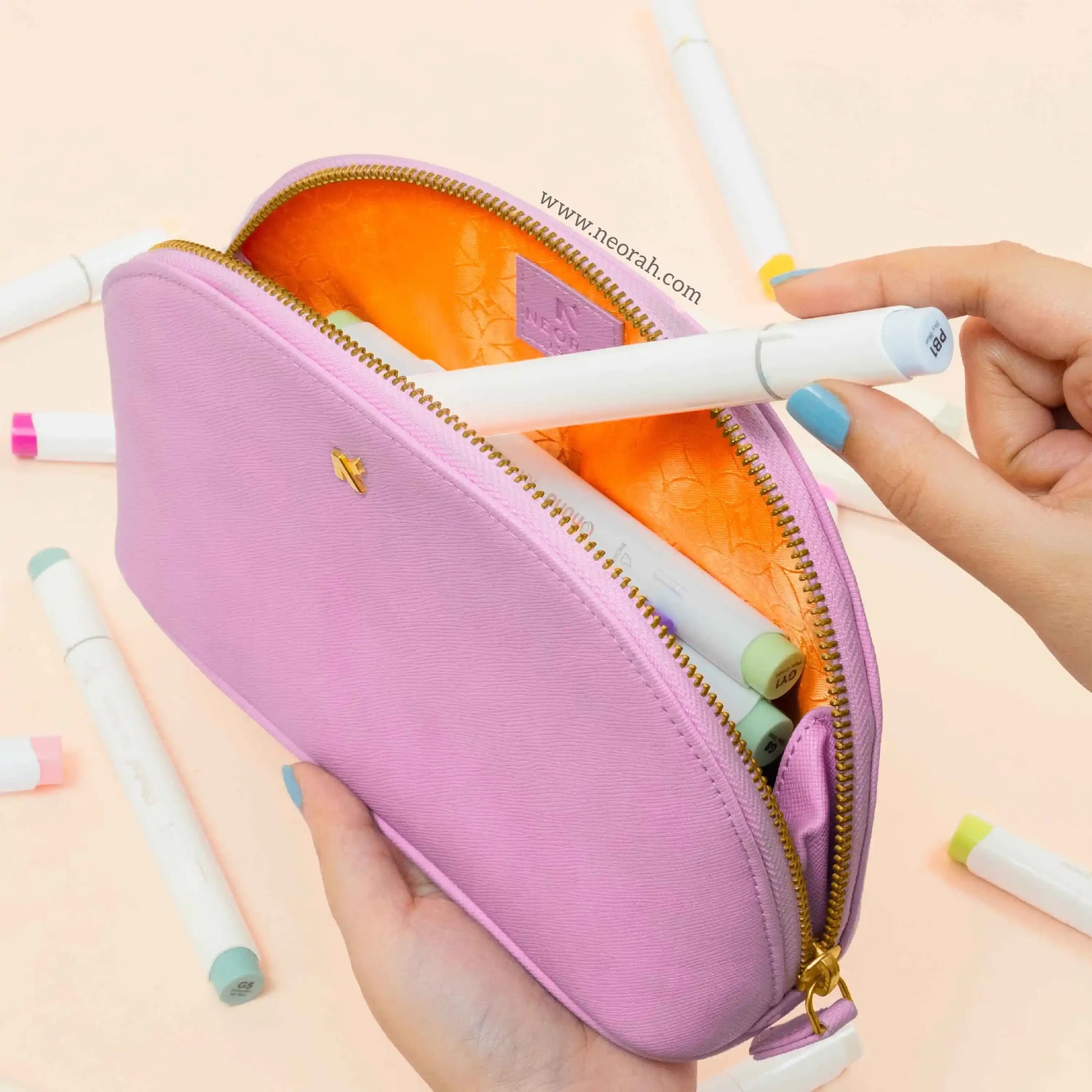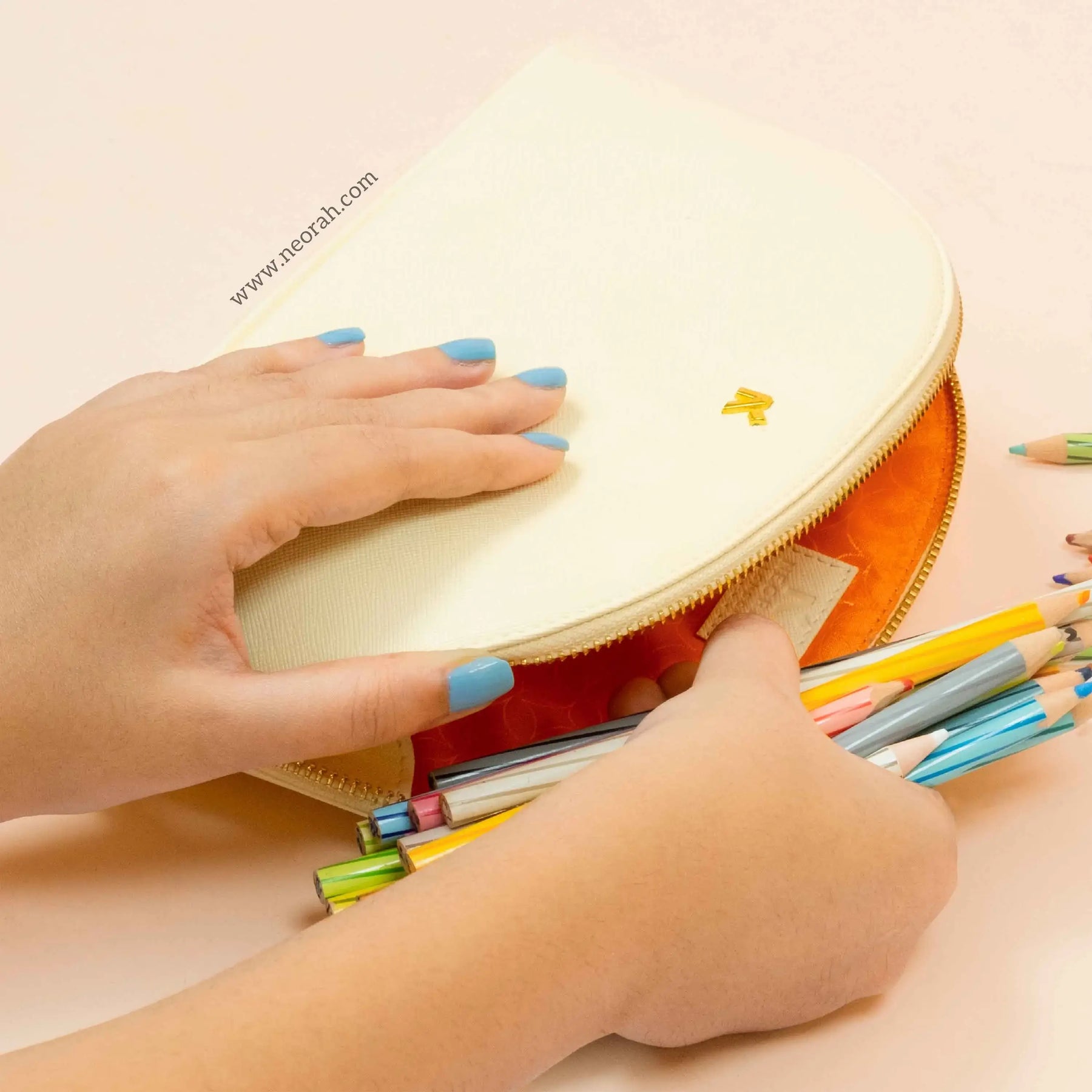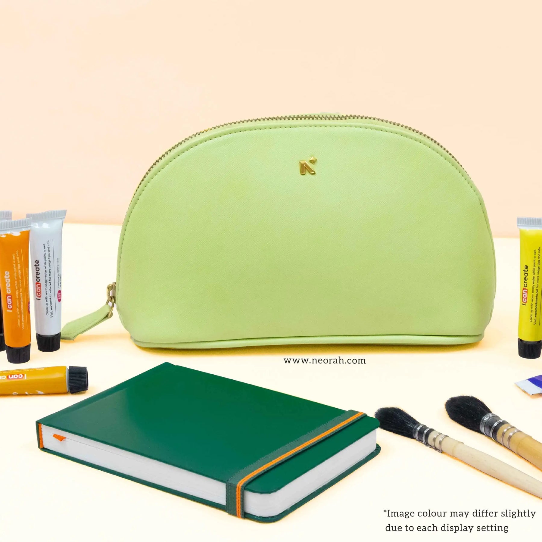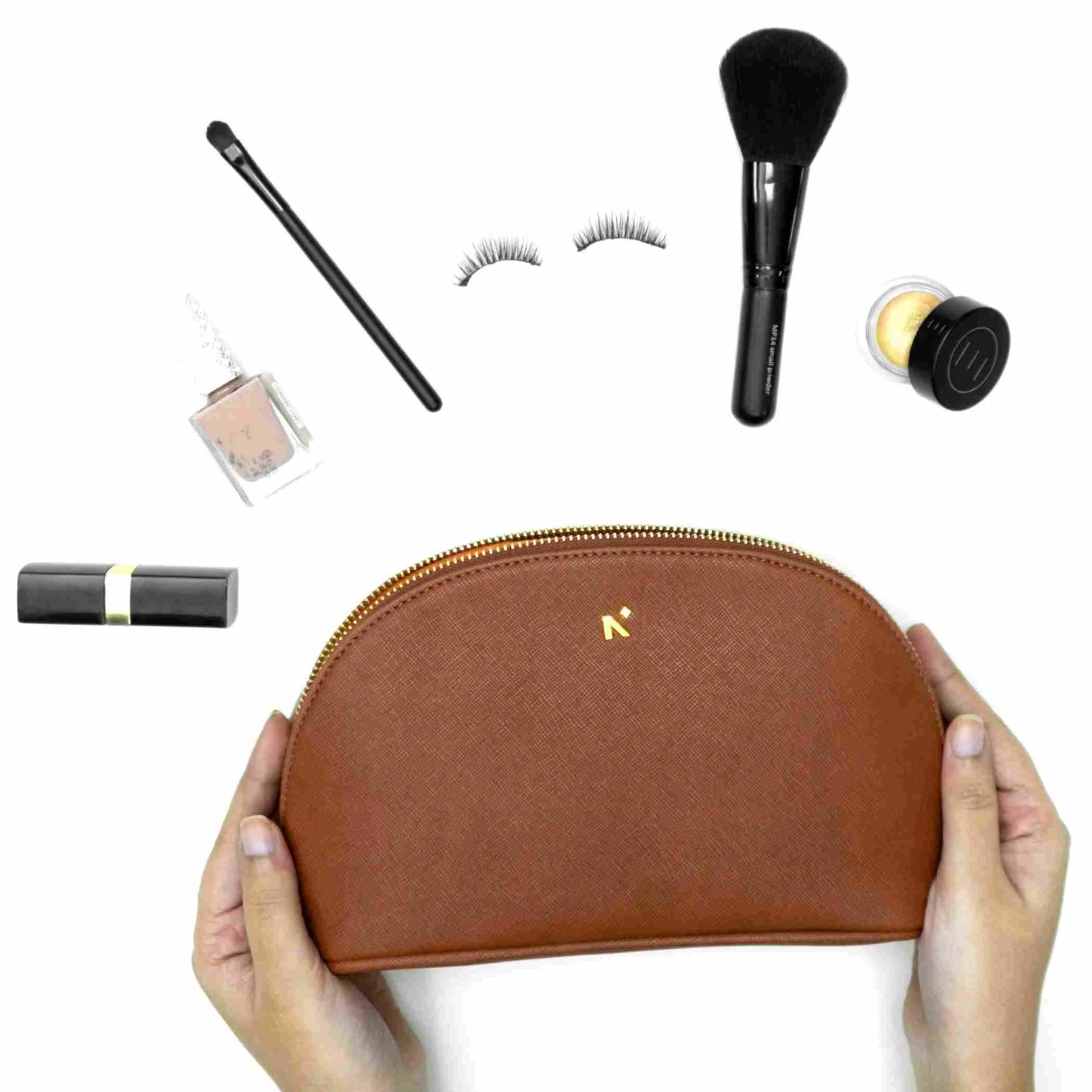 [IDEAL PORTABLE CASE] The stylishly compact half-moon pouchette makes it easy to slip in your handbags, totes, travel bags and pack in suitcases. Durable, Lightweight, Waterproof with highest standard workmanship.