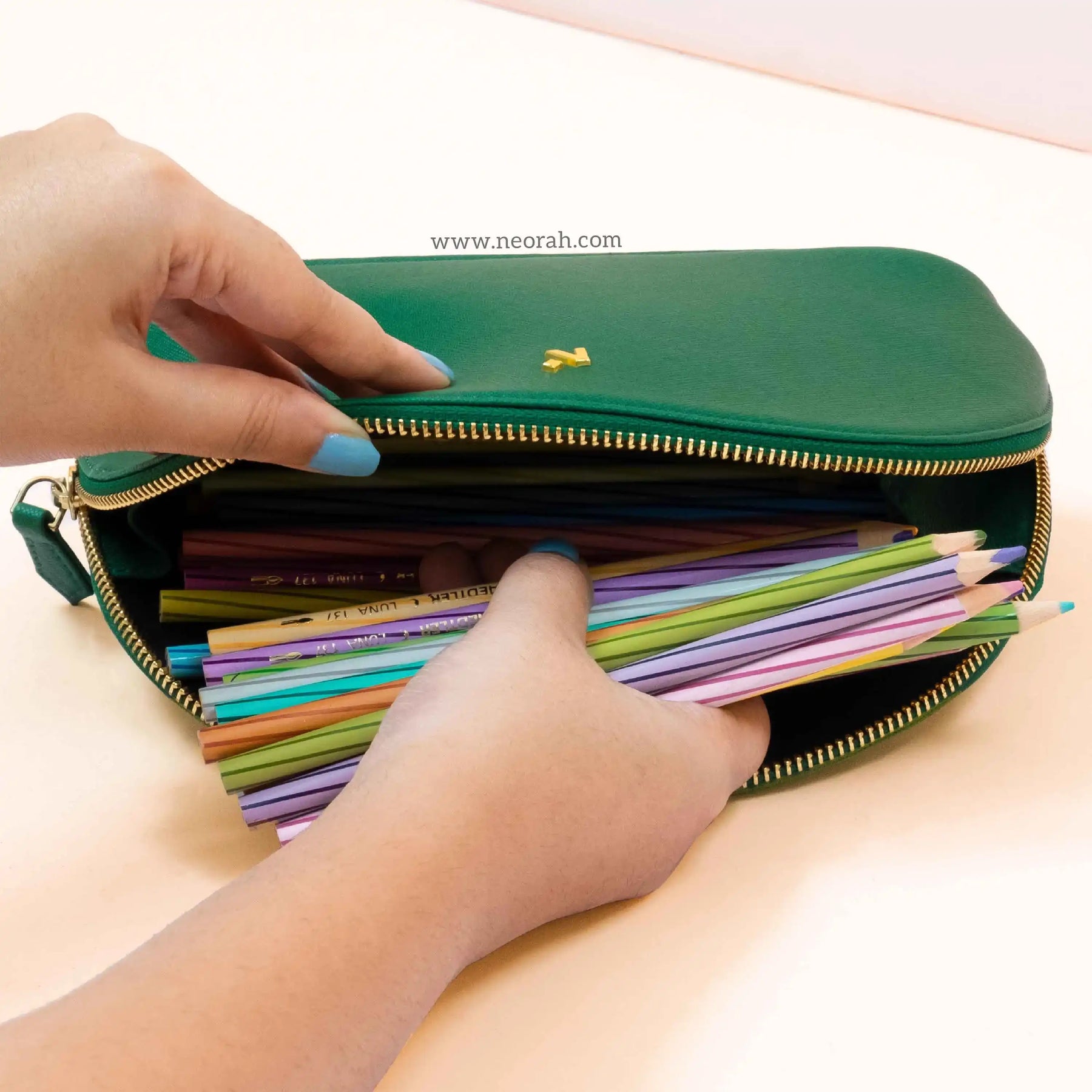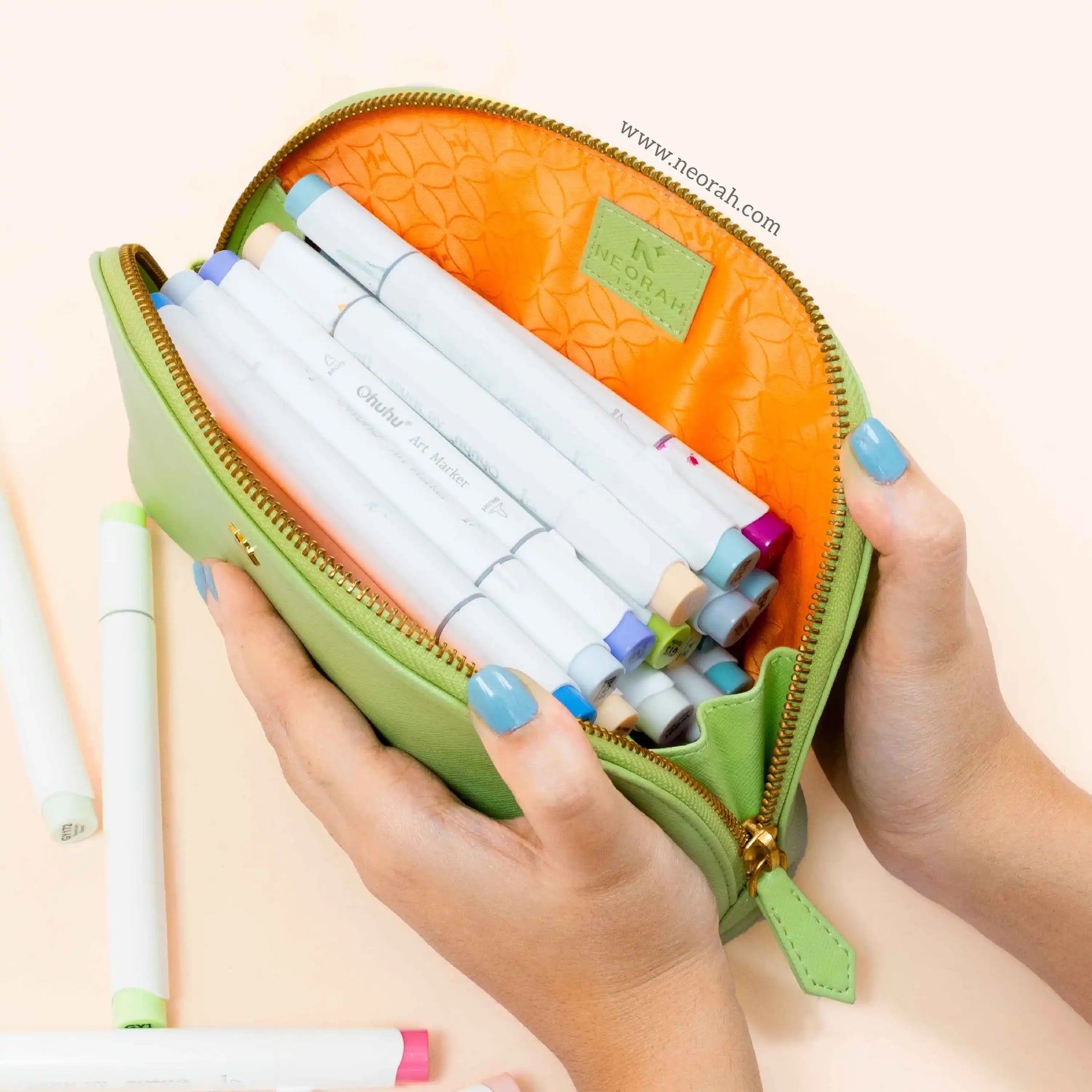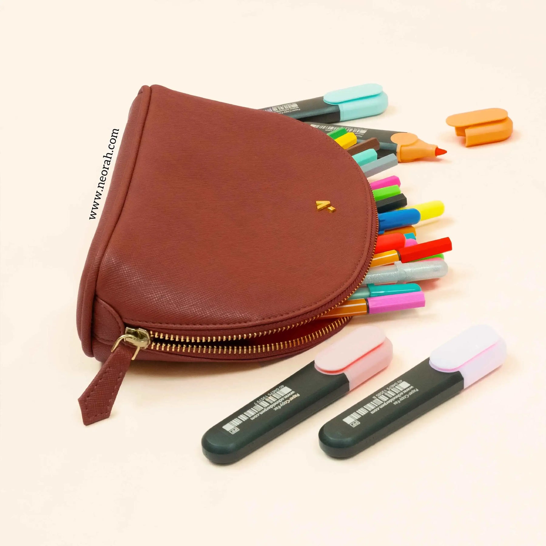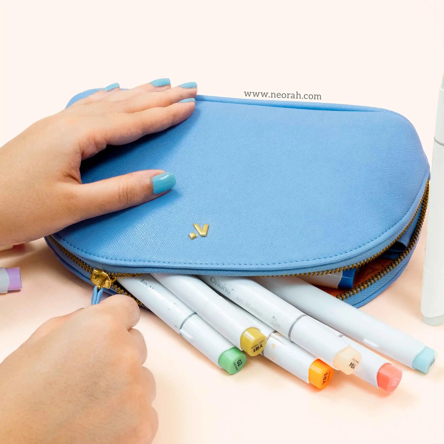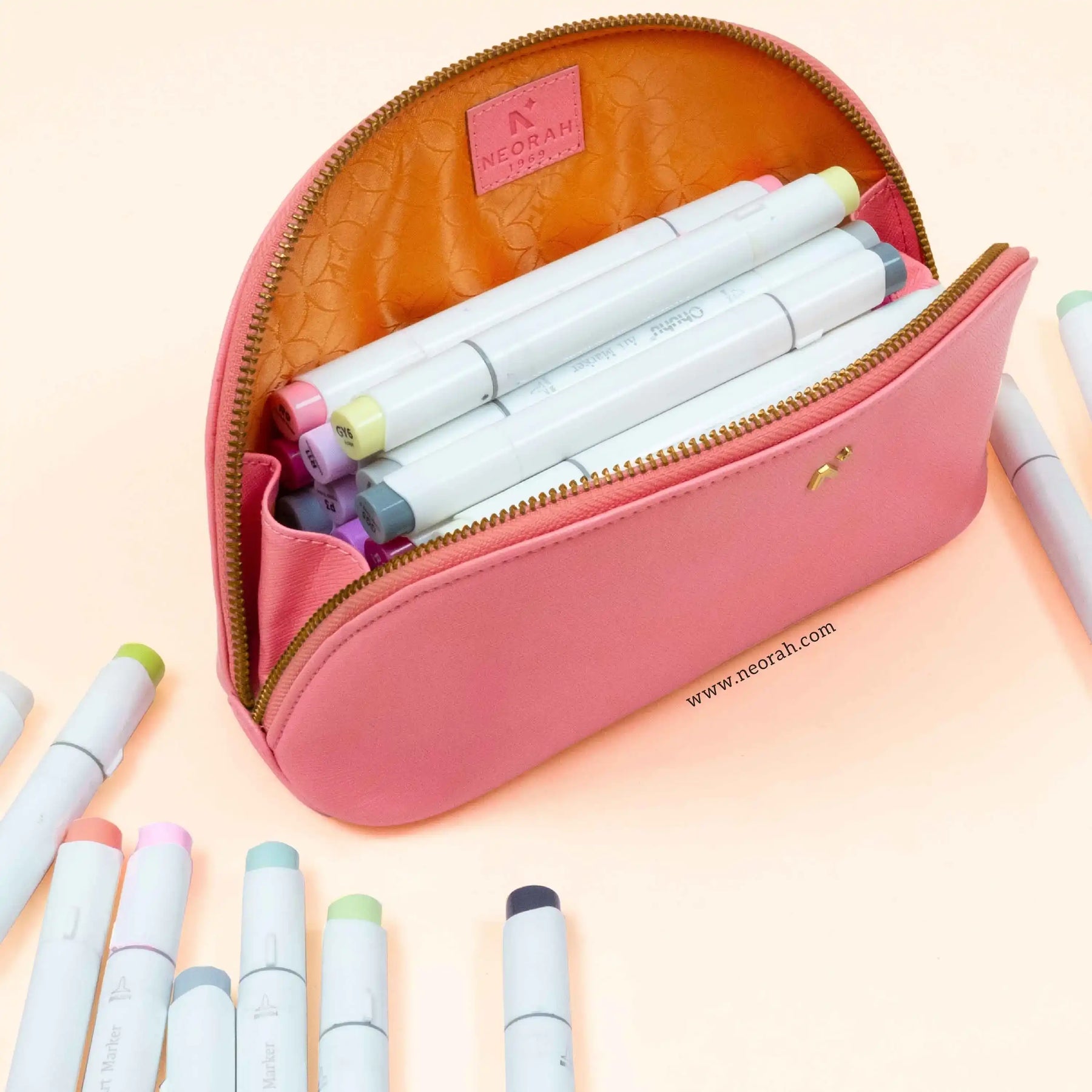 [IDEAL PORTABLE CASE] The stylishly compact half-moon pouchette makes it easy to slip in your handbags, totes, travel bags and pack in suitcases. Durable, Lightweight, Waterproof with highest standard workmanship.