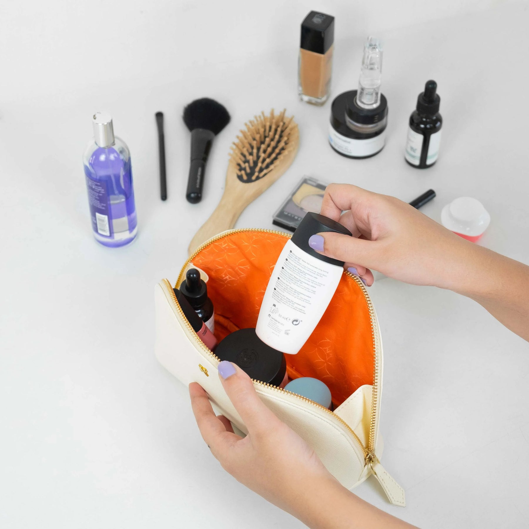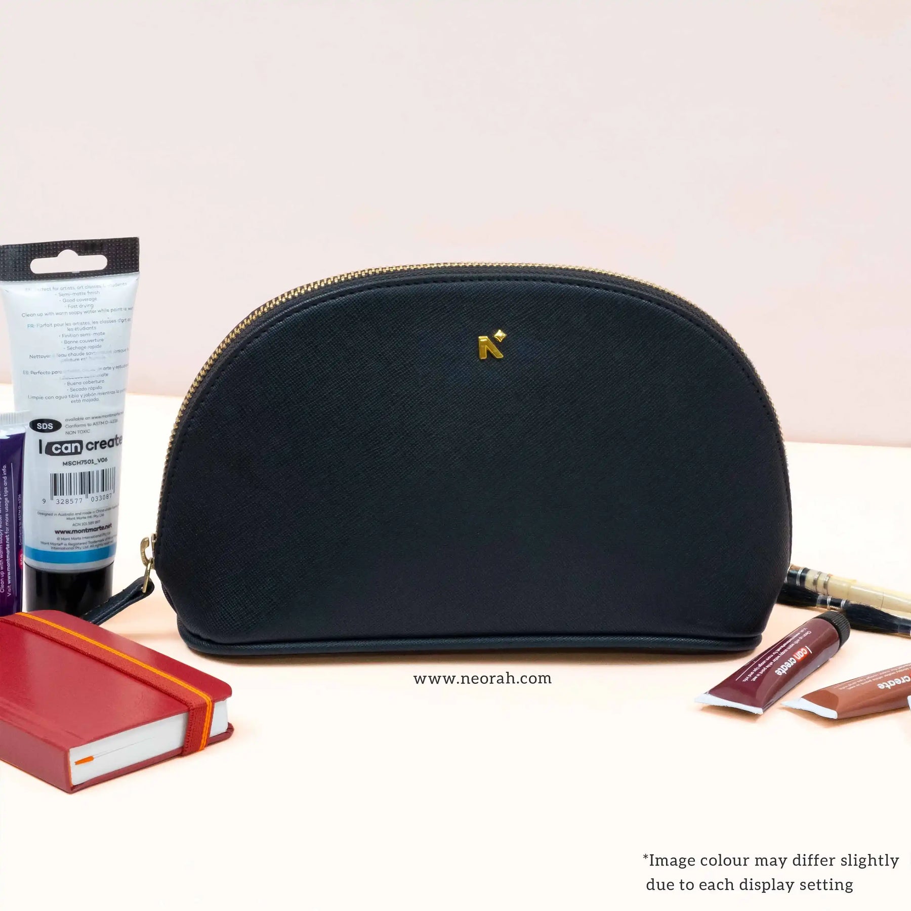 Neorah cosmetic pouch for travel, Best Makeup Bag, Designer makeup pouches to carry everyday makeup skincare and essentials for travel. #color_black
