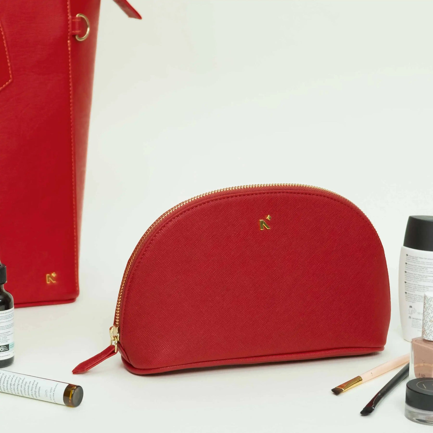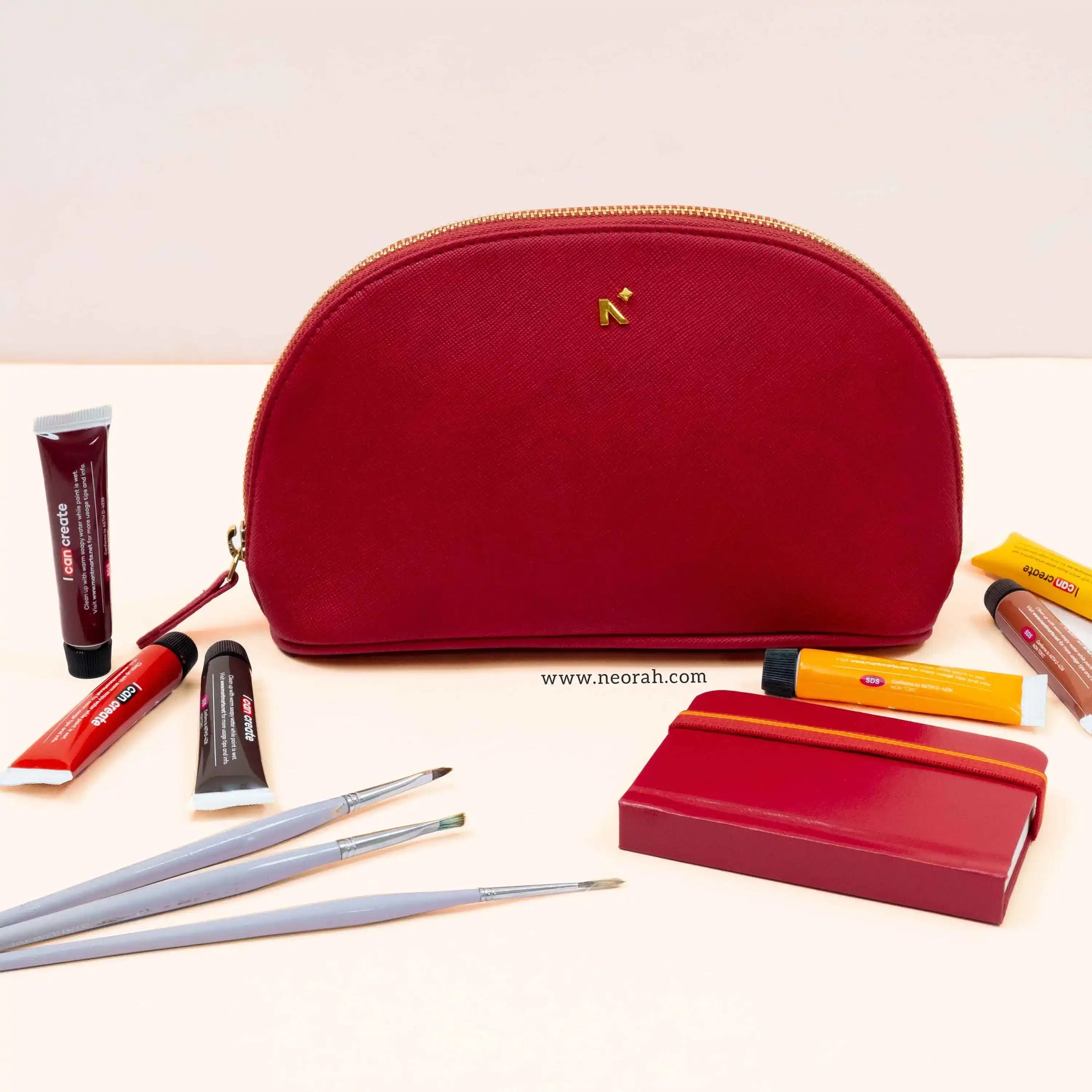 Neorah travel makeup pouch, small makeup pouch, toiletry Bag utility Pouch for travel to store your makeup products, Easy to slip into handbags, totes, suitcase, ideal for everyday use.#color_red