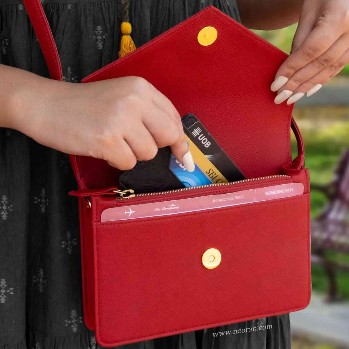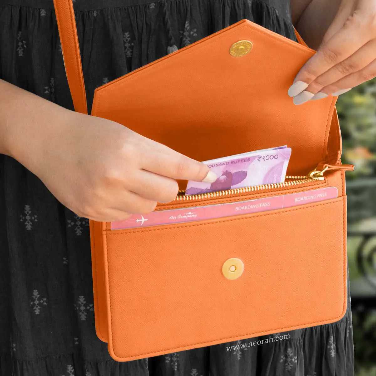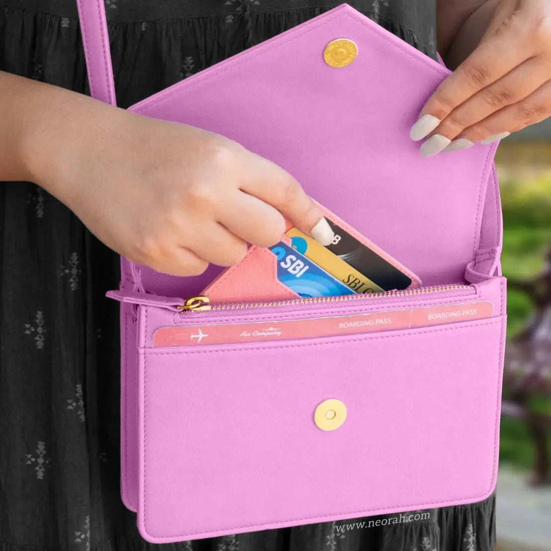 NEORAH ENVELOPE SLING BAG Dimensions: Length 19.8 Cm x Width 4 Cm x Height 15.5 cm [NEORAH ENVELOPE SLING BAG] This exquisite envelope sling bag for women is a must have to spruce up your outfits and keep your essentials organised. Look trendy and stylish every time you step out with this sling bag and enjoy all the attention.