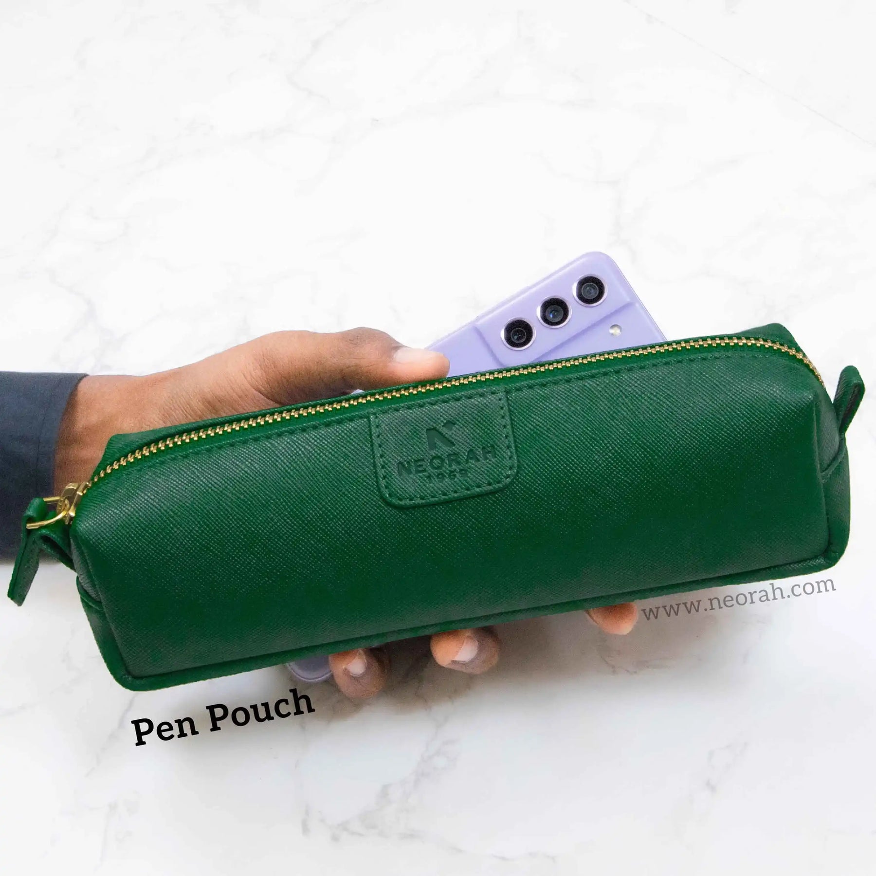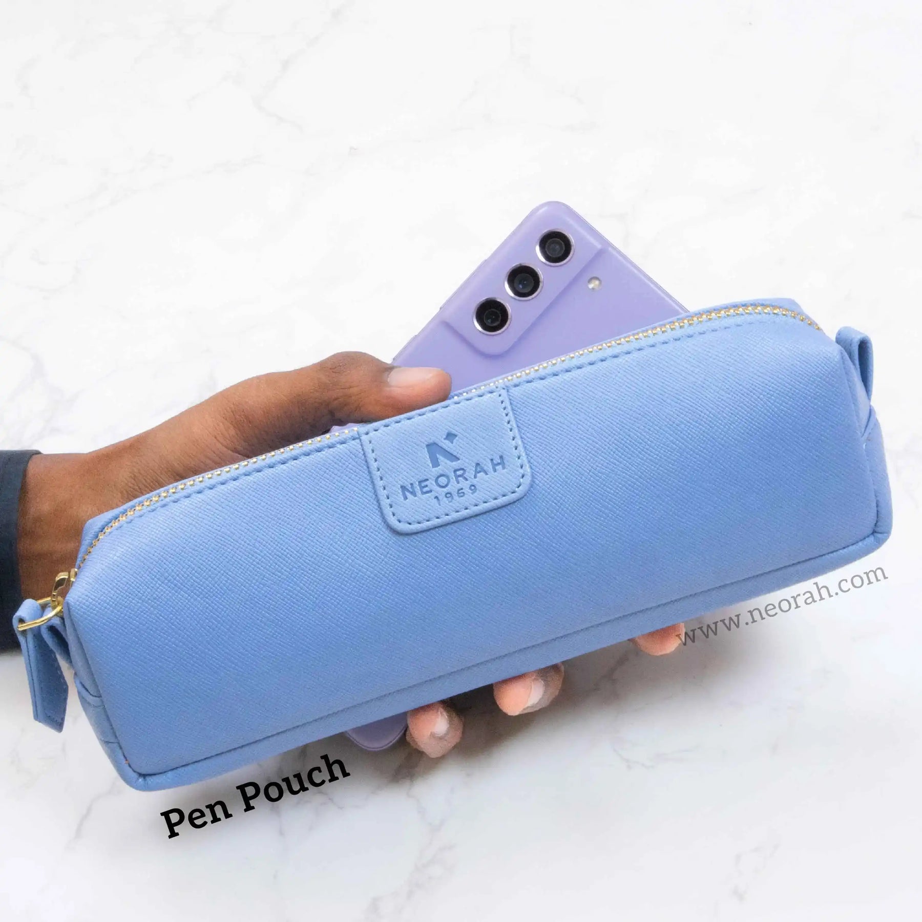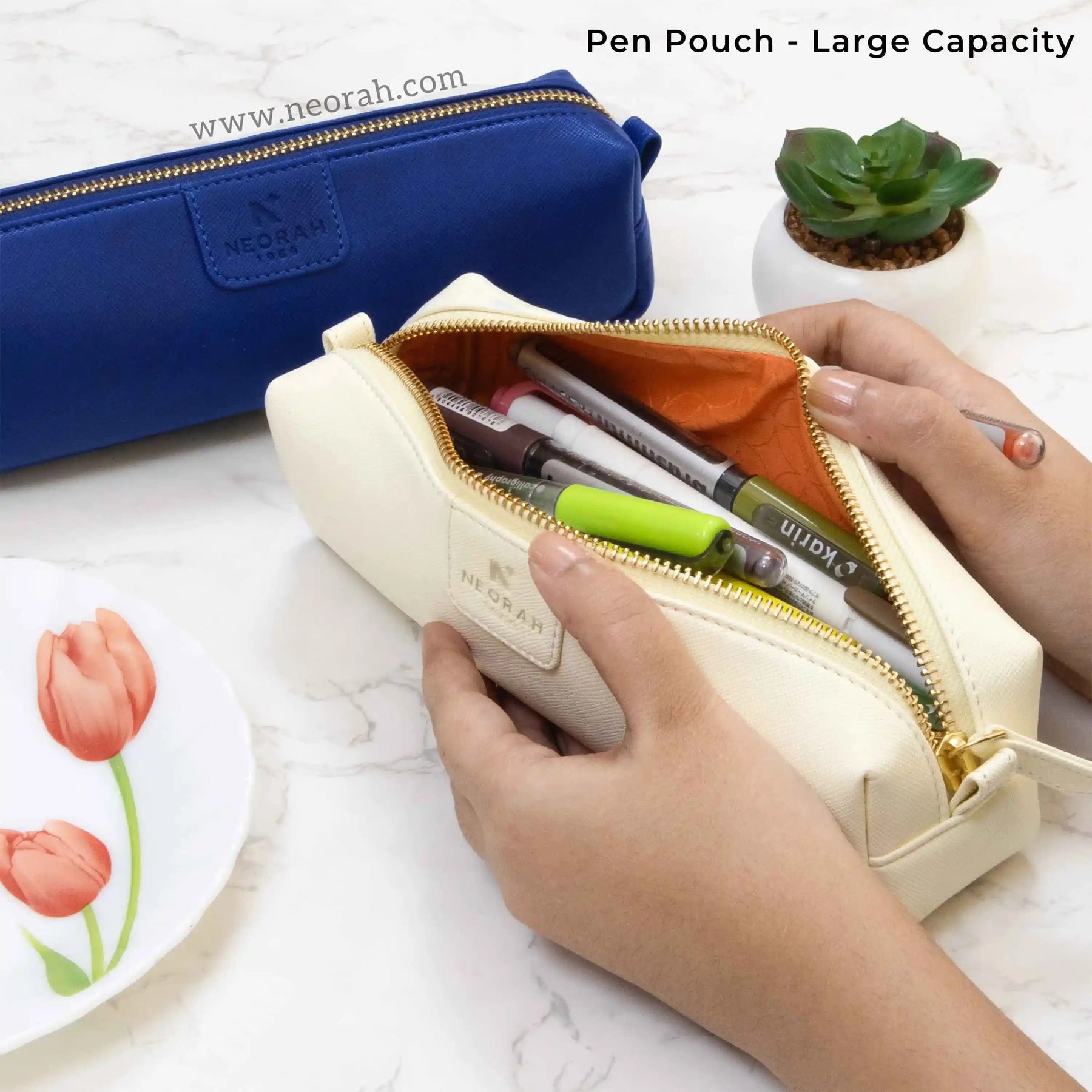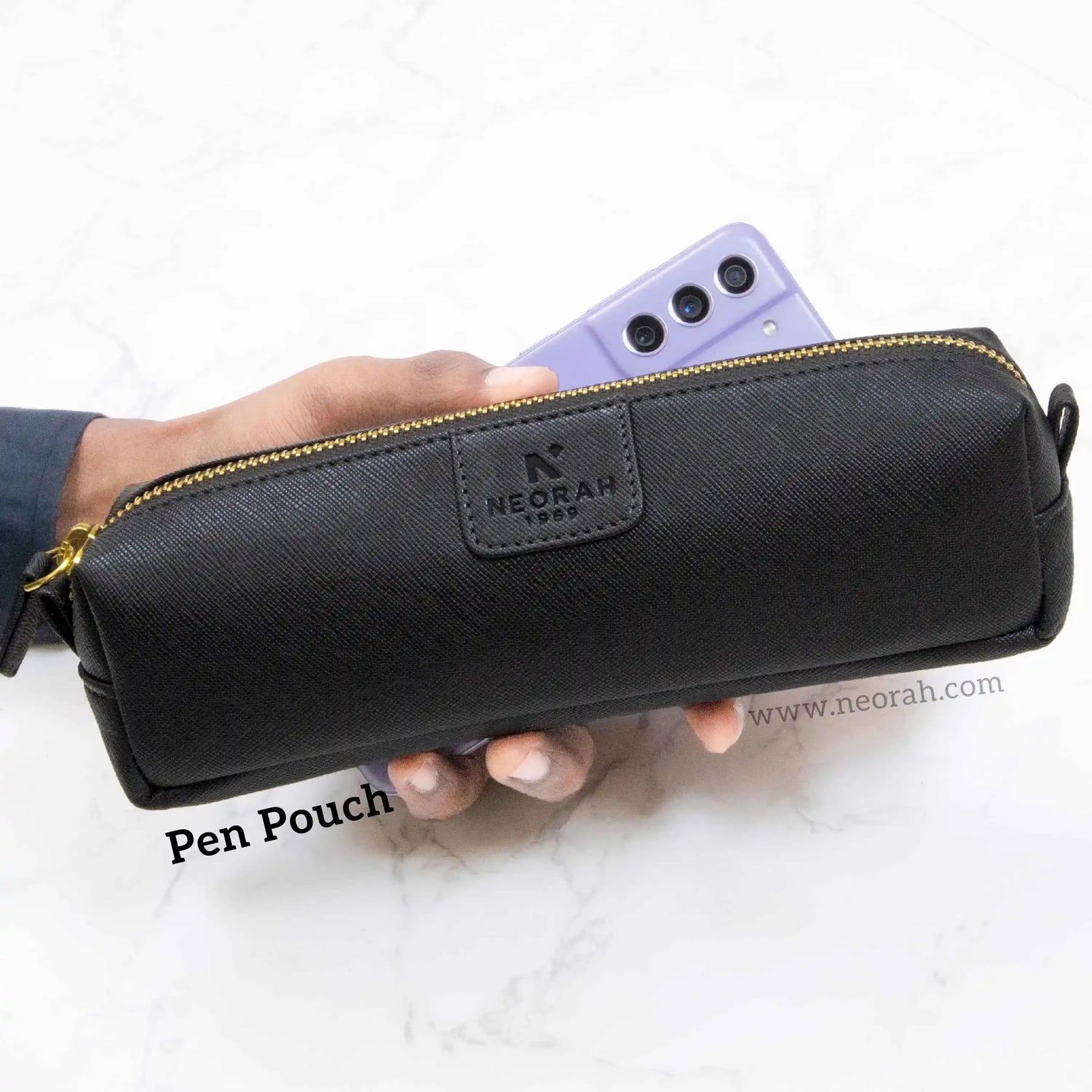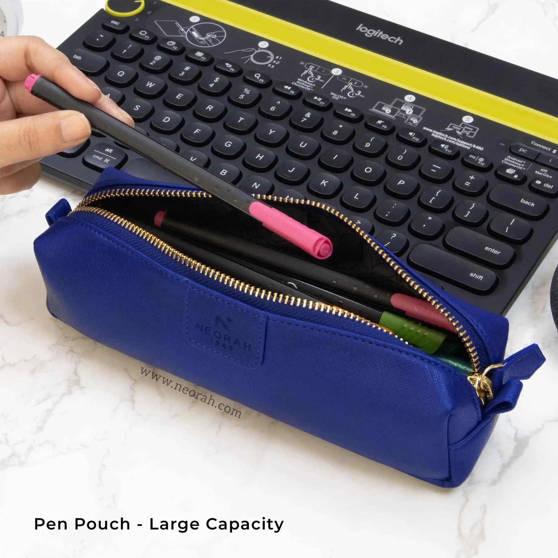Meet your new favourite writing sidekick- our premium pen pouch. Crafted with a blend of style and functionality, this pouch is designed to keep your favorite writing instruments secure, organized, and readily accessible.