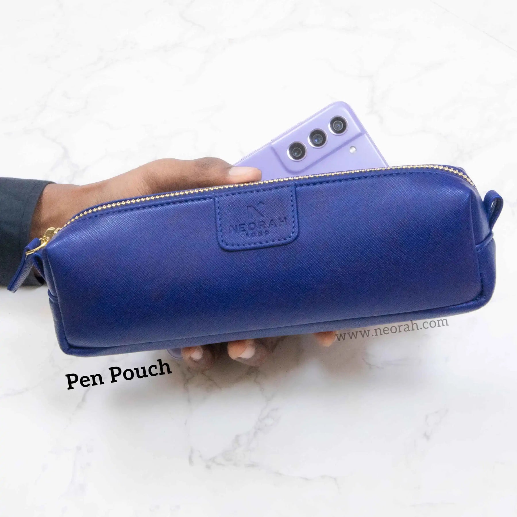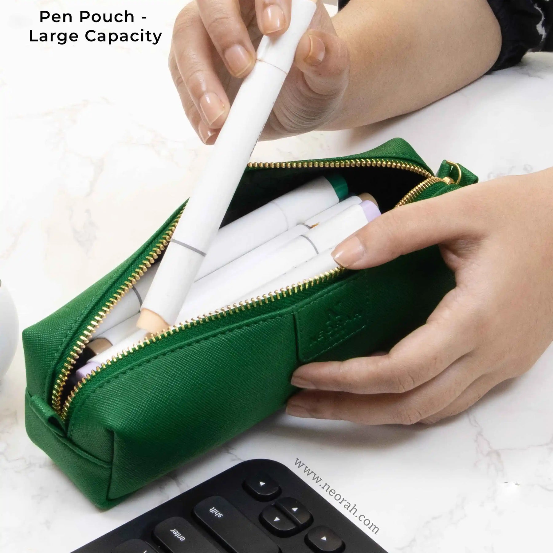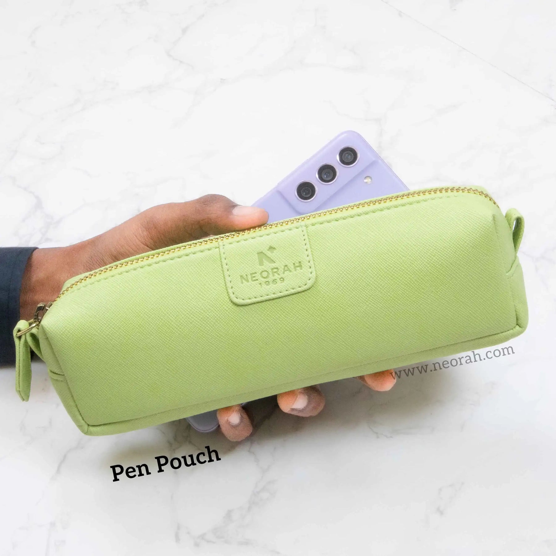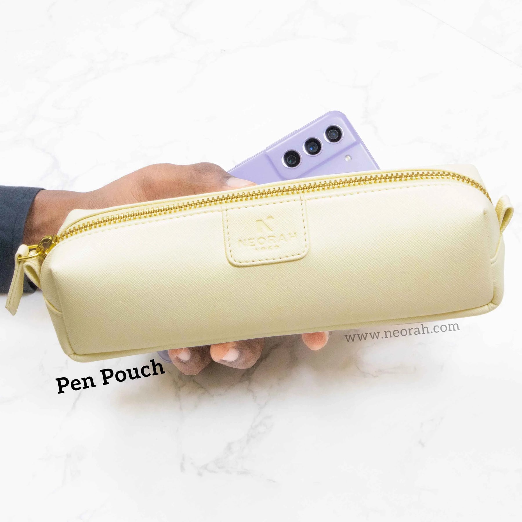 Meet your new favourite writing sidekick- our premium pen pouch. Crafted with a blend of style and functionality, this pouch is designed to keep your favorite writing instruments secure, organized, and readily accessible.