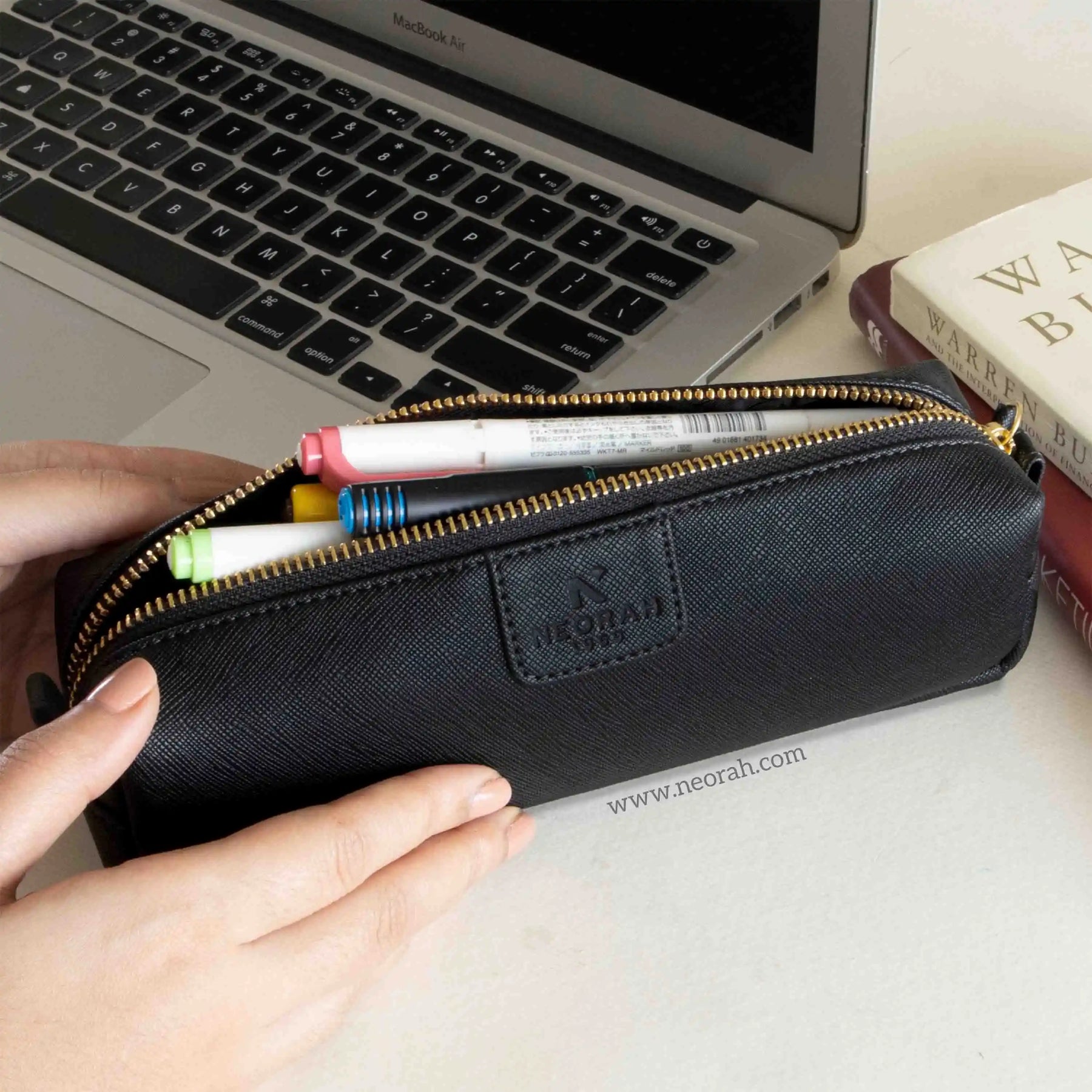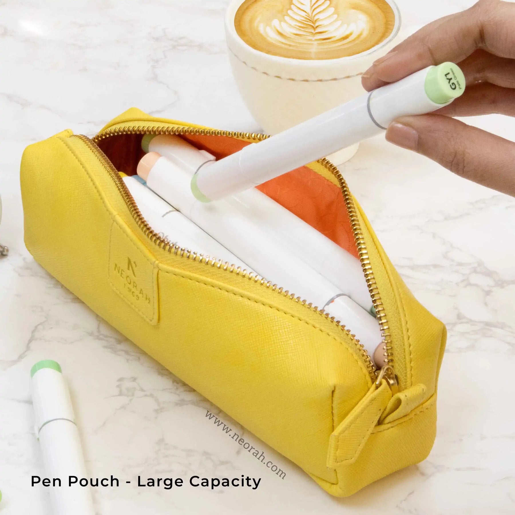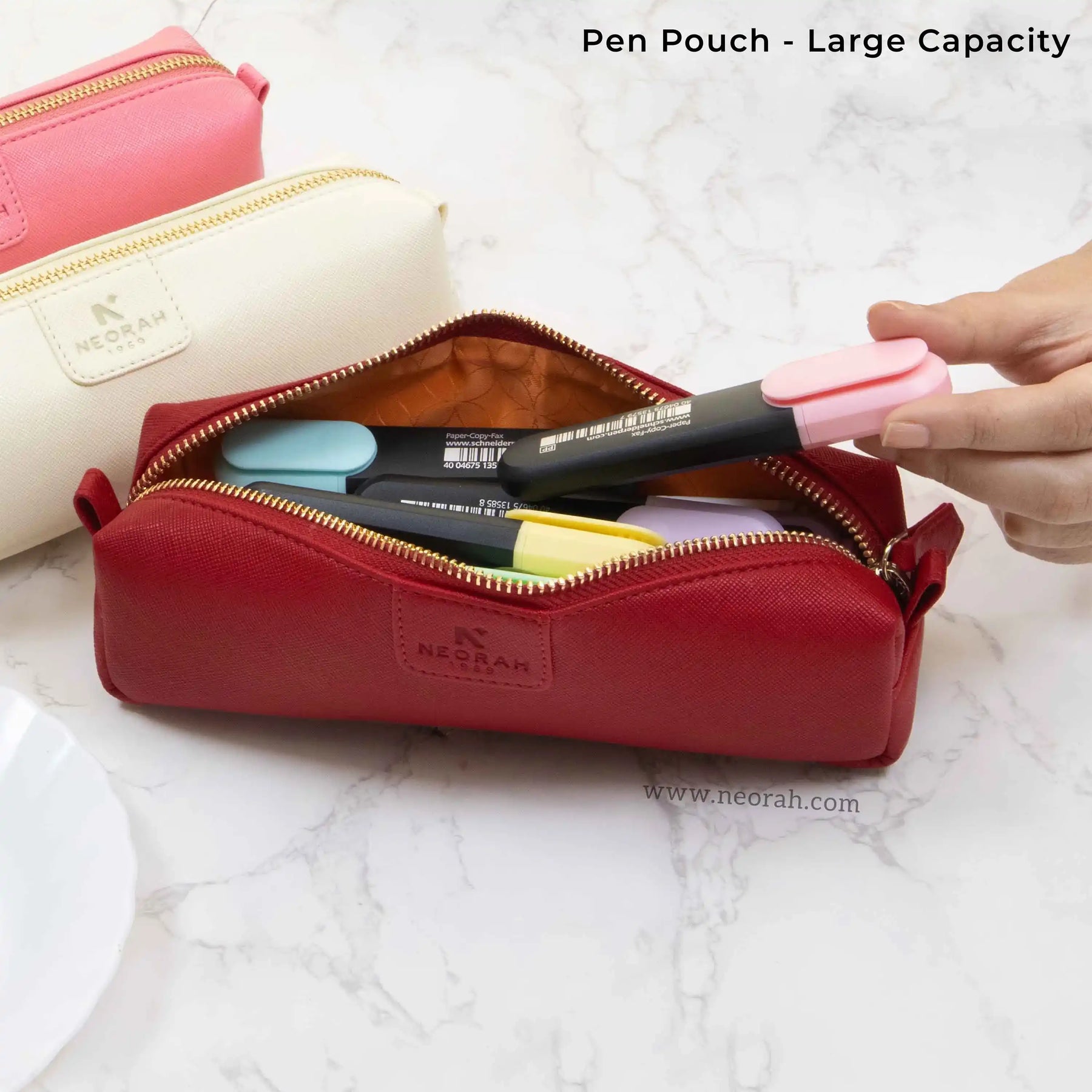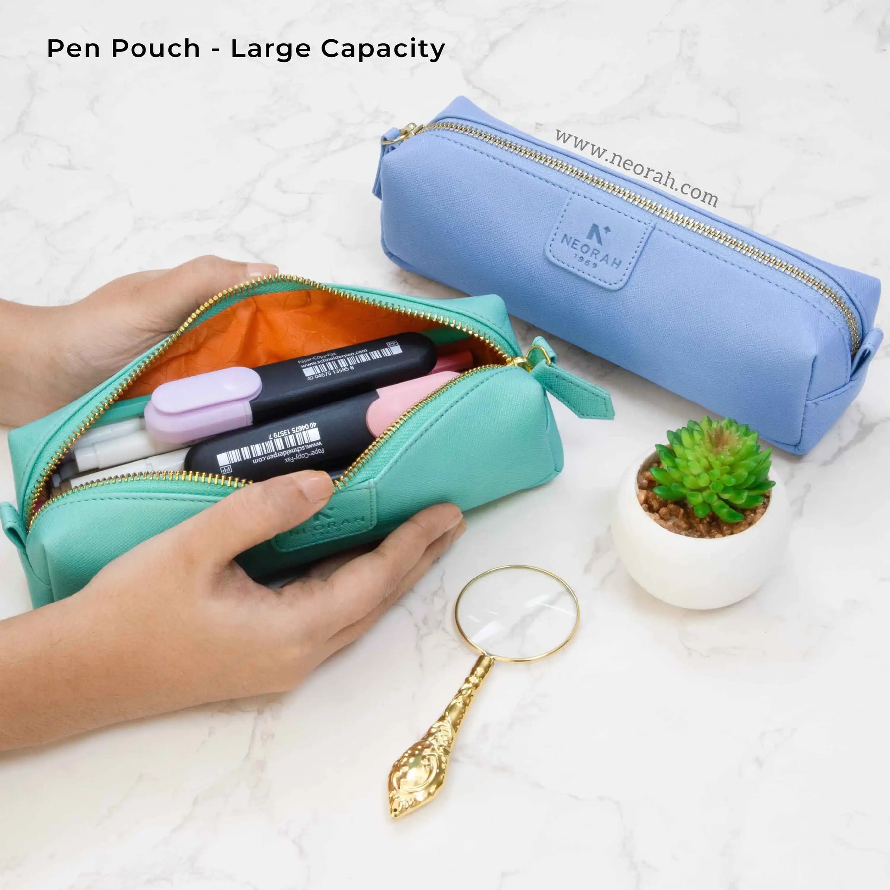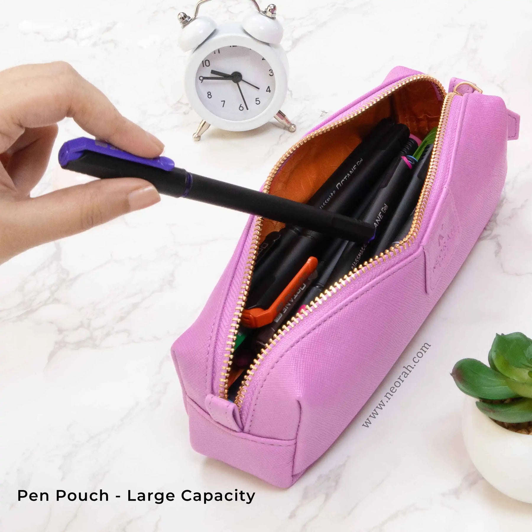 Meet your new favourite writing sidekick- our premium pen pouch. Crafted with a blend of style and functionality, this pouch is designed to keep your favorite writing instruments secure, organized, and readily accessible.