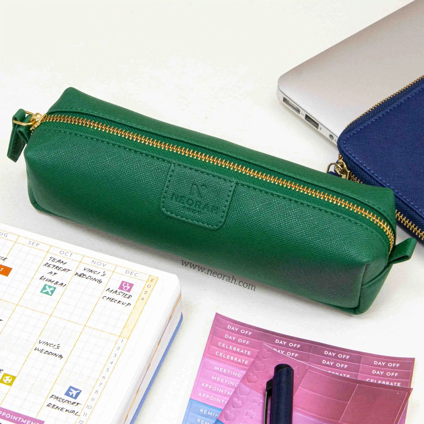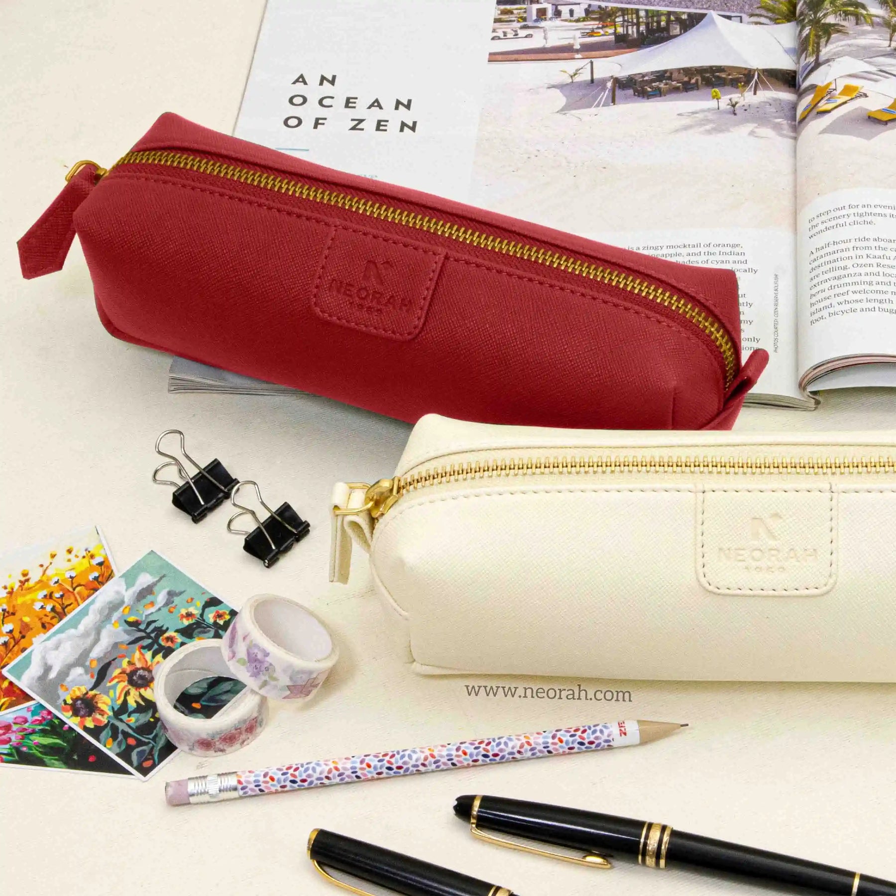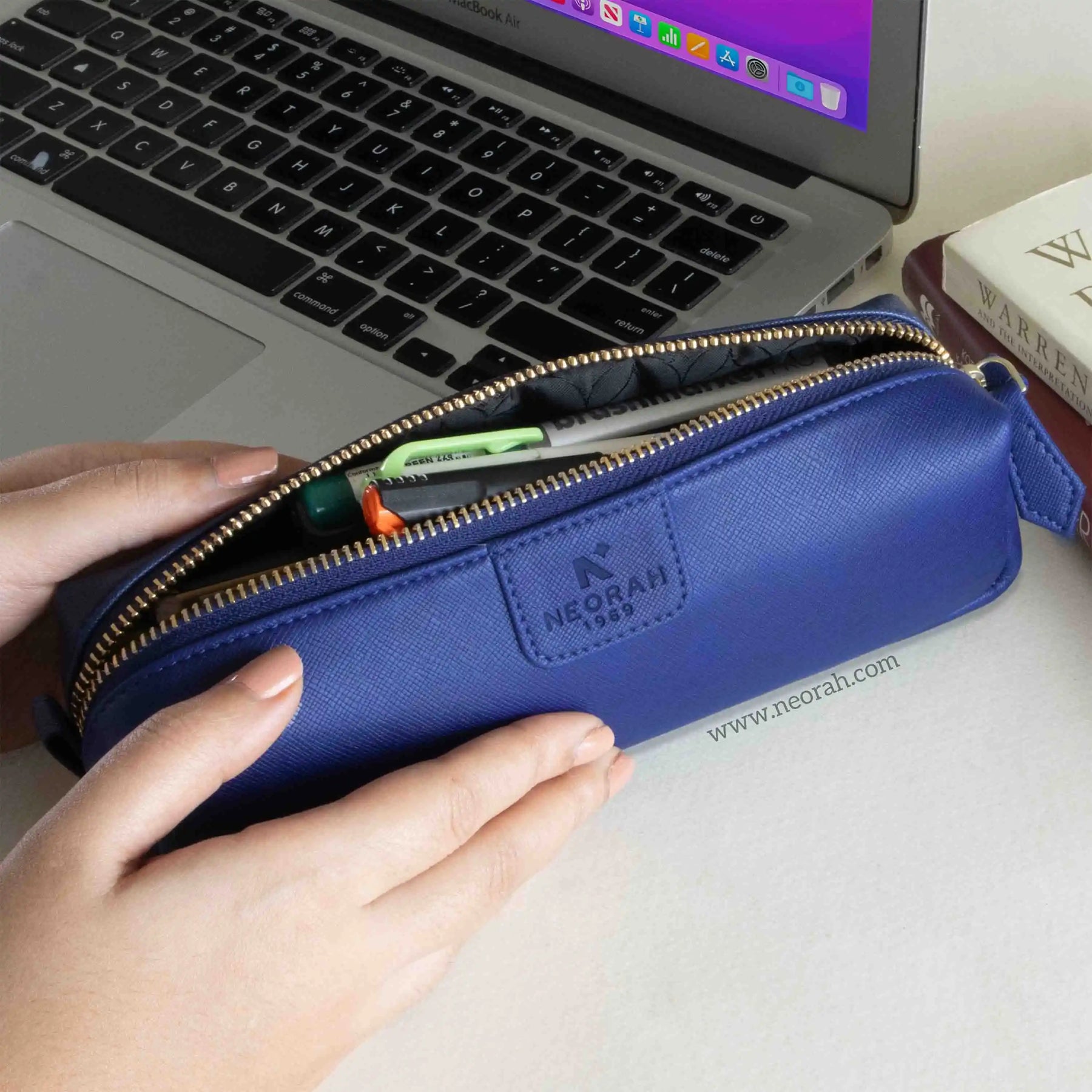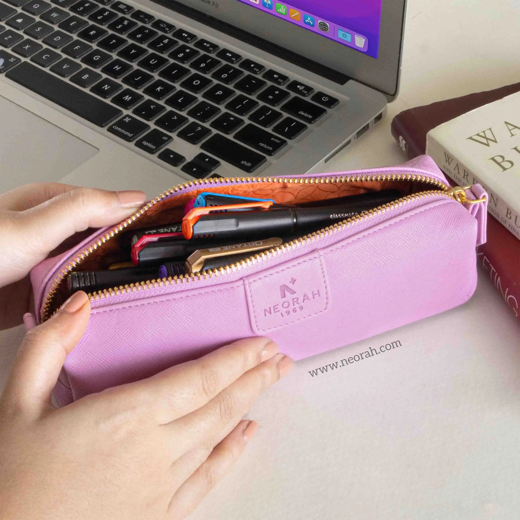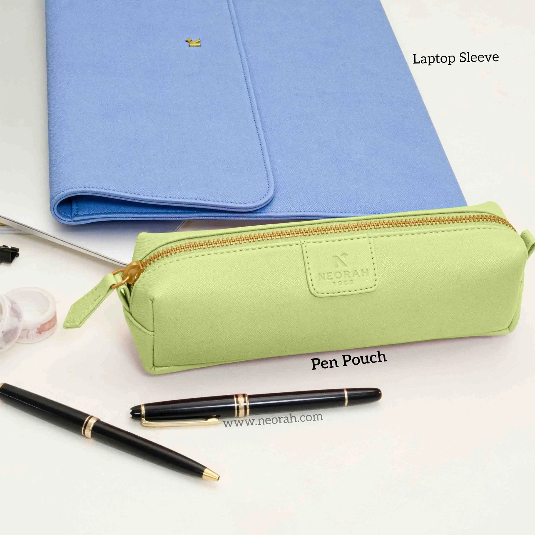 Meet your new favourite writing sidekick- our premium pen pouch. Crafted with a blend of style and functionality, this pouch is designed to keep your favorite writing instruments secure, organized, and readily accessible.