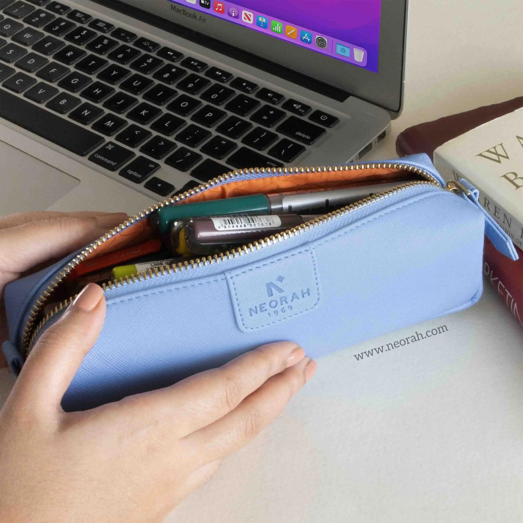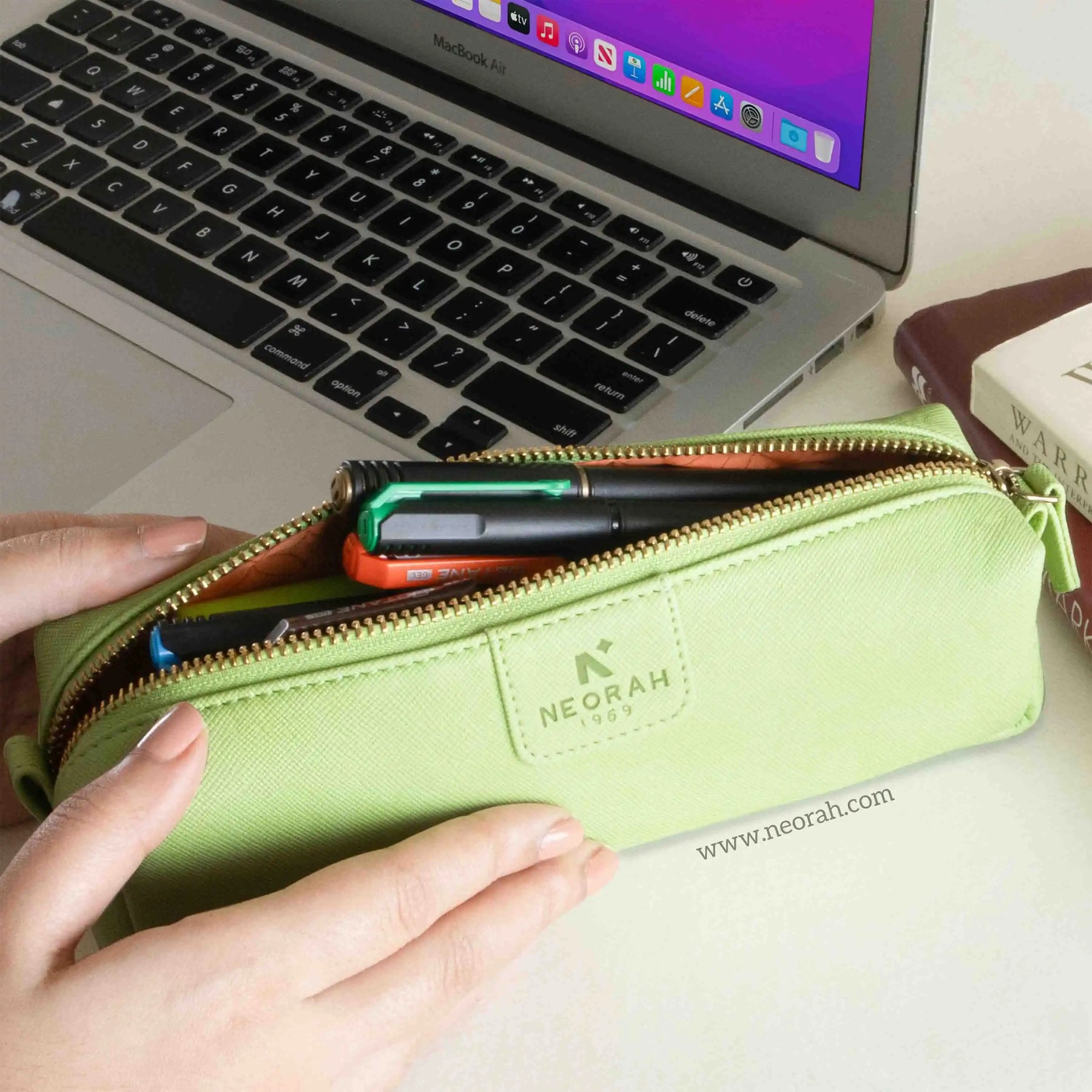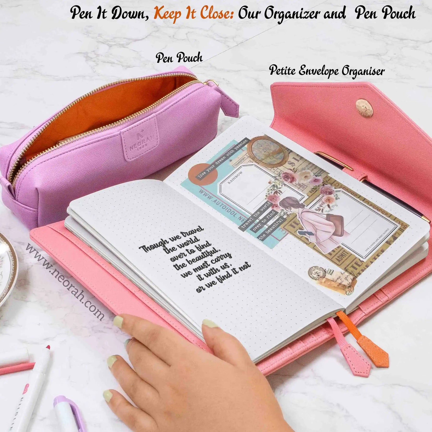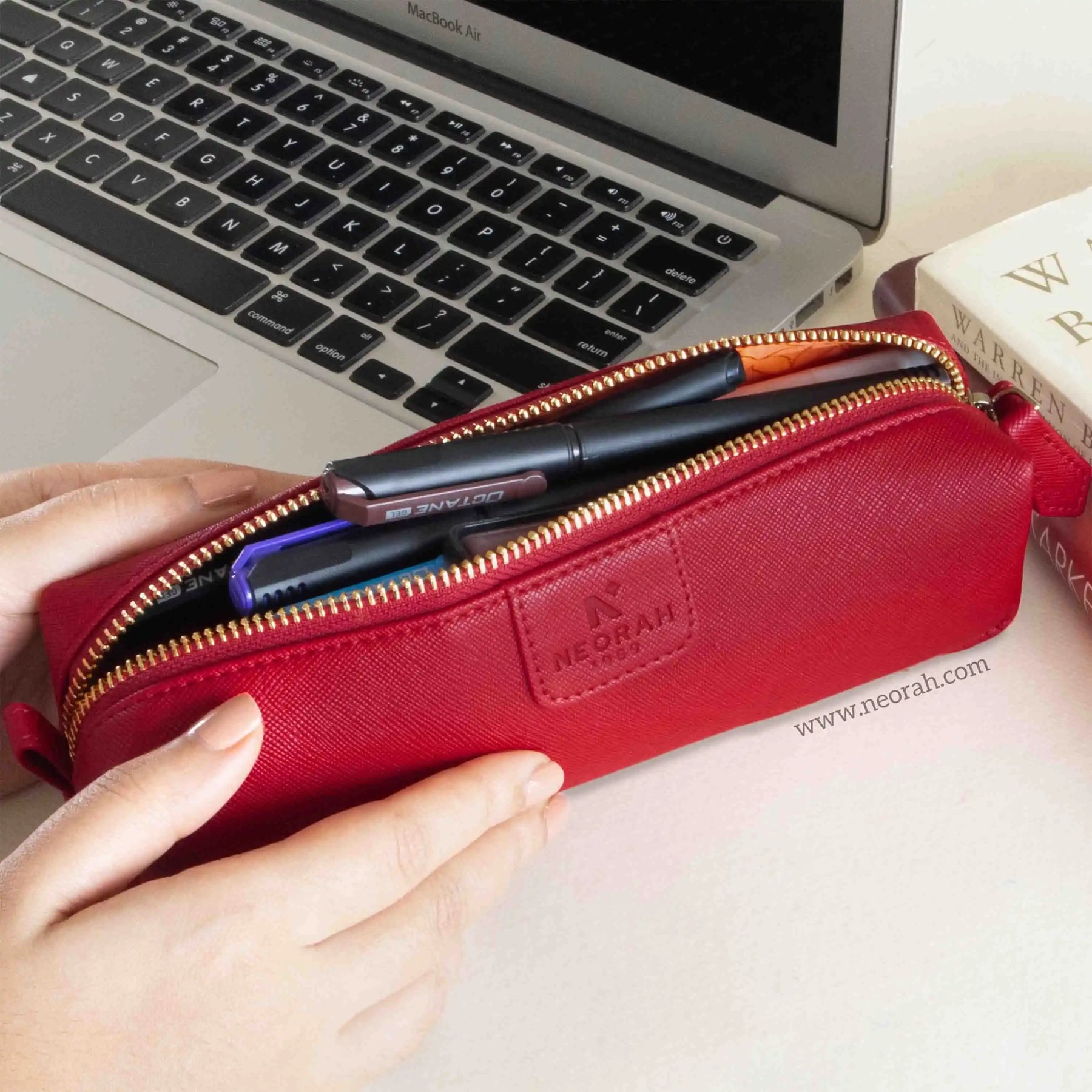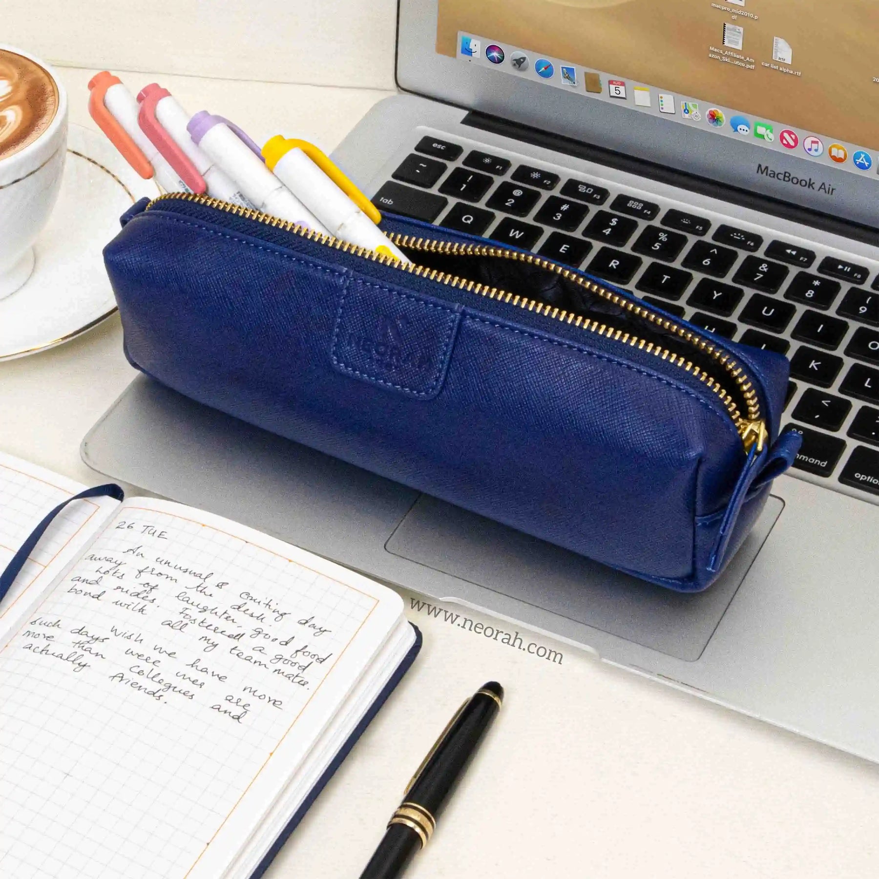 Meet your new favourite writing sidekick- our premium pen pouch. Crafted with a blend of style and functionality, this pouch is designed to keep your favorite writing instruments secure, organized, and readily accessible.
