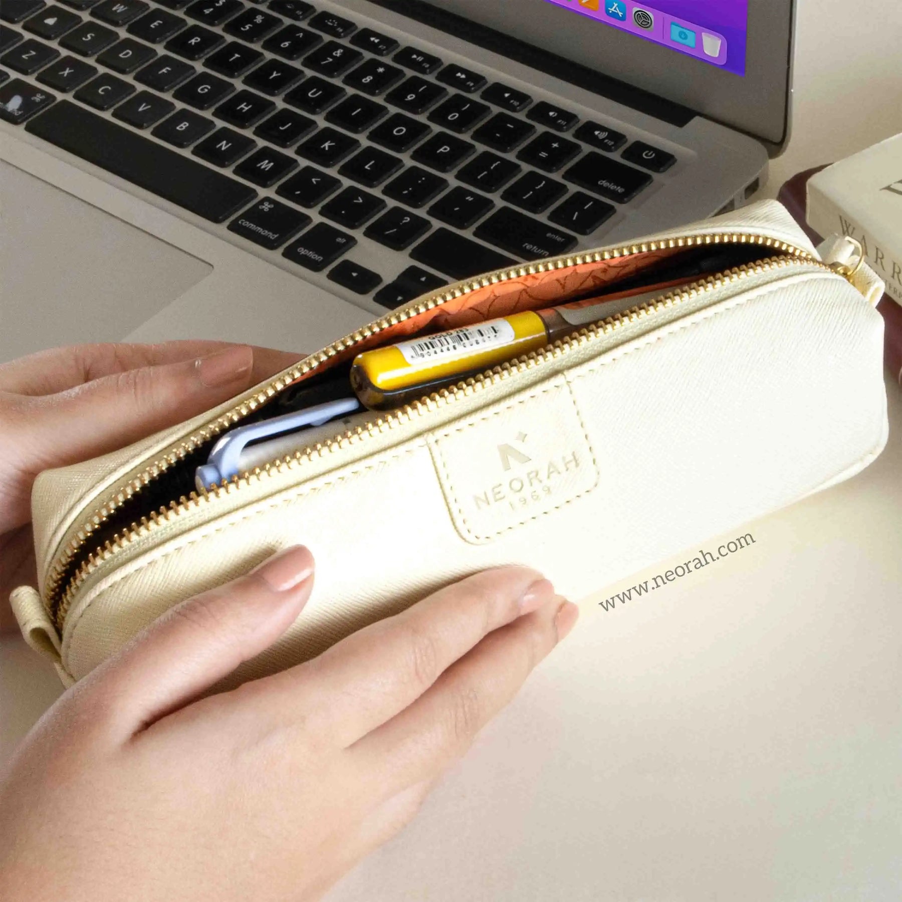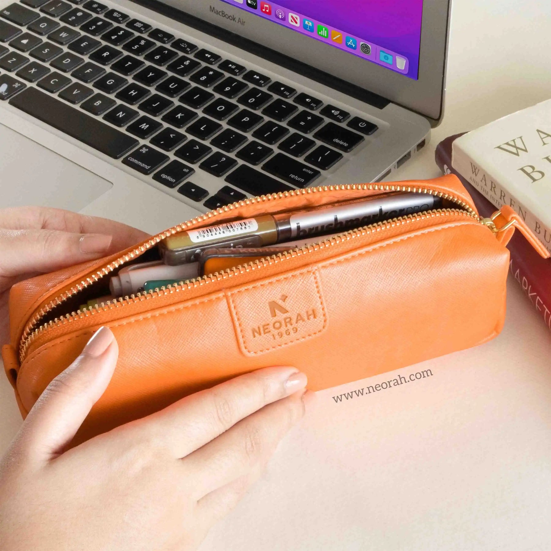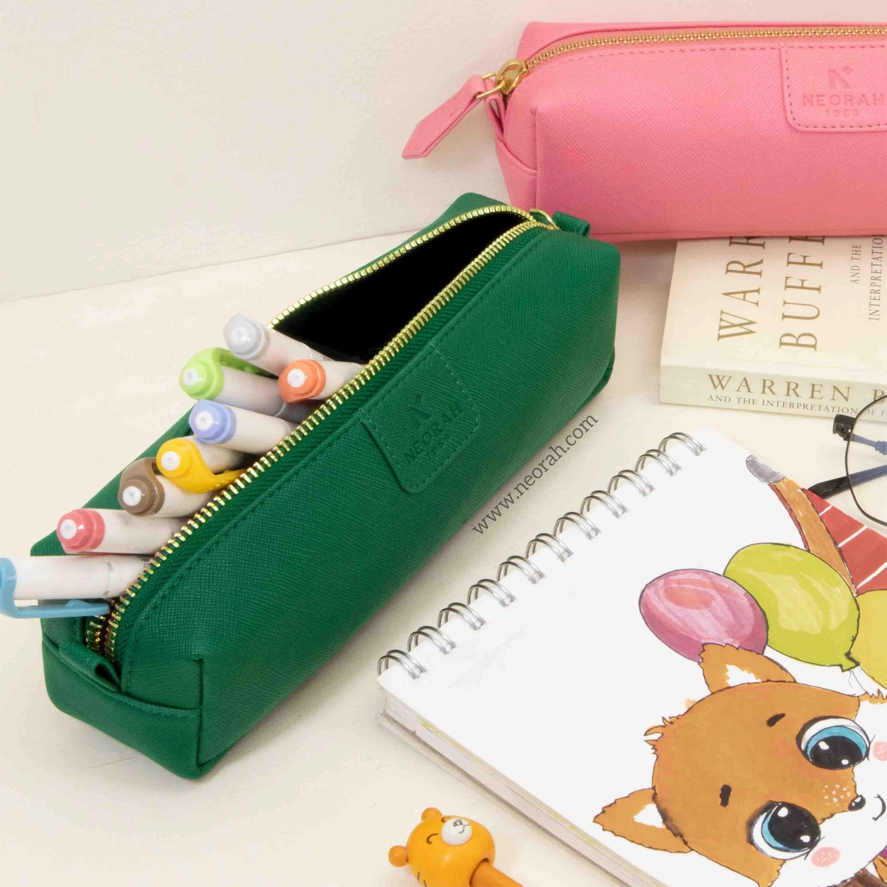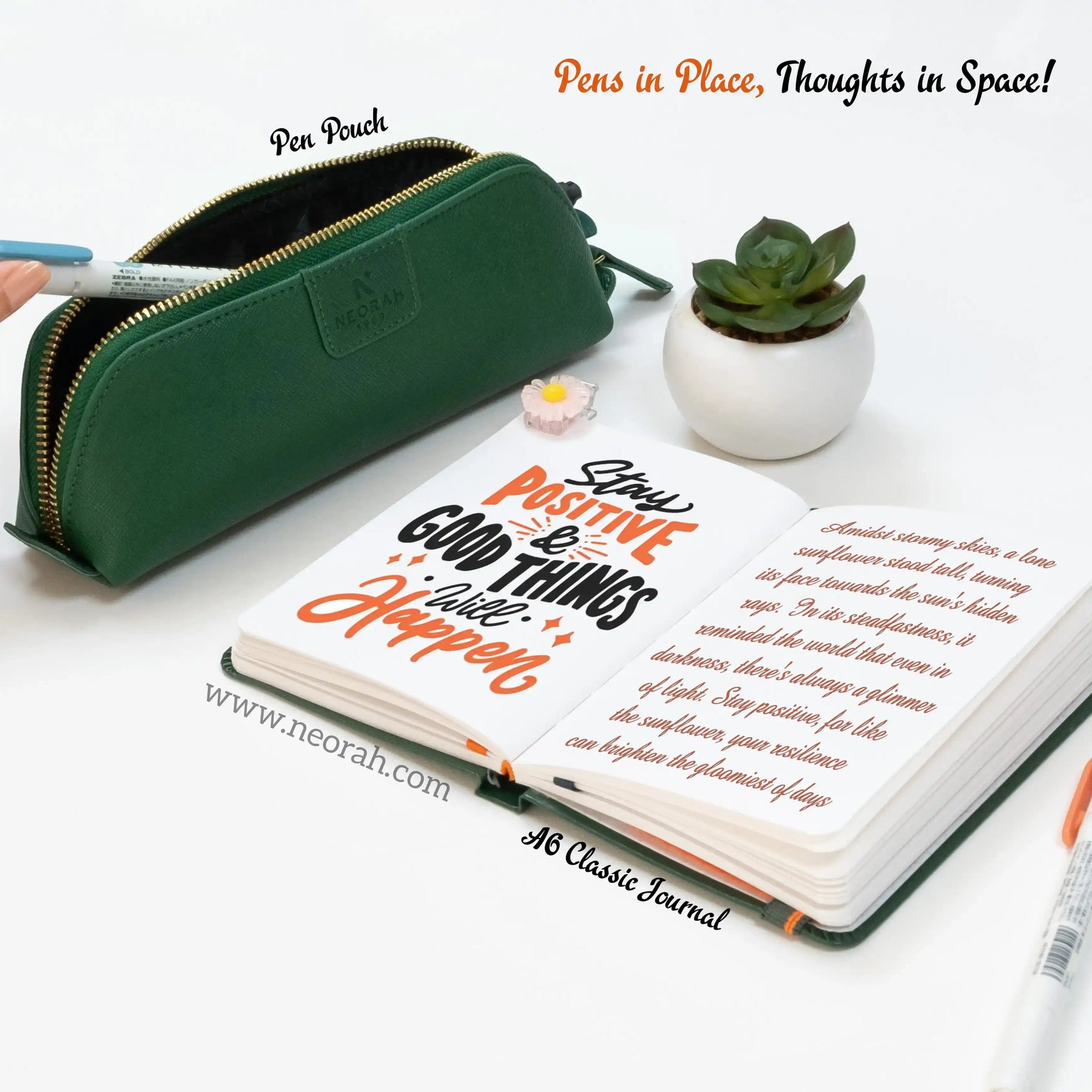 Meet your new favourite writing sidekick- our premium pen pouch. Crafted with a blend of style and functionality, this pouch is designed to keep your favorite writing instruments secure, organized, and readily accessible.