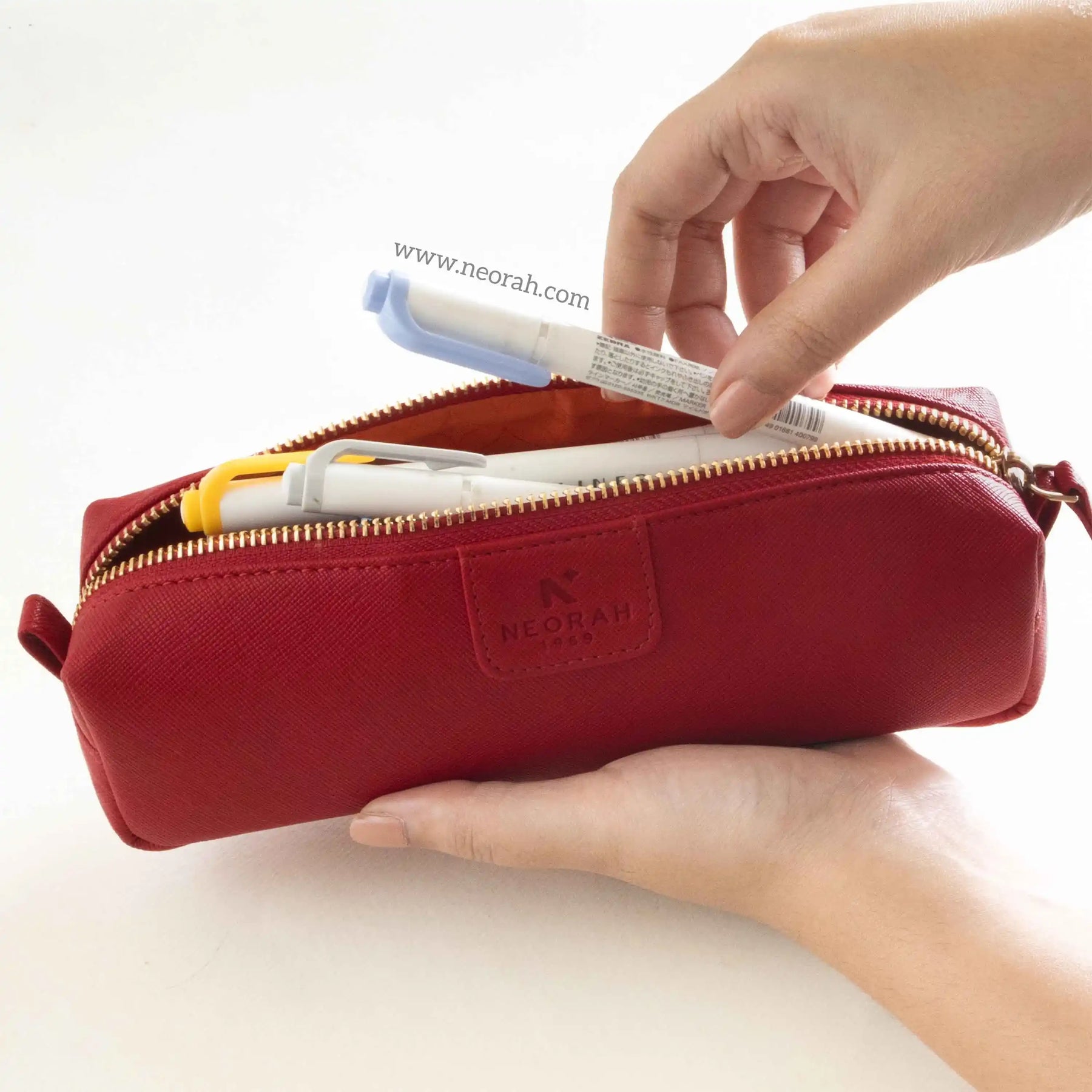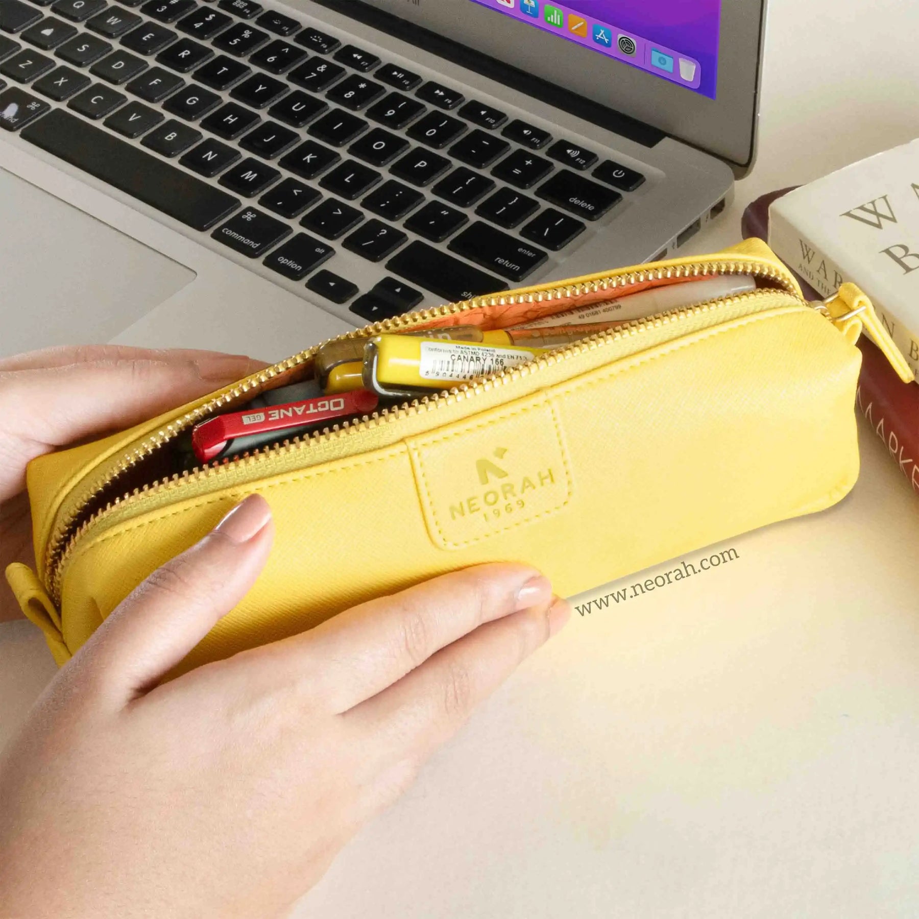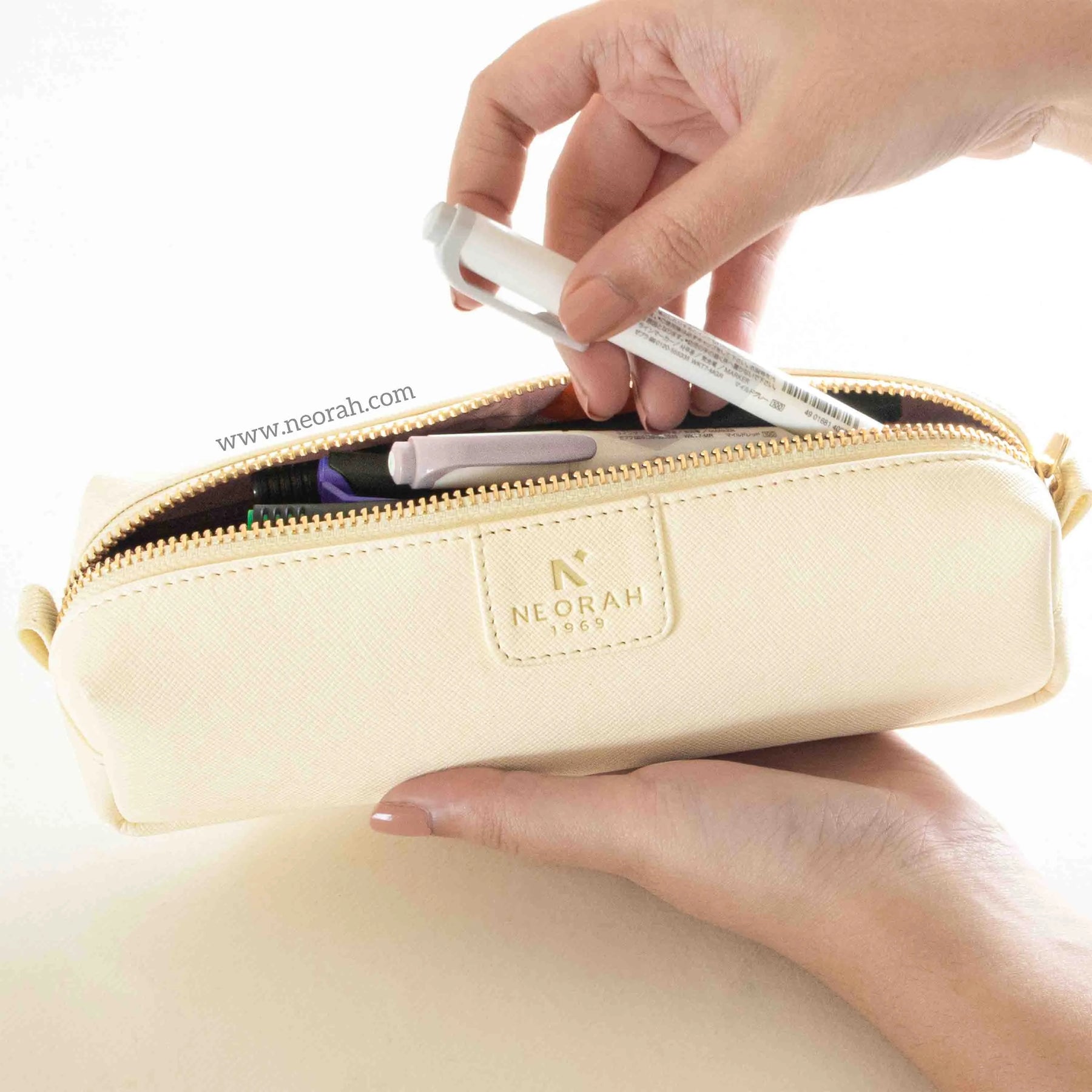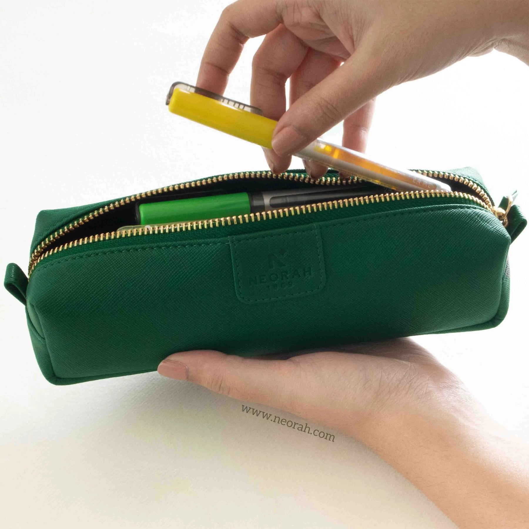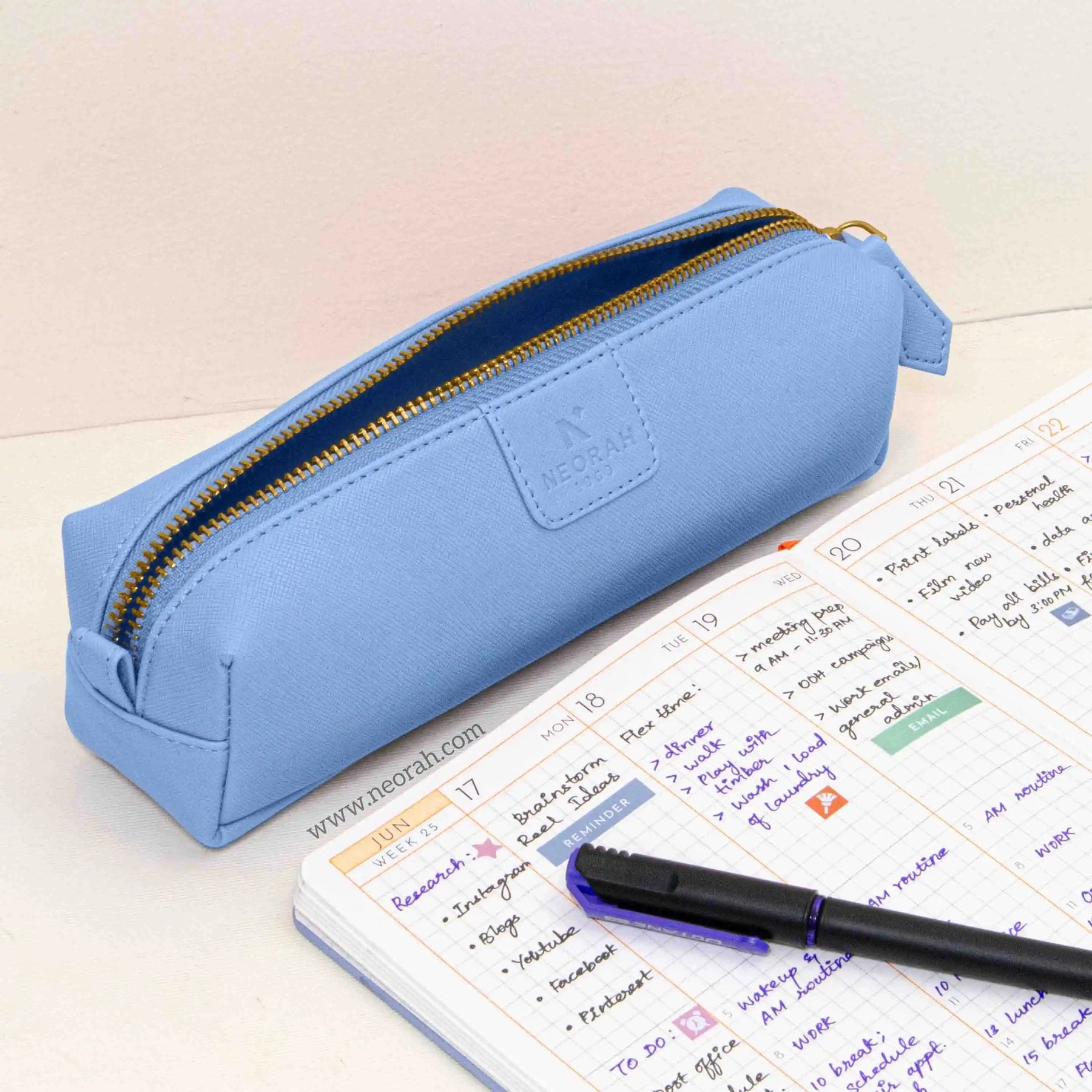 Meet your new favourite writing sidekick- our premium pen pouch. Crafted with a blend of style and functionality, this pouch is designed to keep your favorite writing instruments secure, organized, and readily accessible.