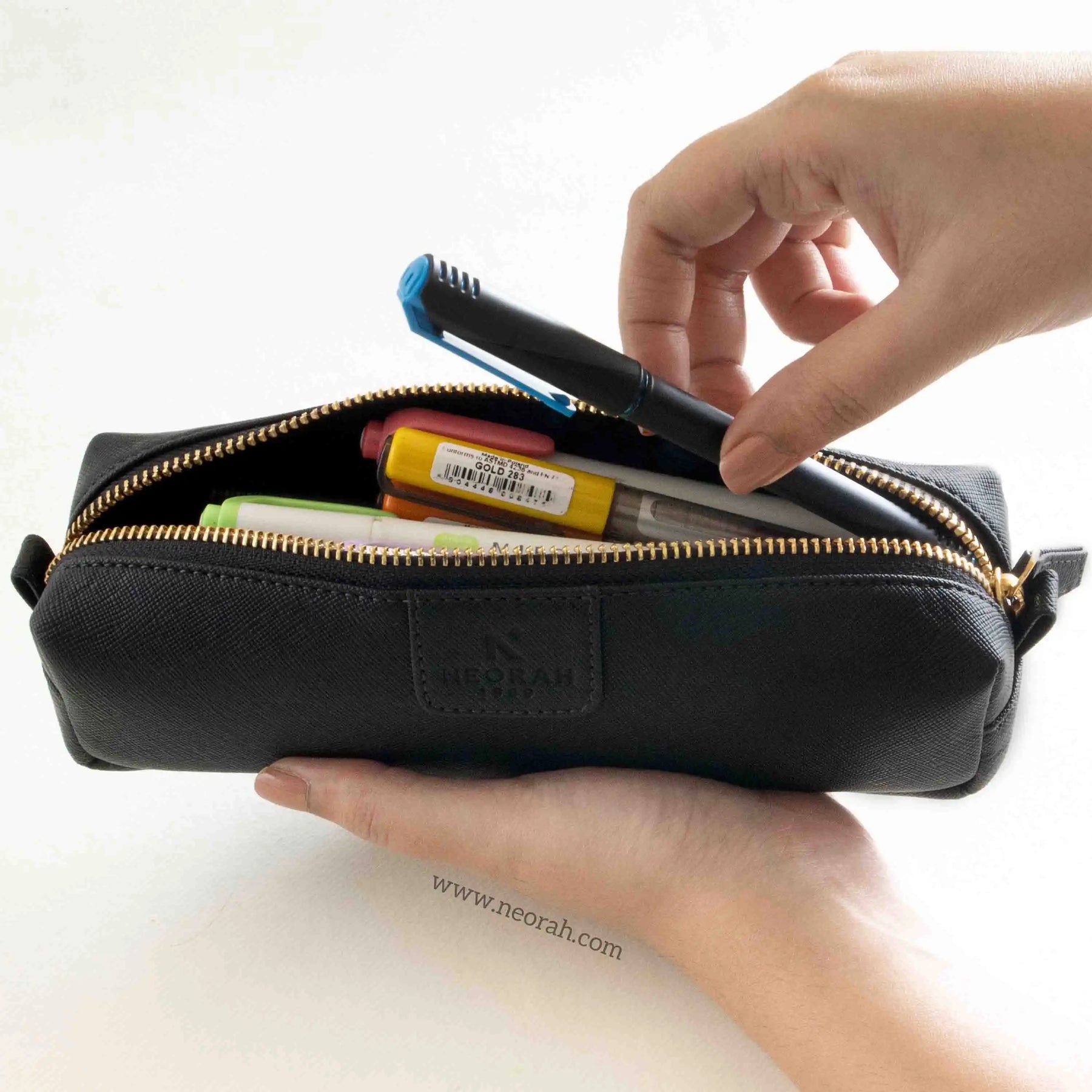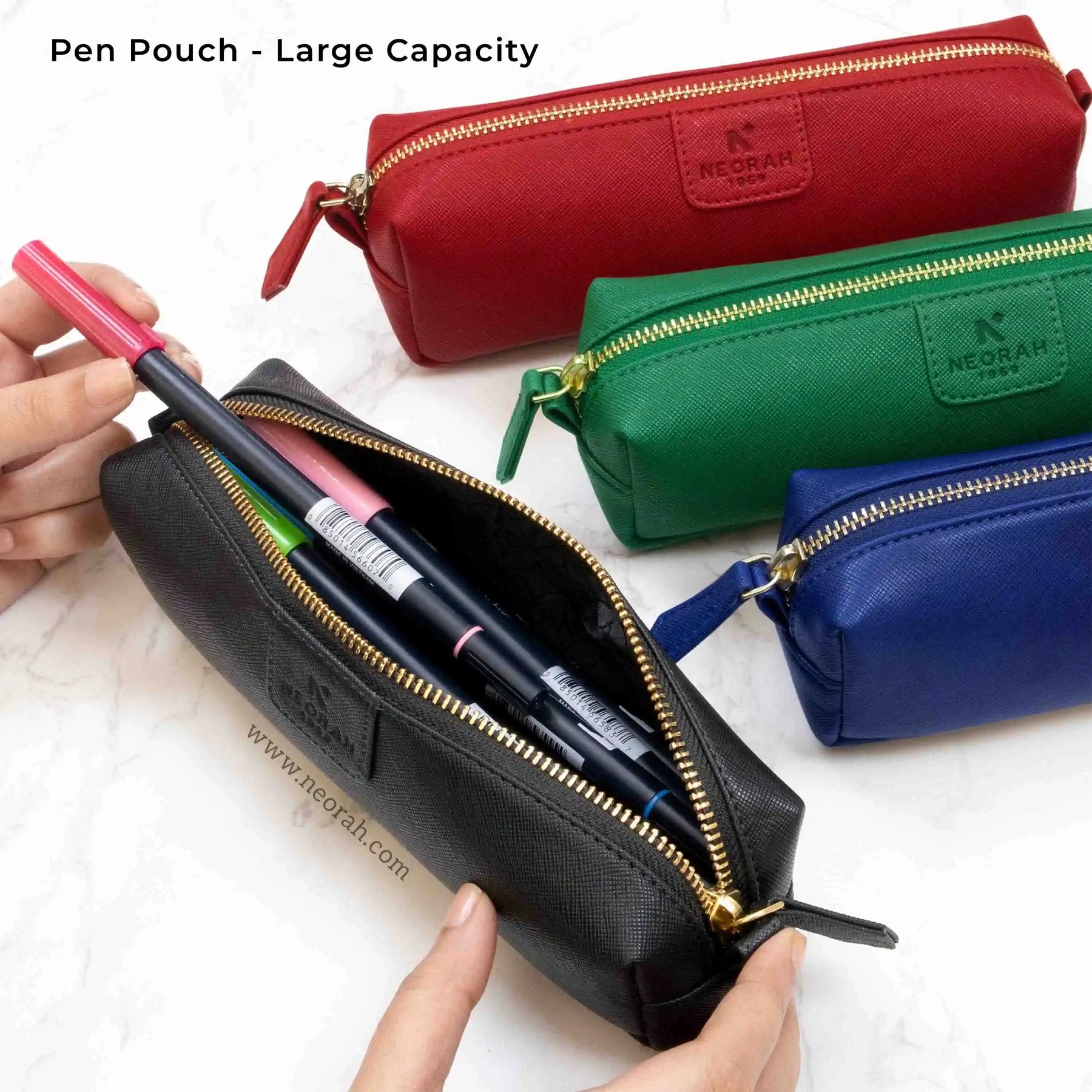 [ CONVENIENCE ] โ The pen pouch looks sleek but has plenty of space to accommodate your pen, pencils, markers, highlighters, sketch pens and other stationery .